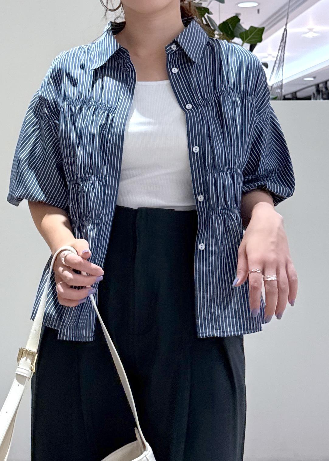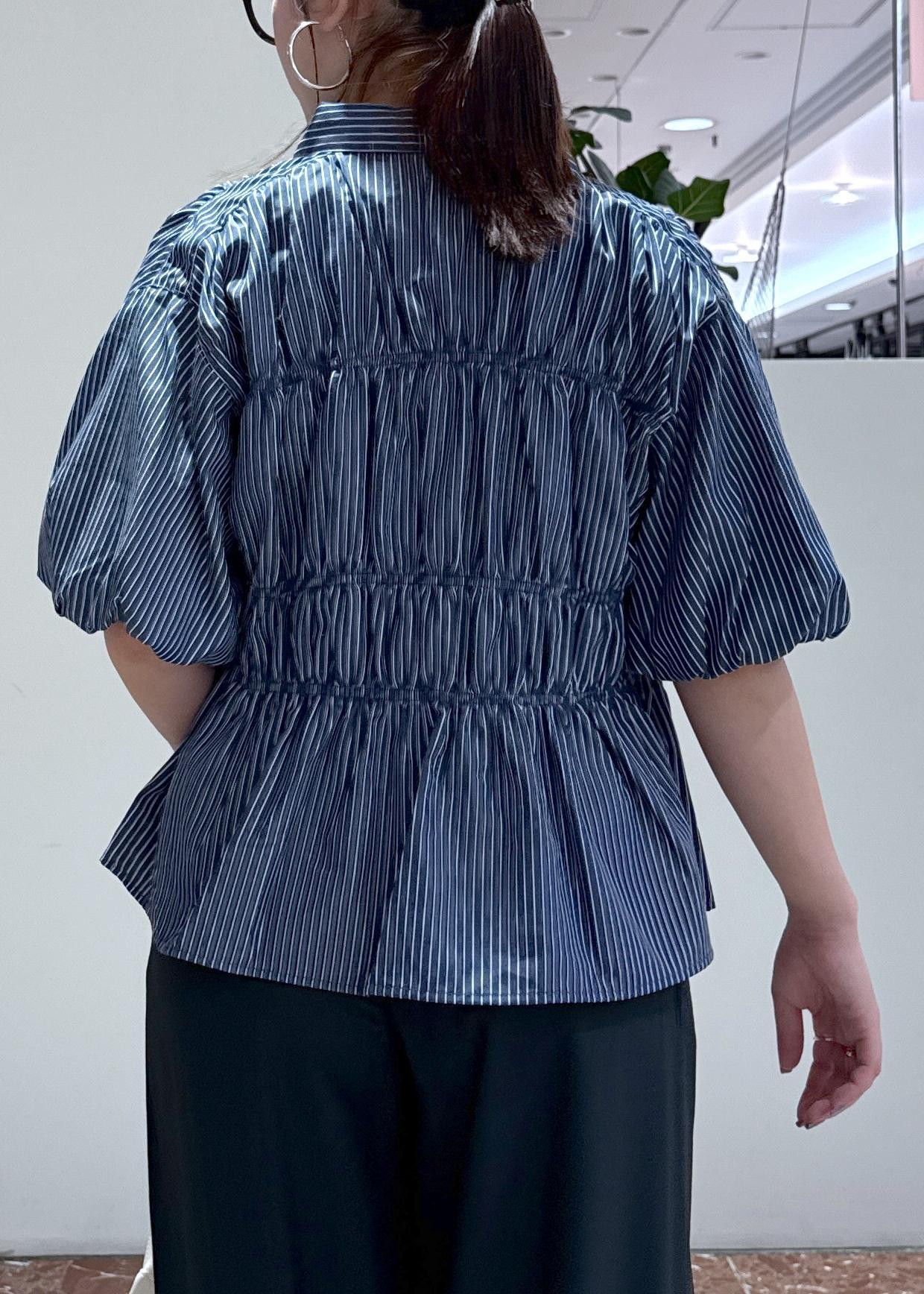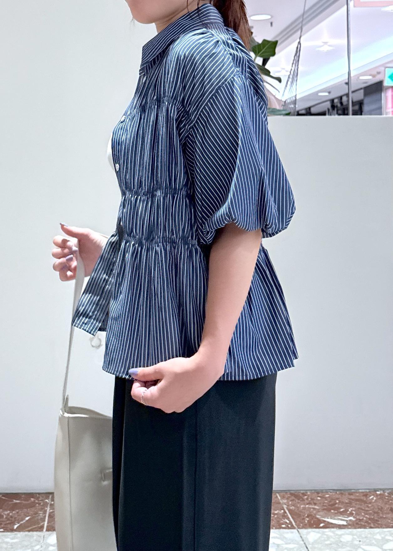 VIS【新色追加】【店頭人気】シャーリングバルーンシャツネイビー系 / F¥5,489レビュー着痩せデザインのシャツ!
