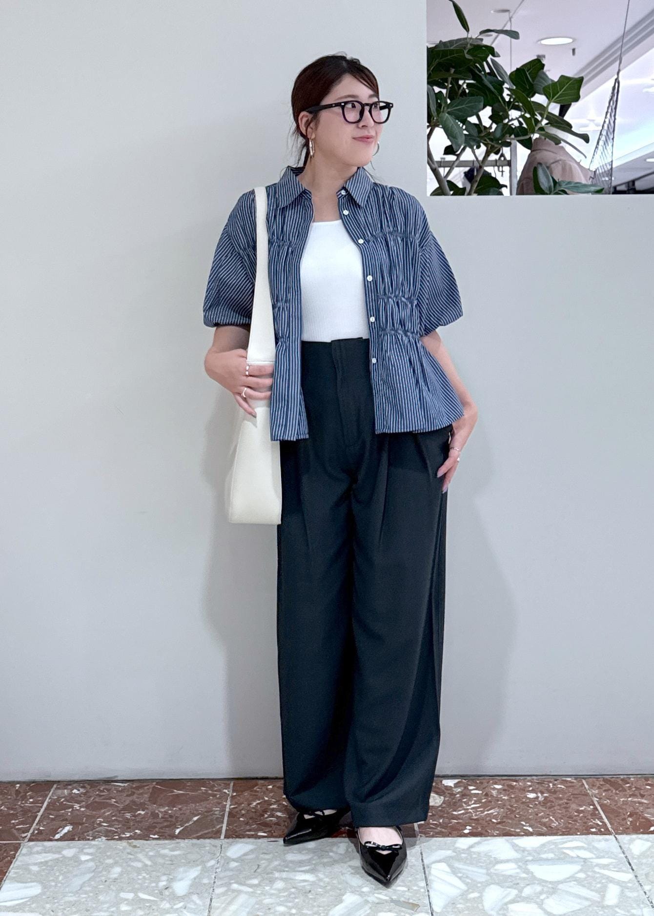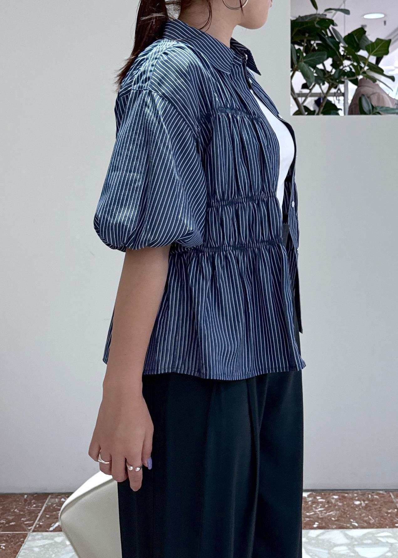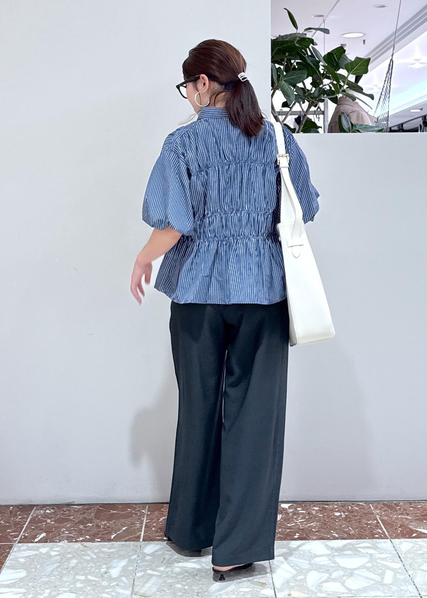 VIS【新色追加】【店頭人気】シャーリングバルーンシャツネイビー系 / F¥5,489レビュー着痩せデザインのシャツ!