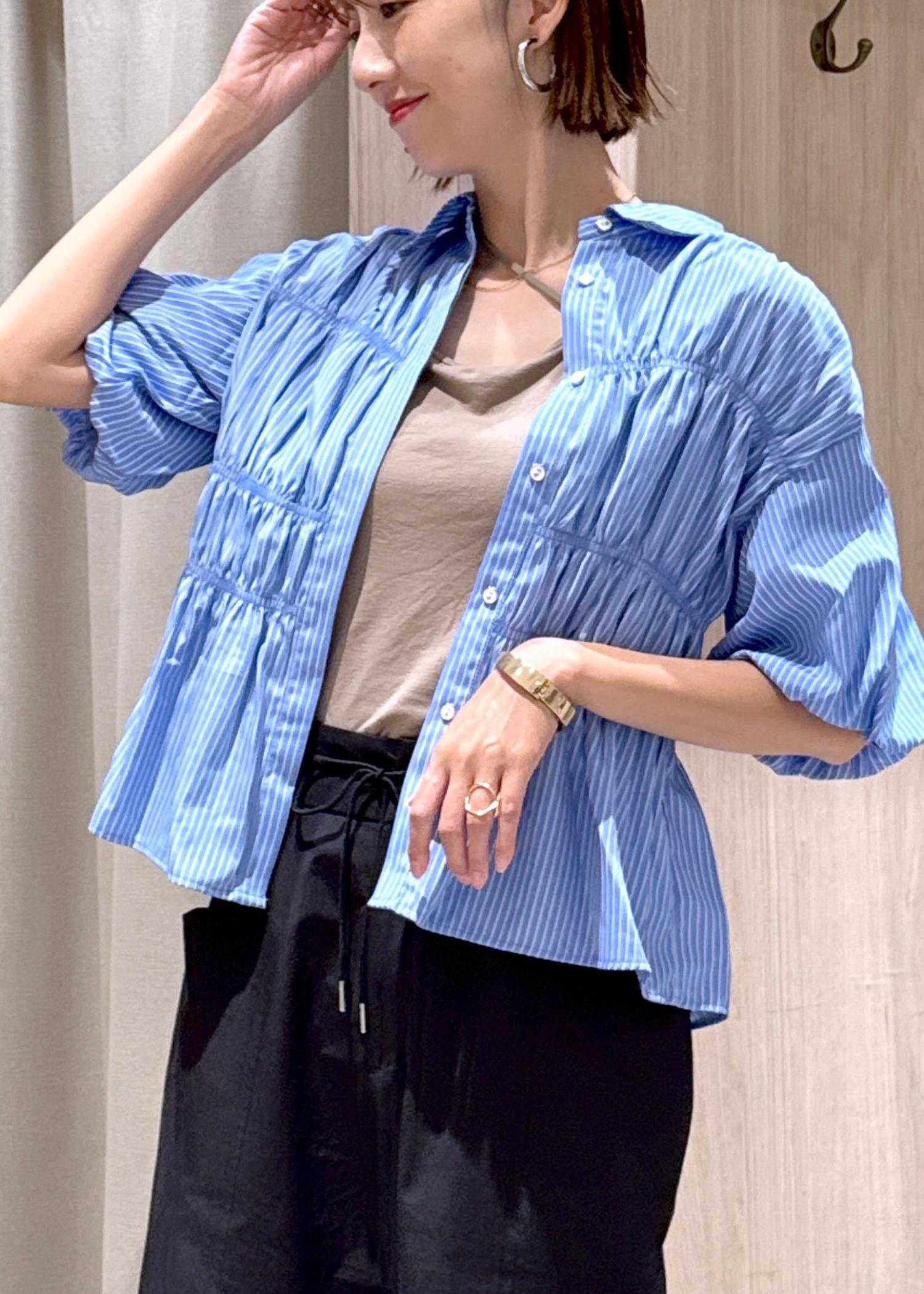 袖は5部袖、二の腕をふんわりカバーしてくれるバルーンスリーブが可愛いブラウスです!