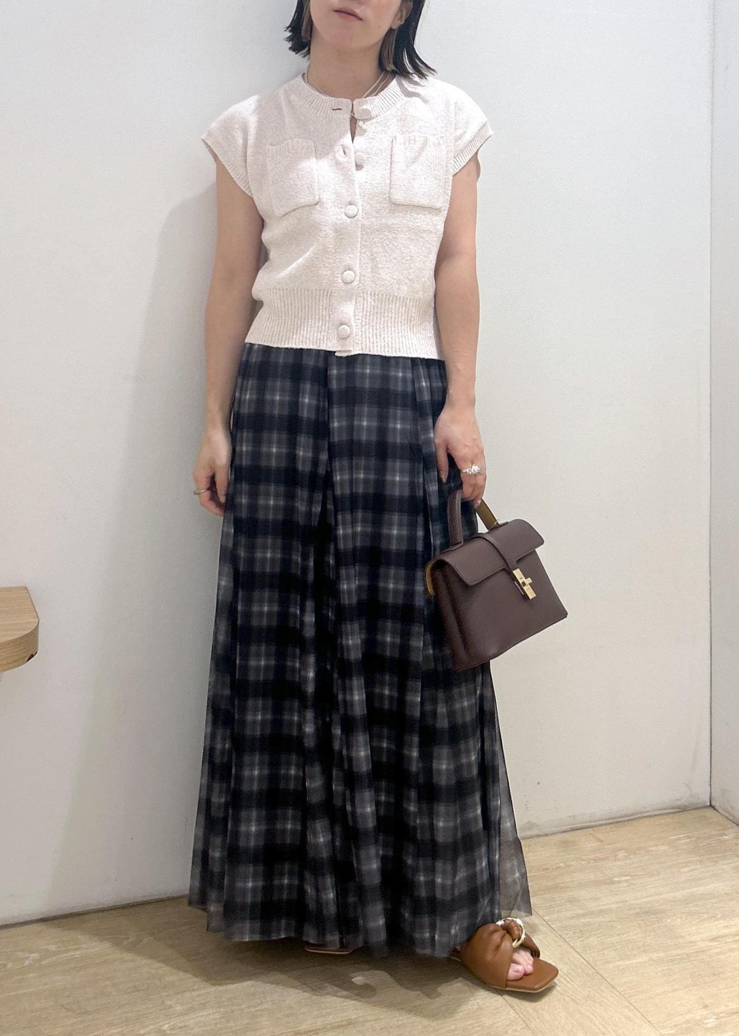 VIS【洗える】チュールプリントチェックスカートダークブラウン系 / F¥4,612レビューチュールにチェック柄がプリントされているので、シアー感がかわいいスカートです。1サイズですがちょうど良かったです。