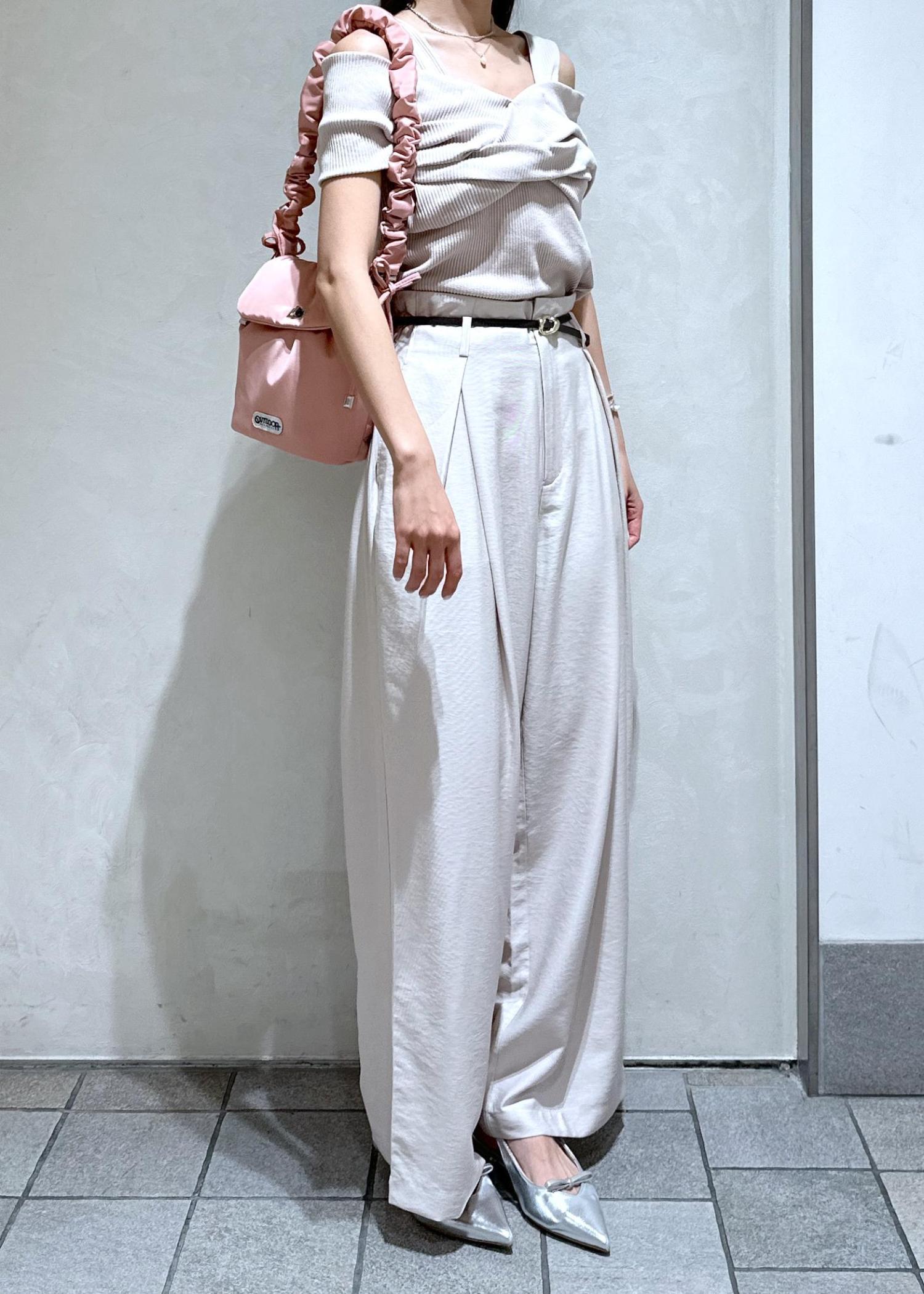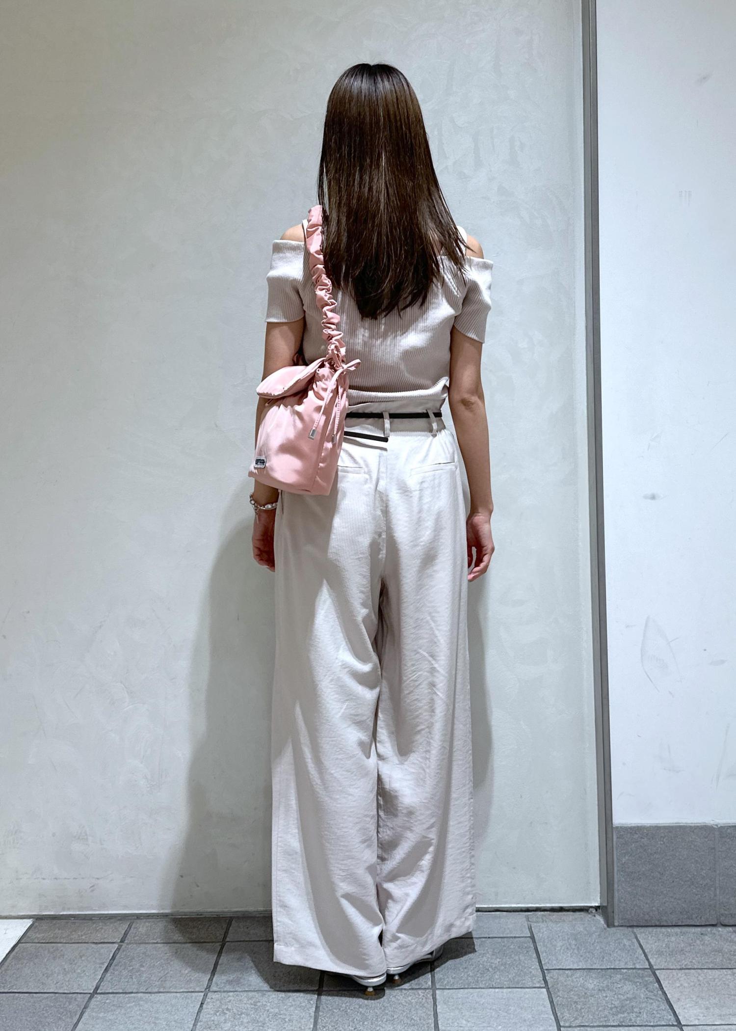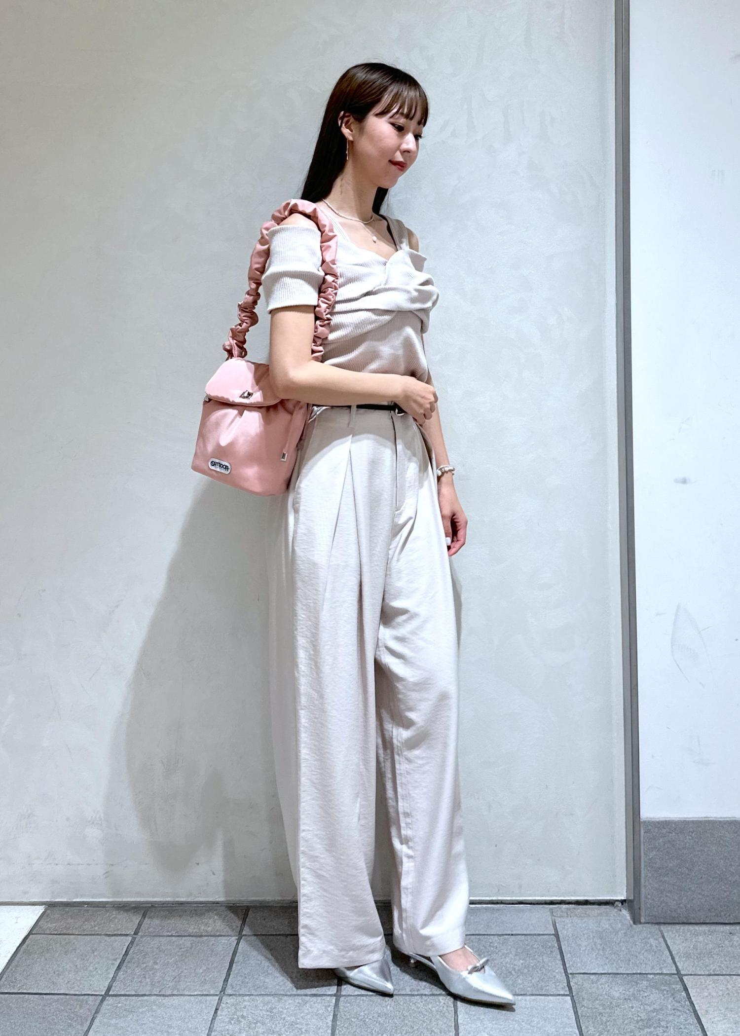 アウトレットVISボックスタックリラックスパンツベージュ / F¥2,965レビュー165cmの私が着用して長さにピッタリでした◎ハイウエストになっているので脚長効果も!生地が薄いので今の時期に最適ですよ♪