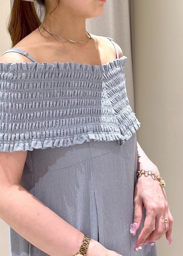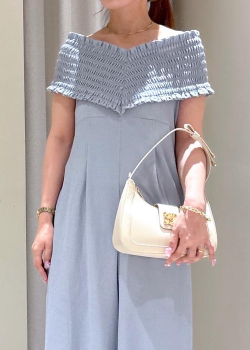 アウトレットVISシャーリングオフショルダーオールインワンブルー系 / F¥6,327レビュー少しゆったりめで楽に着れます◎