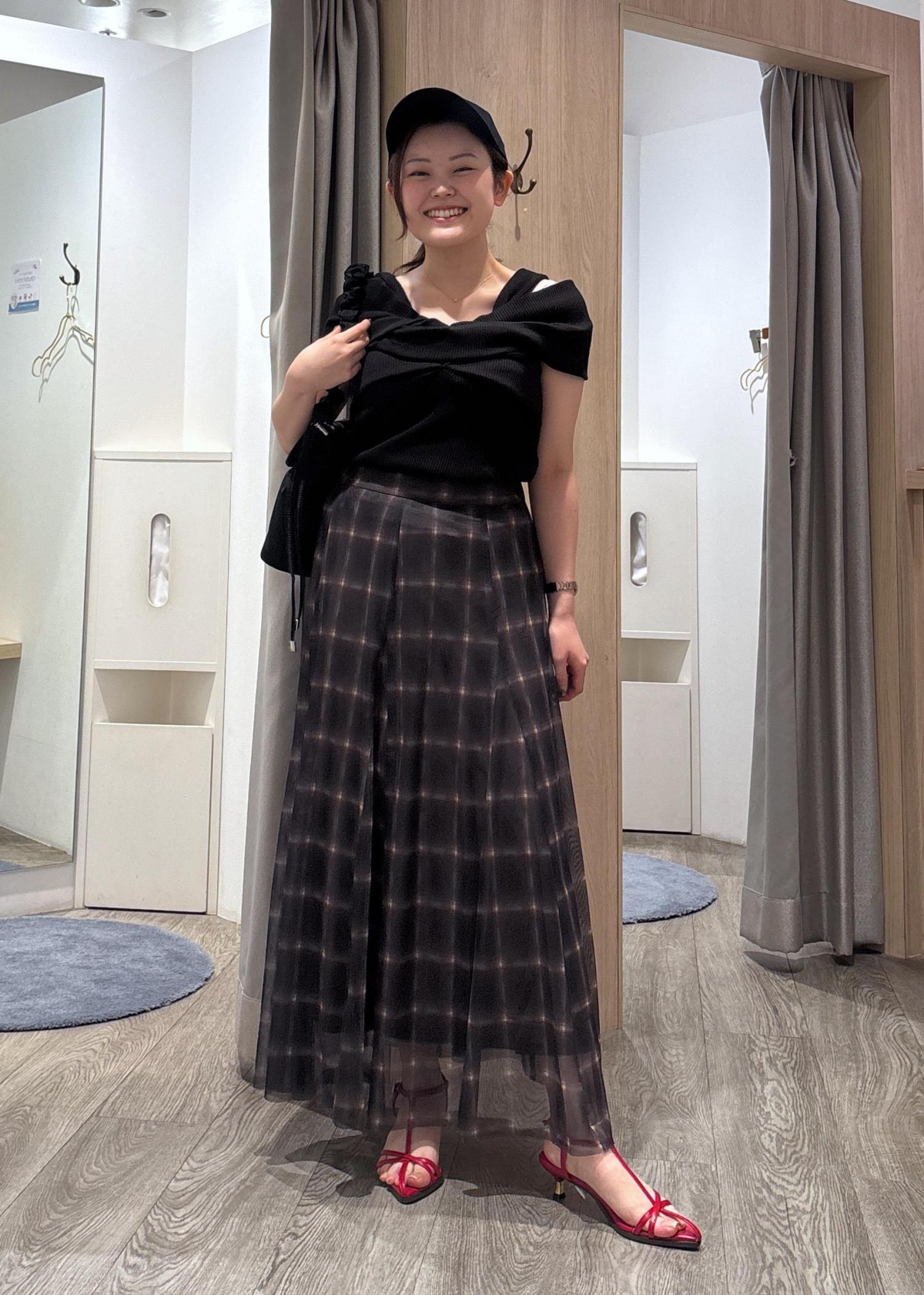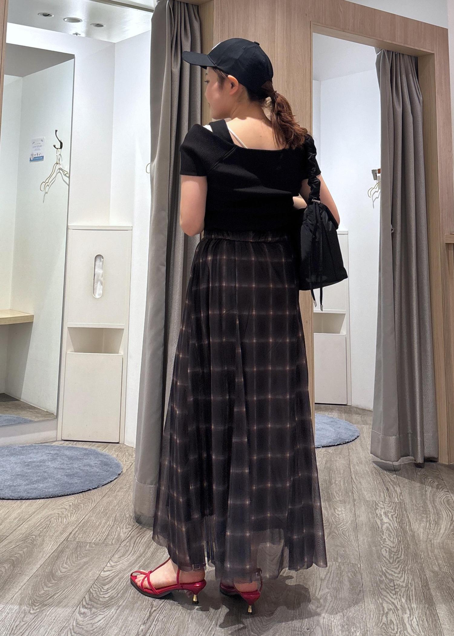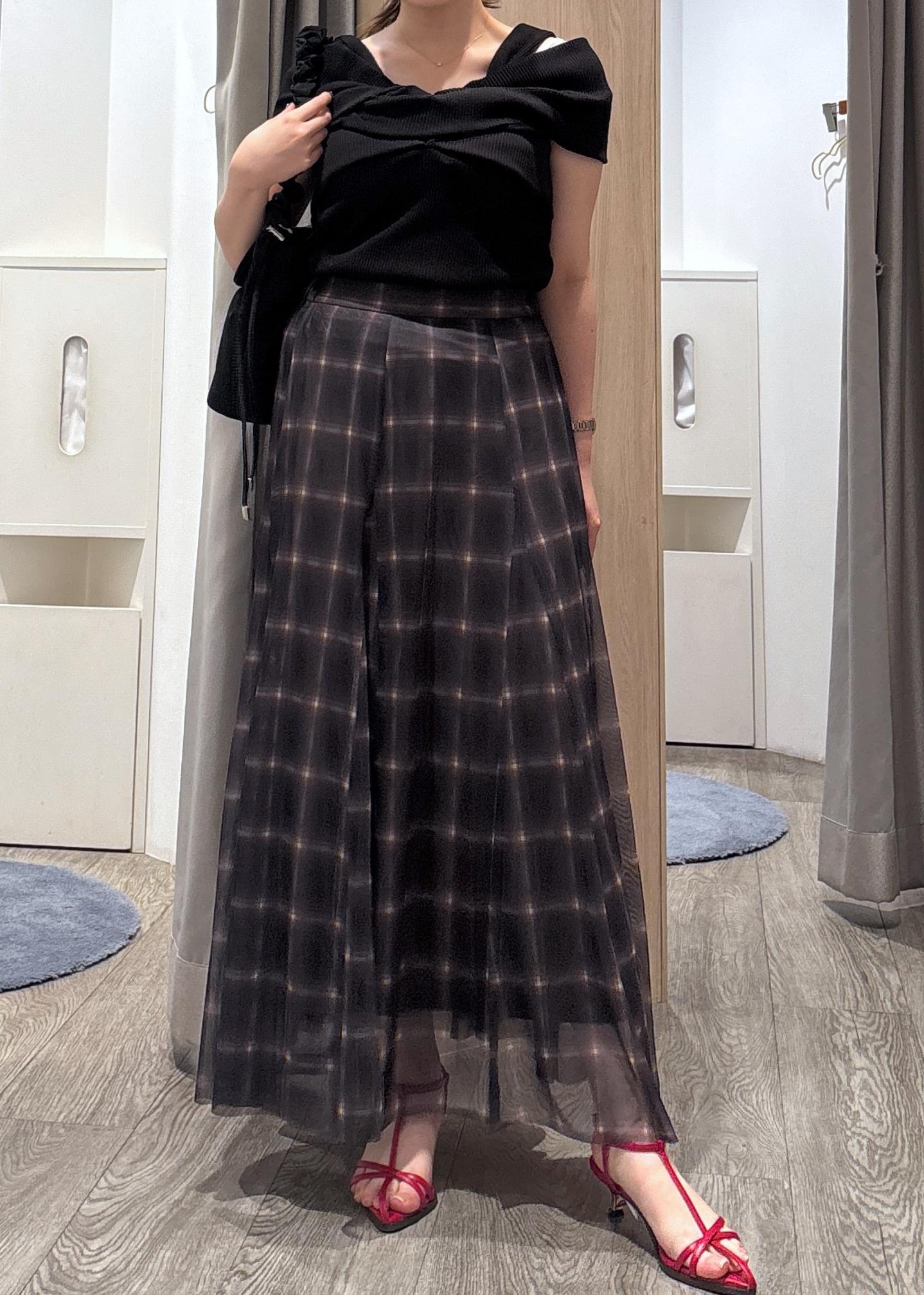 VIS【洗える】チュールプリントチェックスカートダークブラウン系 / F¥4,612レビュー裏地がついているため、透け感なく、