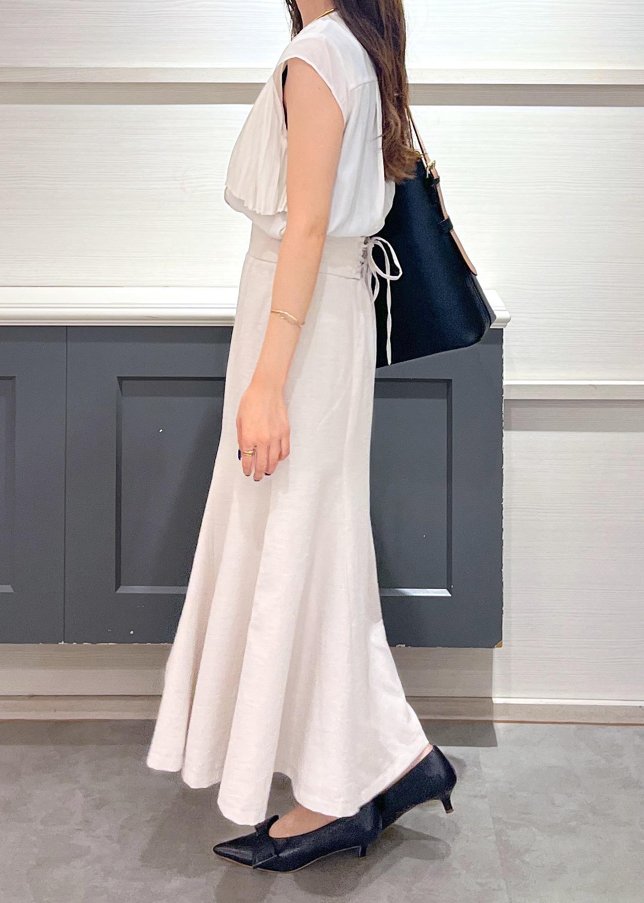 VIS【新色追加】【美easy】リネンライクマーメイドスカート【洗える】【セットアップ対応】キナリ / S¥5,489レビュー156cmでふくらはぎが隠れる丈感でした!