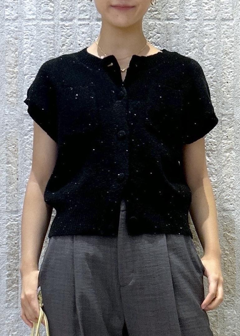 VISくるみ釦ニットトップスカーデ/洗えるブラック系 / F¥4,939レビューくるみ釦がアクセントの半袖カーディガン!♡