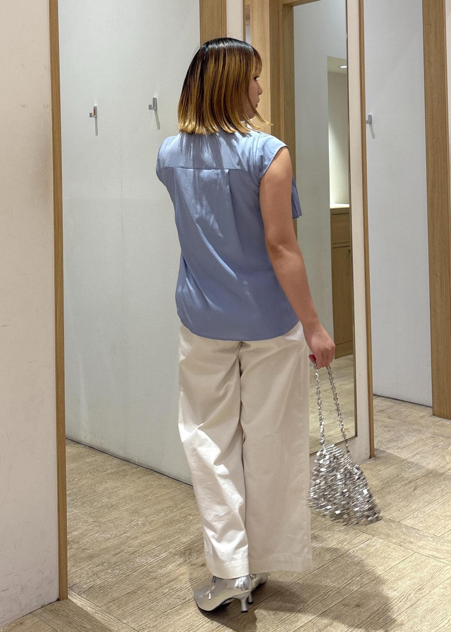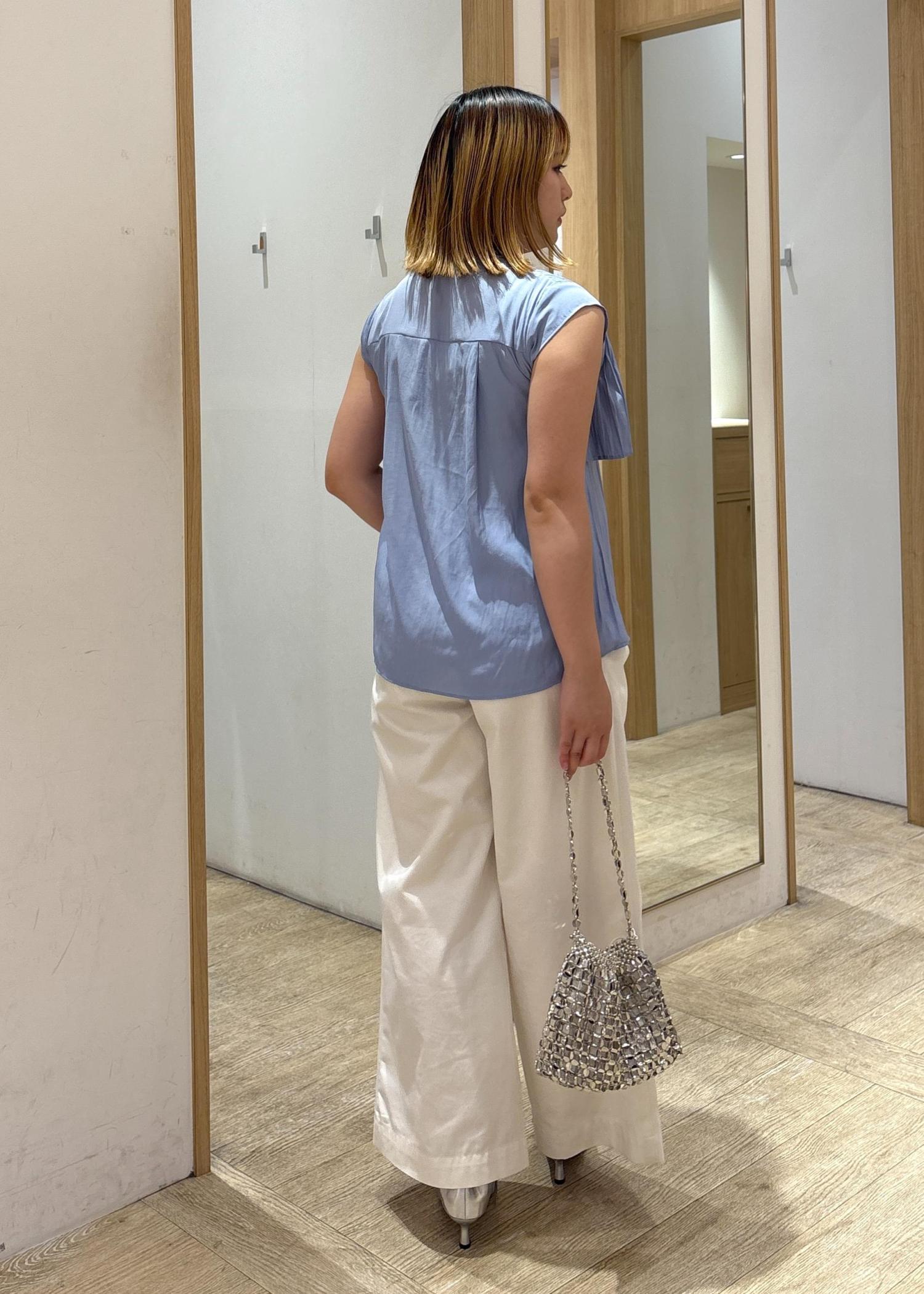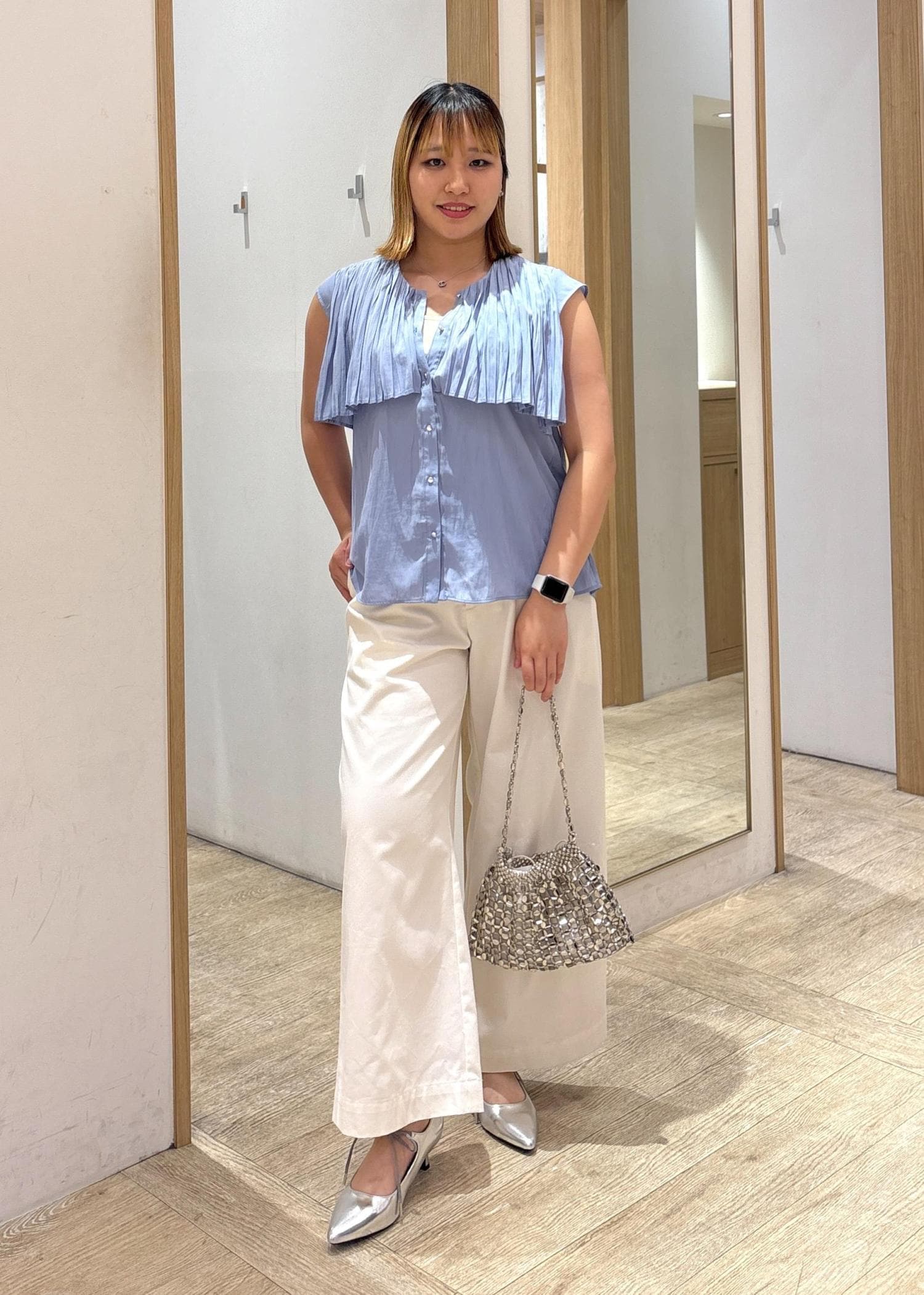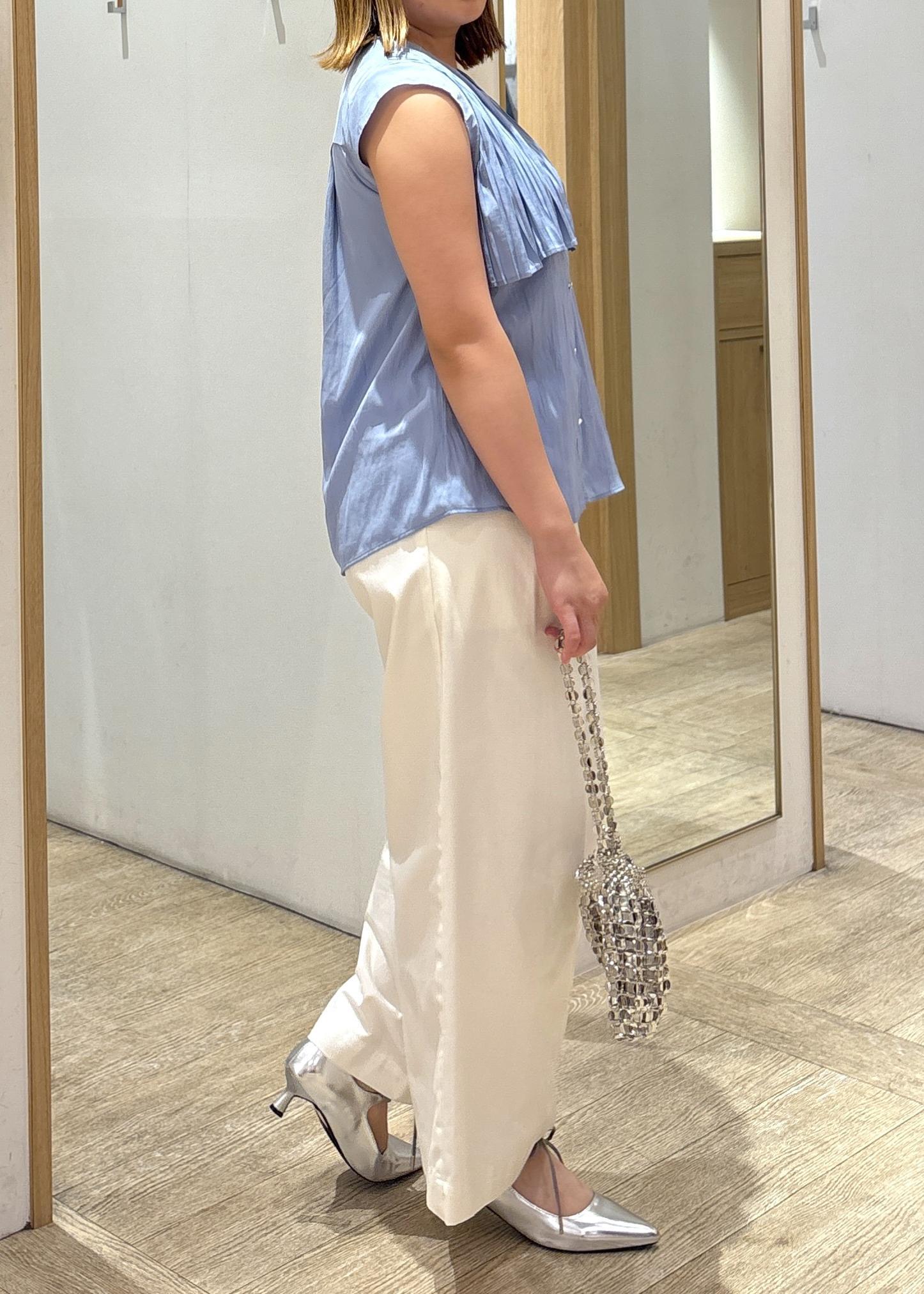 さらに生地も少しヒヤッとするような生地のトップスを選び、体感温度も涼しくなるようなコーデにしました!