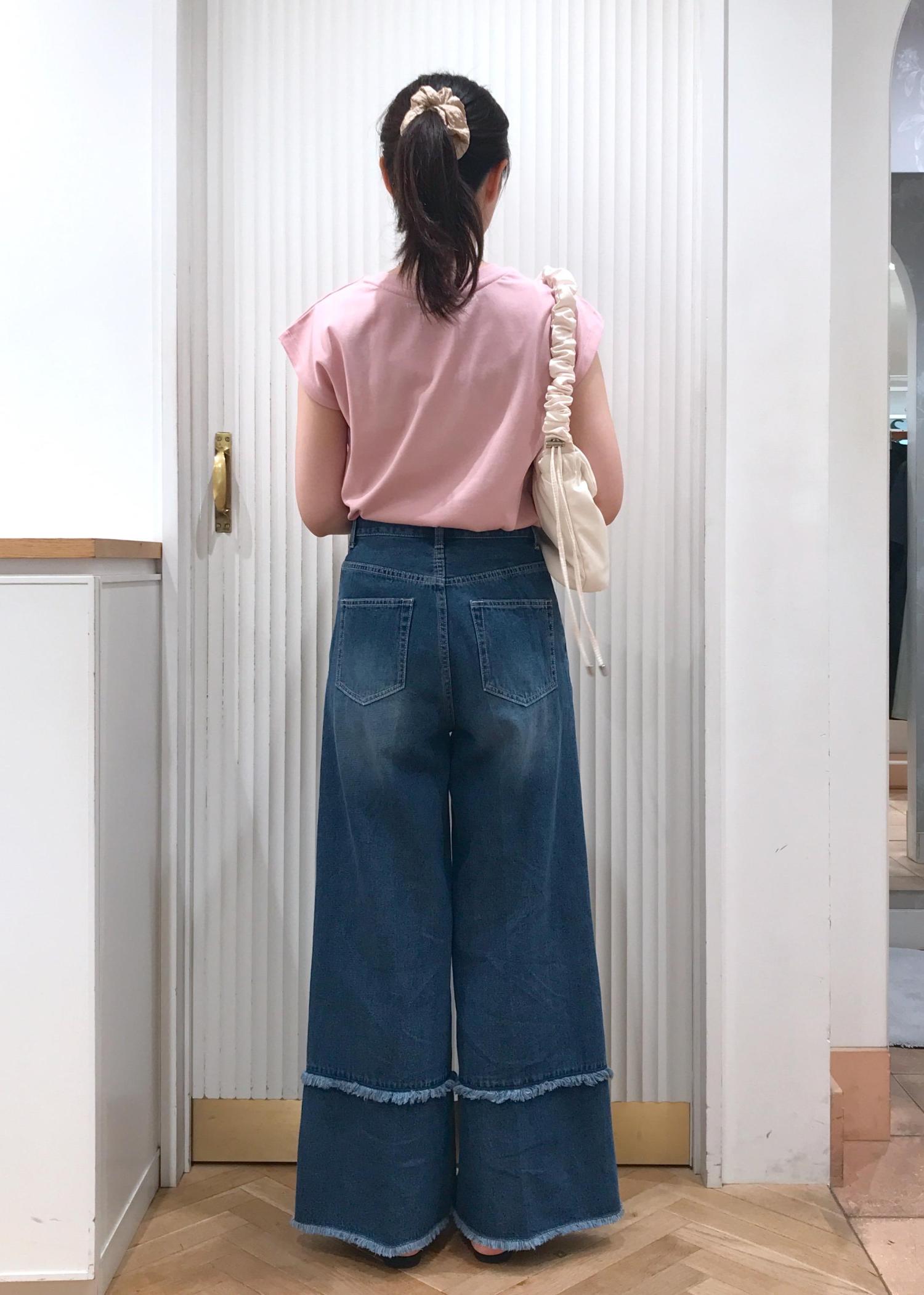 ピンクのTシャツもデニム合わせで、甘くなり過ぎないで着用出来ますよ。