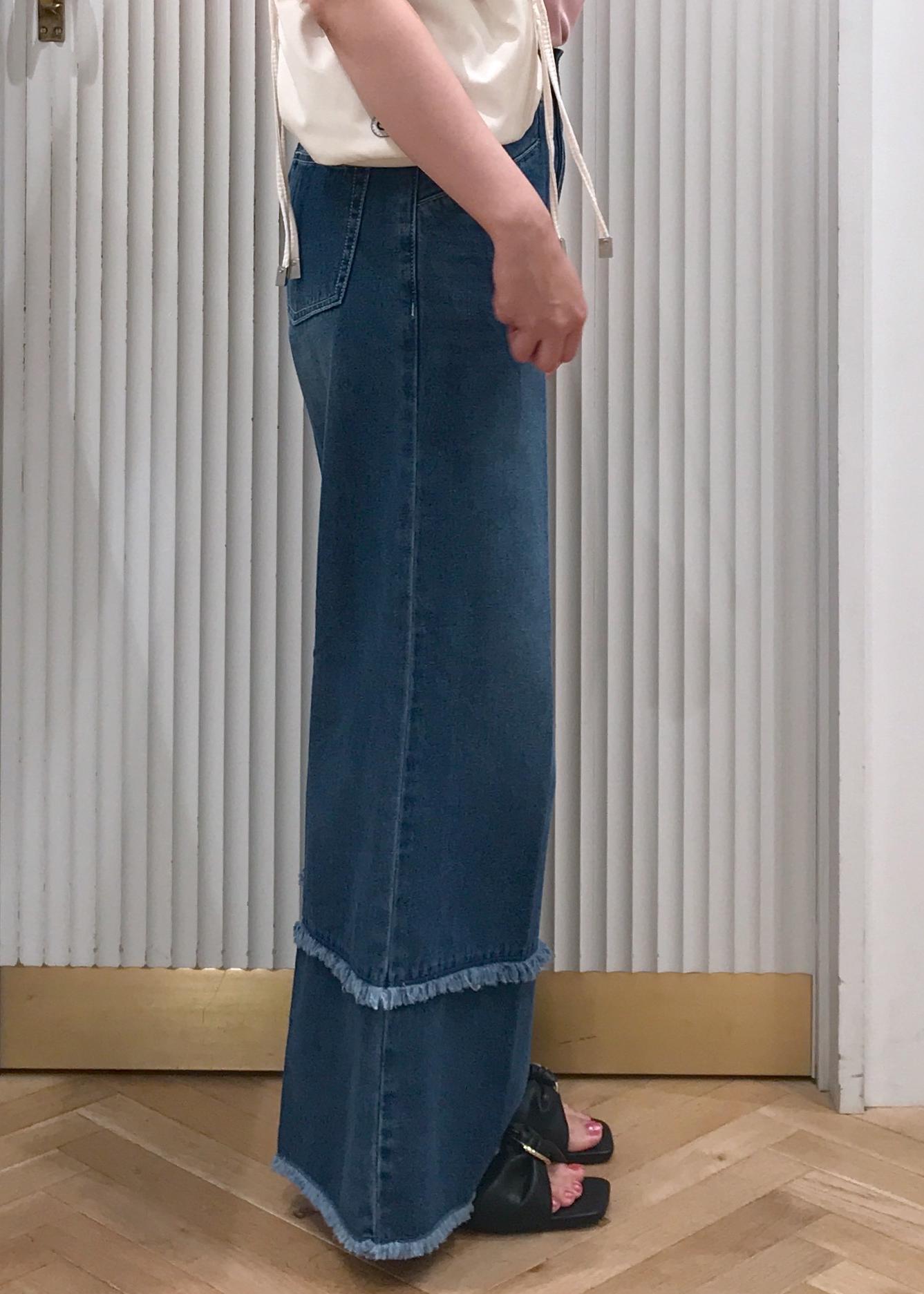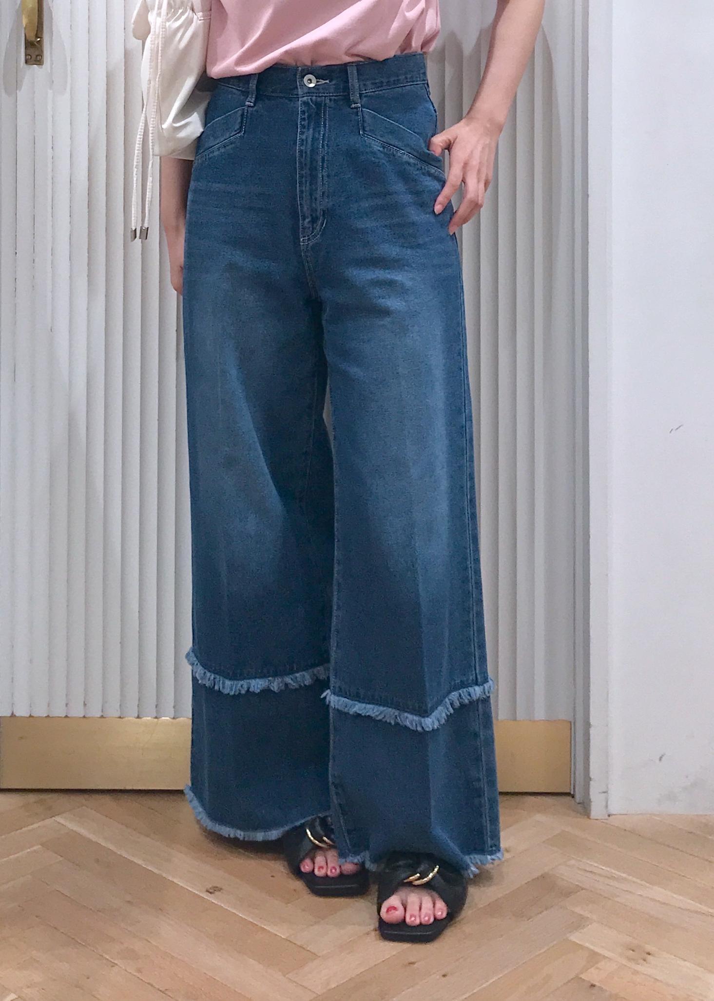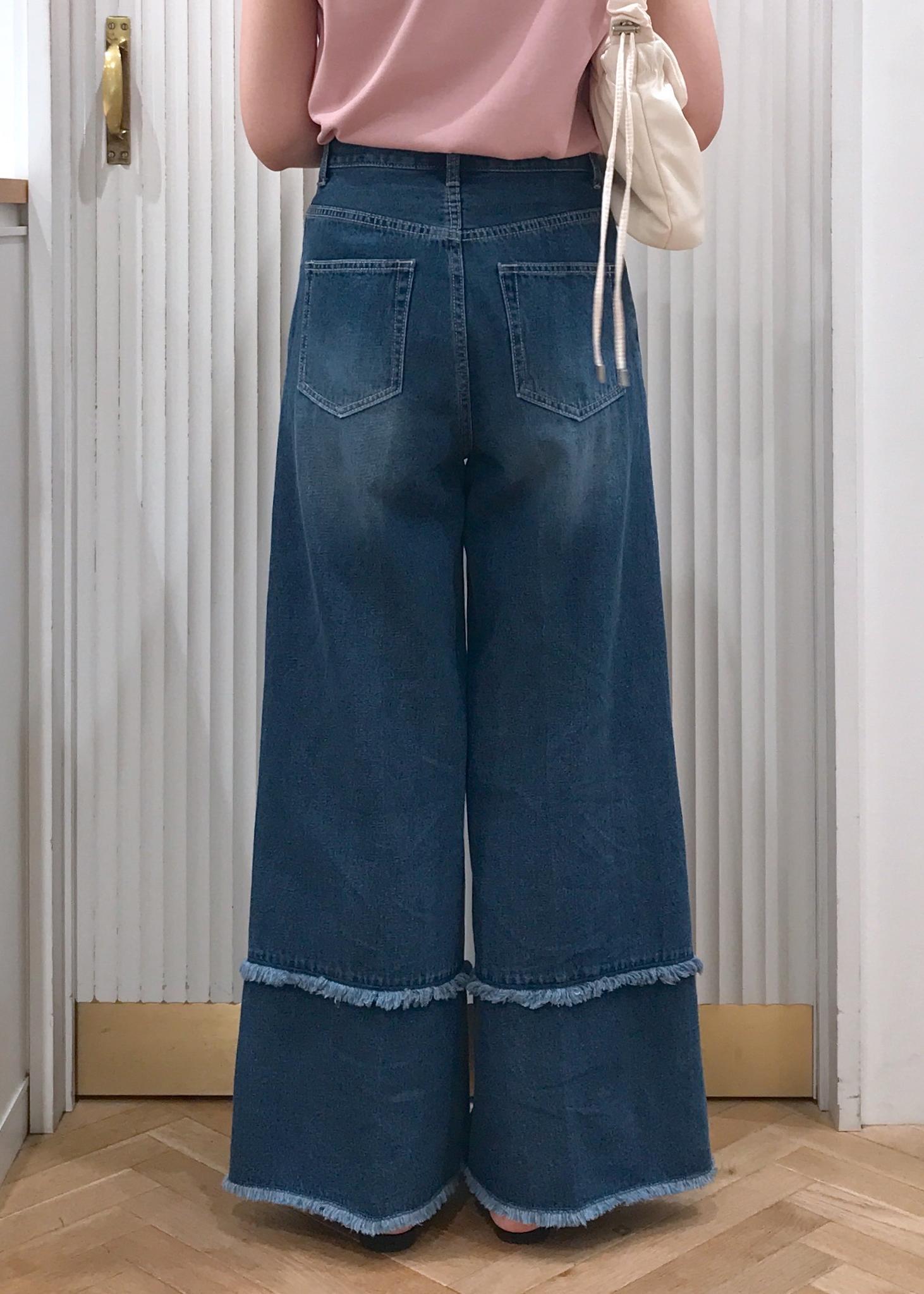 VISフリンジフレアデニムブルー系 / M¥4,395レビュー私の身長で足首が完全に隠れる着丈感でペタンコなサンダルと合わせても引き摺らない位です。