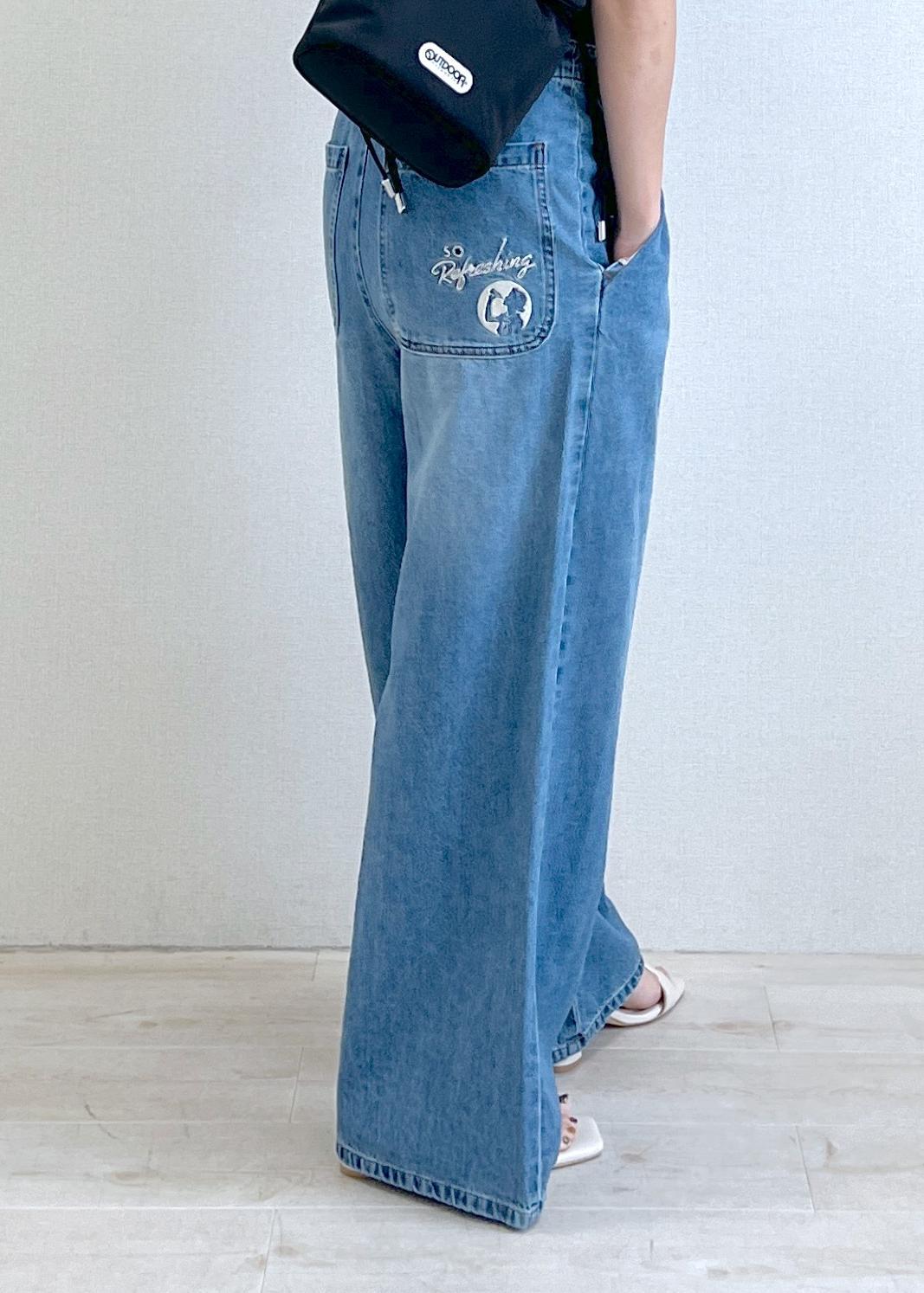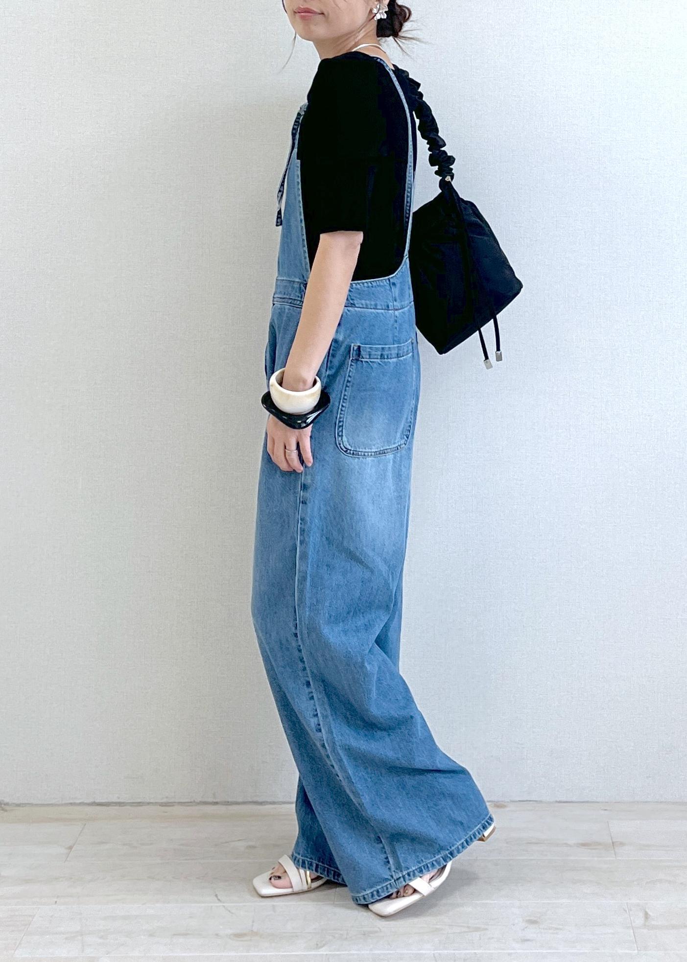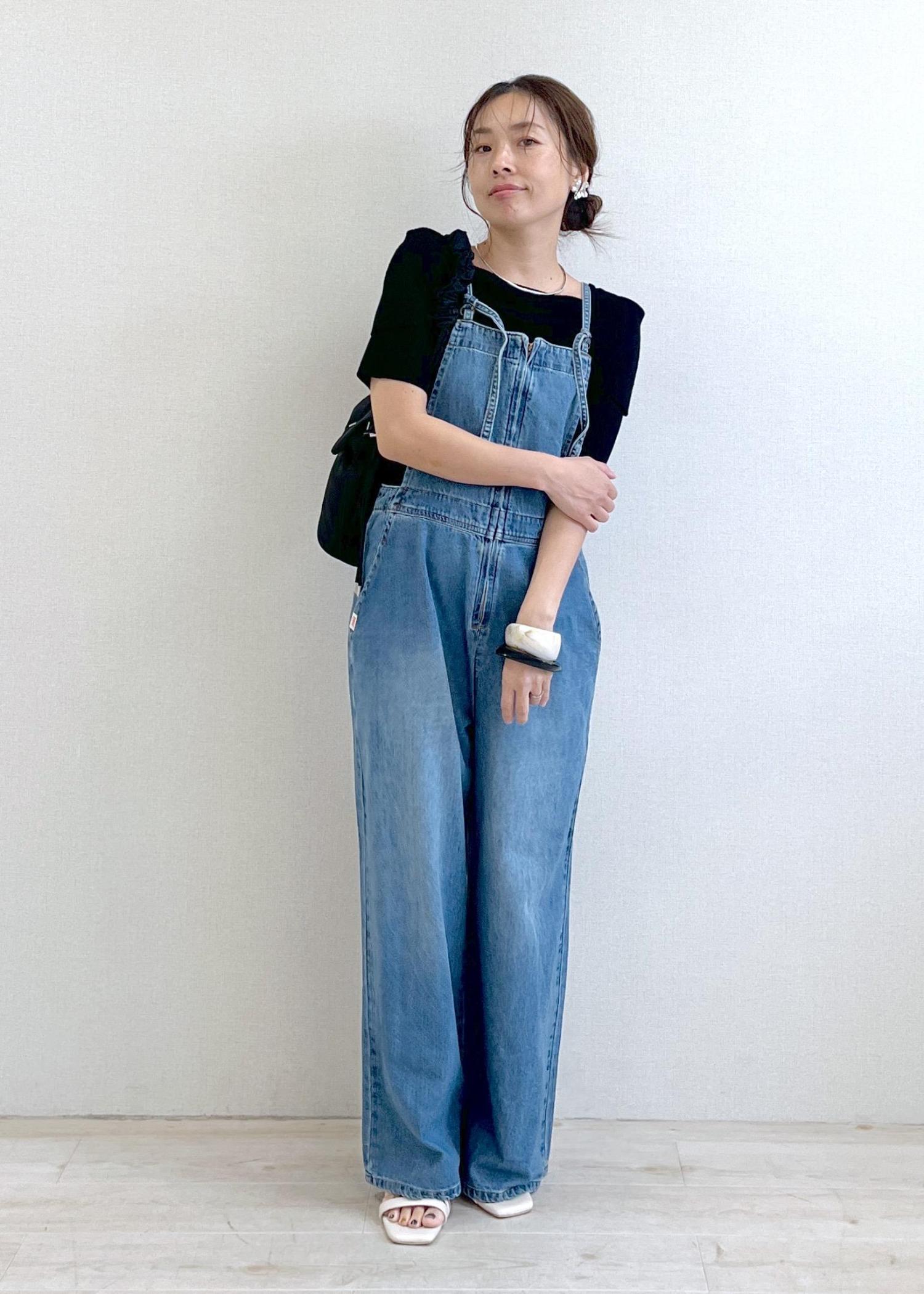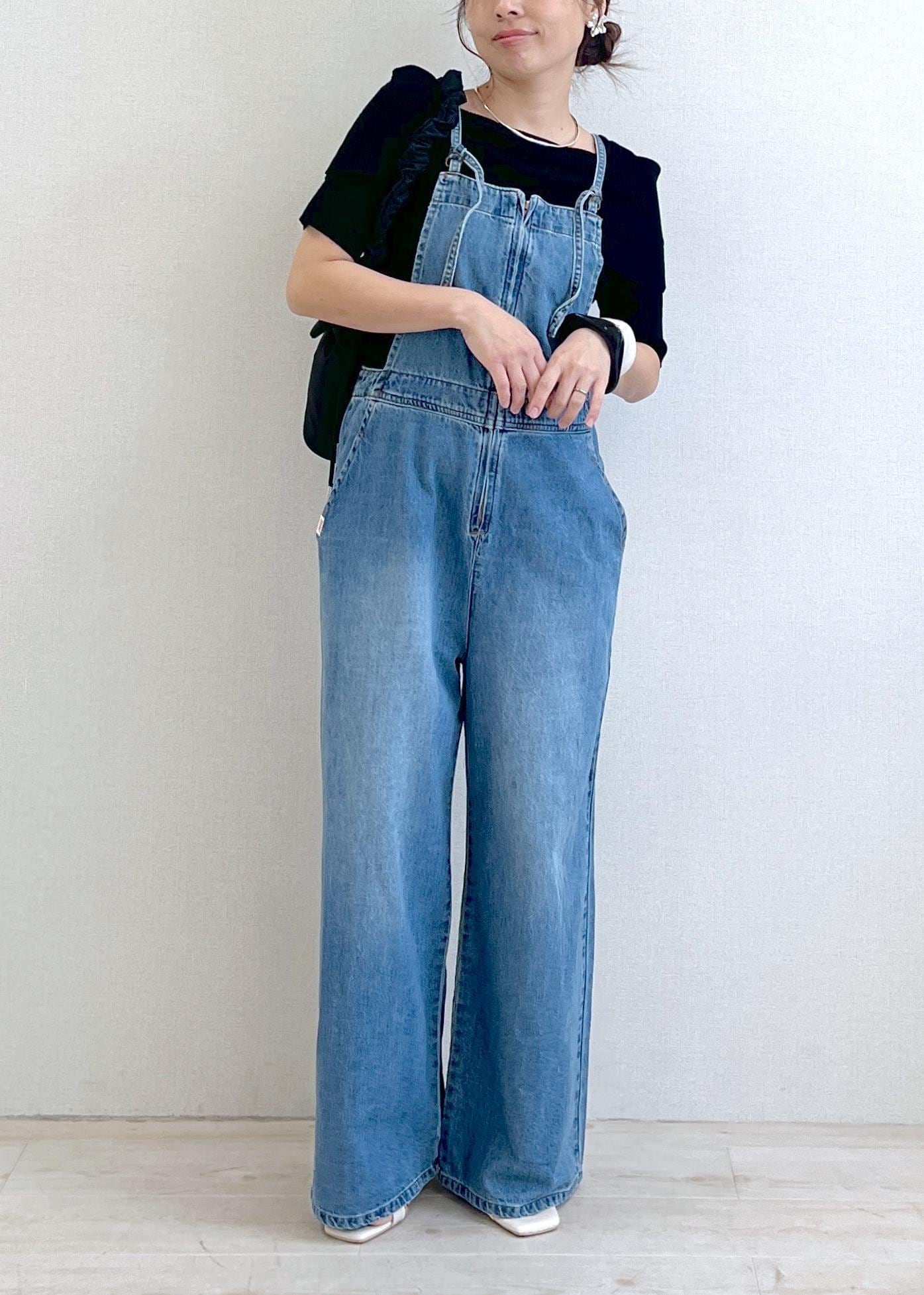 VIS【Coca-Cola】VIS別注エンブロイダリーサロペットブルー系 / F¥8,470レビュー152cmでFサイズ着用。肩紐を高めの位置で長さの調節をして、5cmヒールを履いて床ギリギリでした。ペタンコ靴ですと、お直しが必要です。程よくワイドなシルエットですが、大きく見えすぎることなく着られました。柔らかいデニムで厚すぎない素材感なので、夏にもピッタリ!肌に張り付く感じもなくサラッと着られて着心地◎