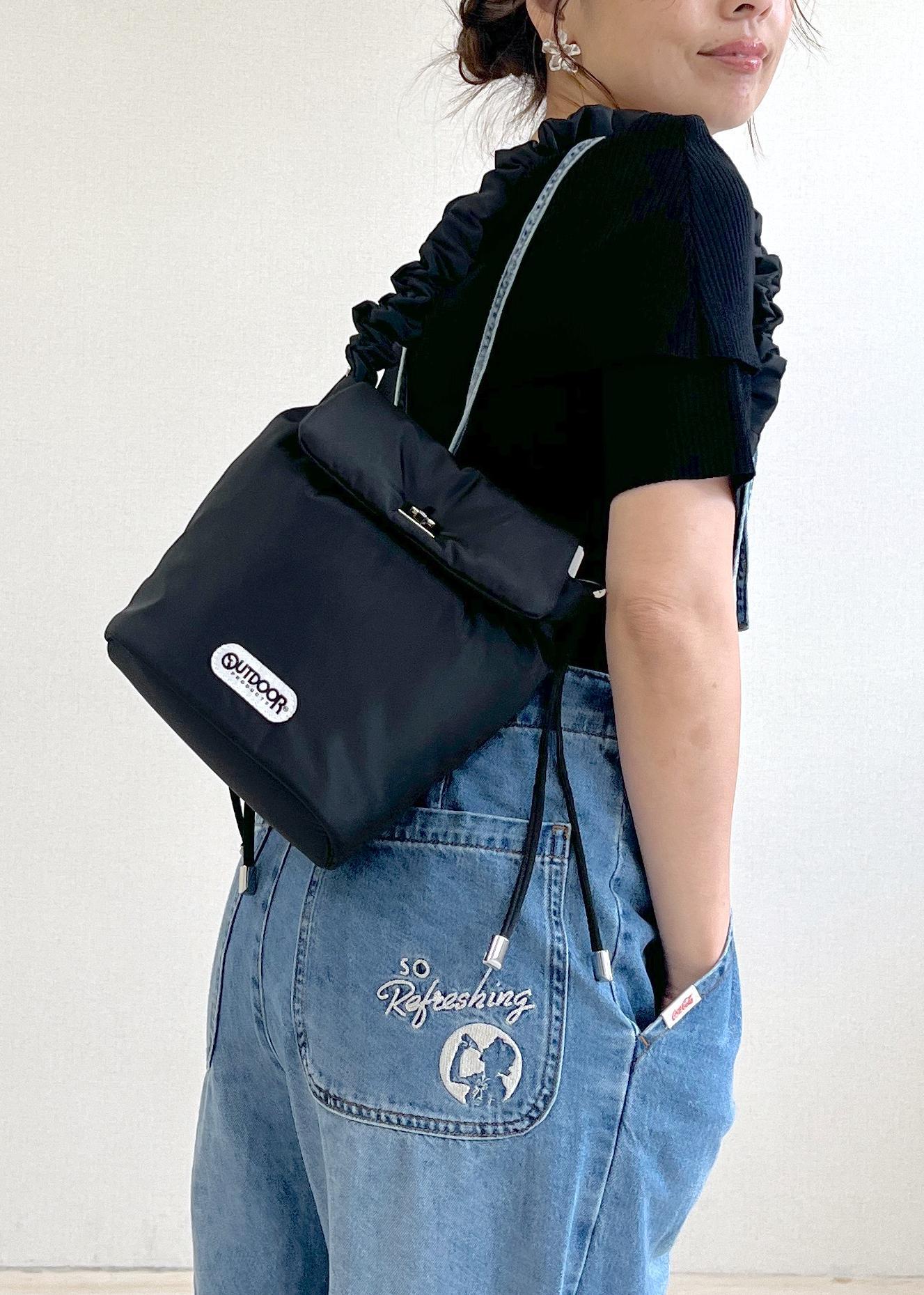 NEW!VISWEB限定追加【OUTDOOR PRODUCTS】VIS別注ドロストミニショルダーバッグブラック / F¥6,930レビューoutdoor別注バッグ。ショルダーにも手持ちにもできるギャザーハンドルがポイント!ナイロン素材は今年のトレンドアイテム。とっても軽くて、ミニ財布、携帯、リップなどはしっかり入ります。コーディネートのポイントにお勧めです。