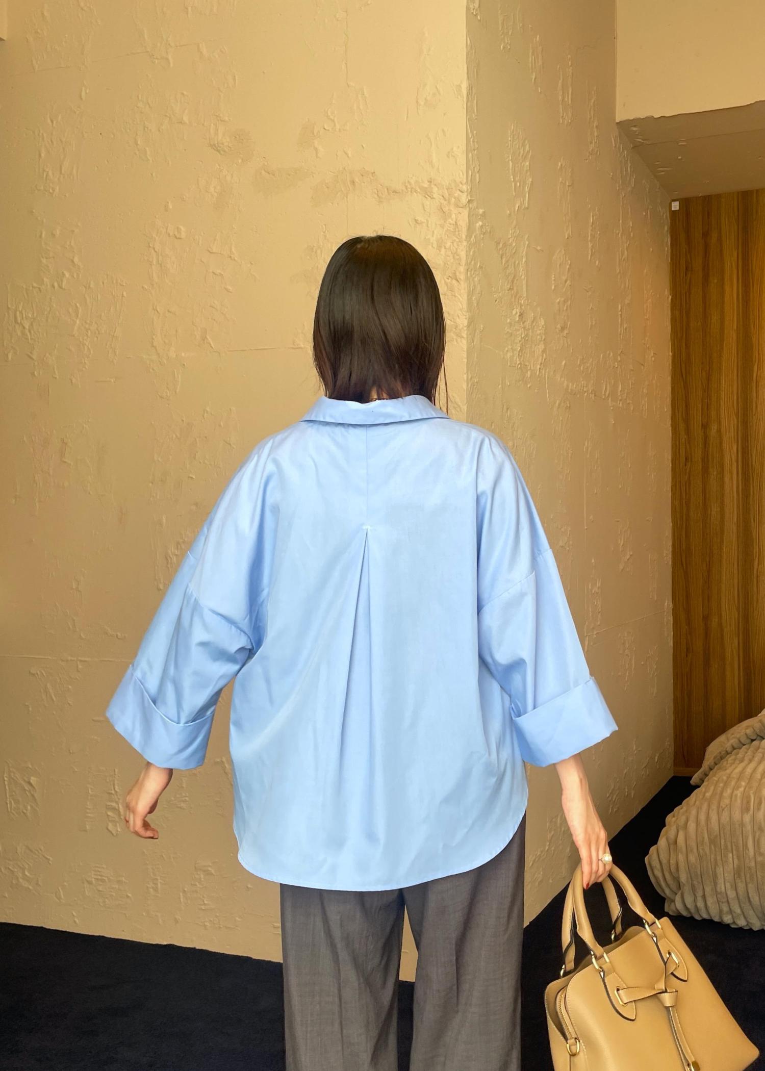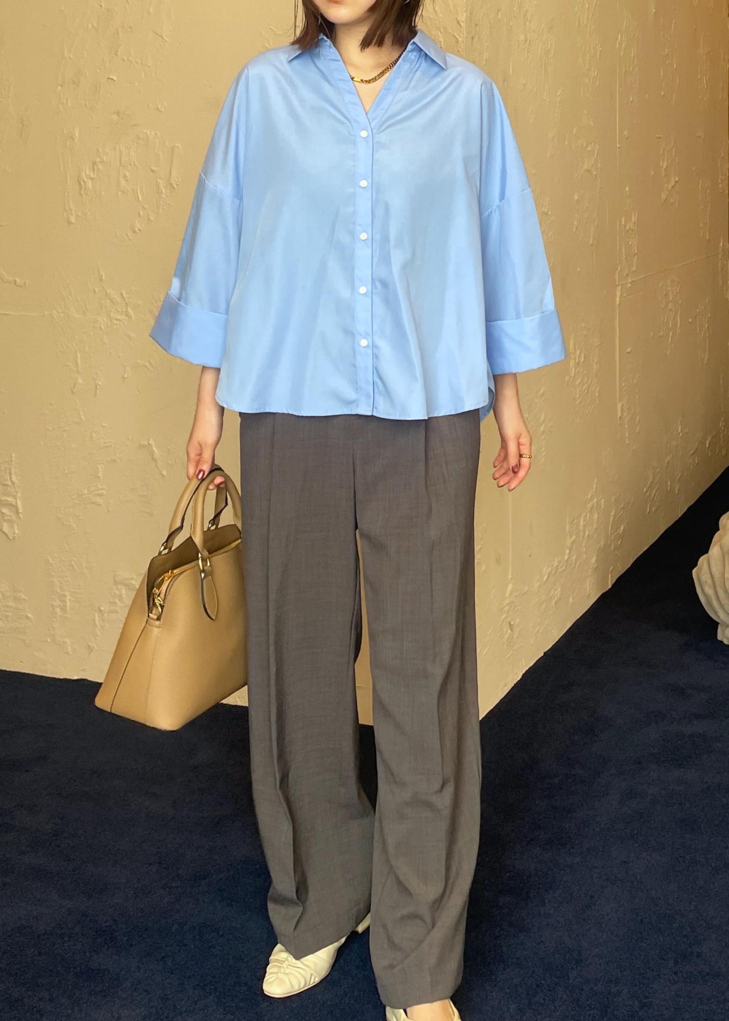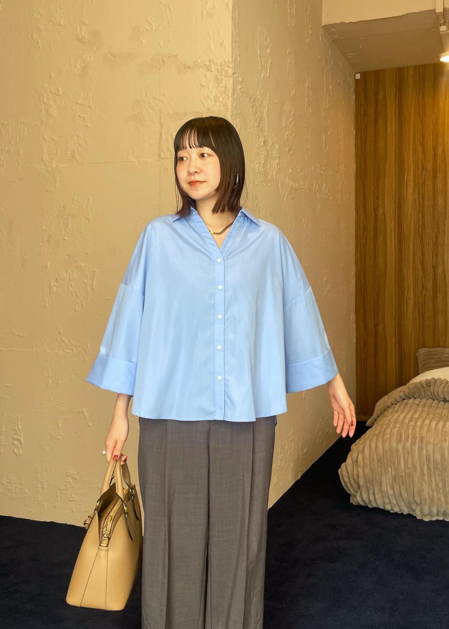 VIS【WEB限定】スキッパーワイドスリーブシャツ/通勤対応ブルー / F¥3,293レビューワイドなシルエットが今っぽいシャツ♡ゆったりとしたサイズでリラックス感がありながら、程よくハリのある生地感できちんと感も◎スキッパーデザインで首元がスッキリなので、骨ストのわたしも膨張せず着れました!