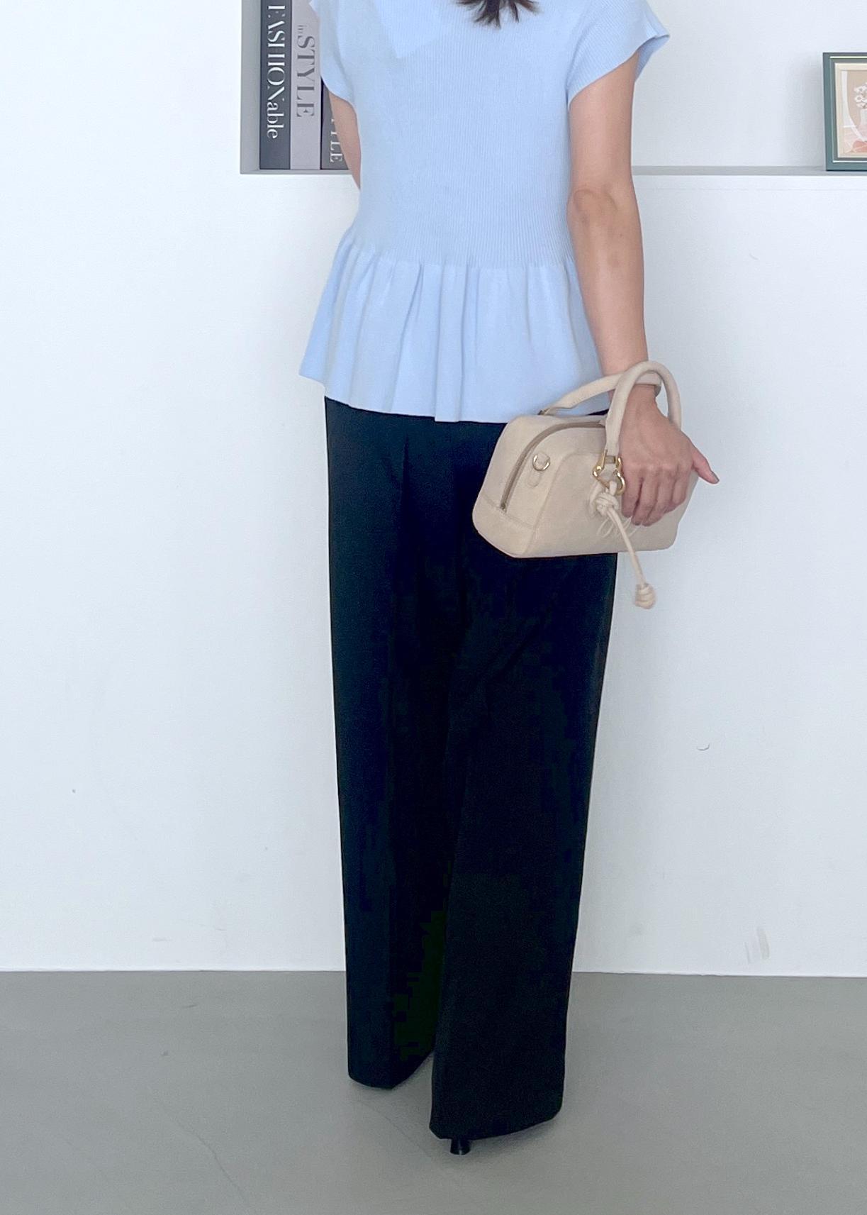ブラックで引き締めつつ、セミワイドの抜け感で“きちんとしすぎない”こなれ感を演出。