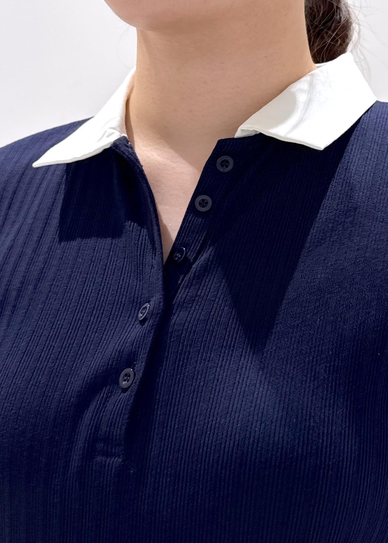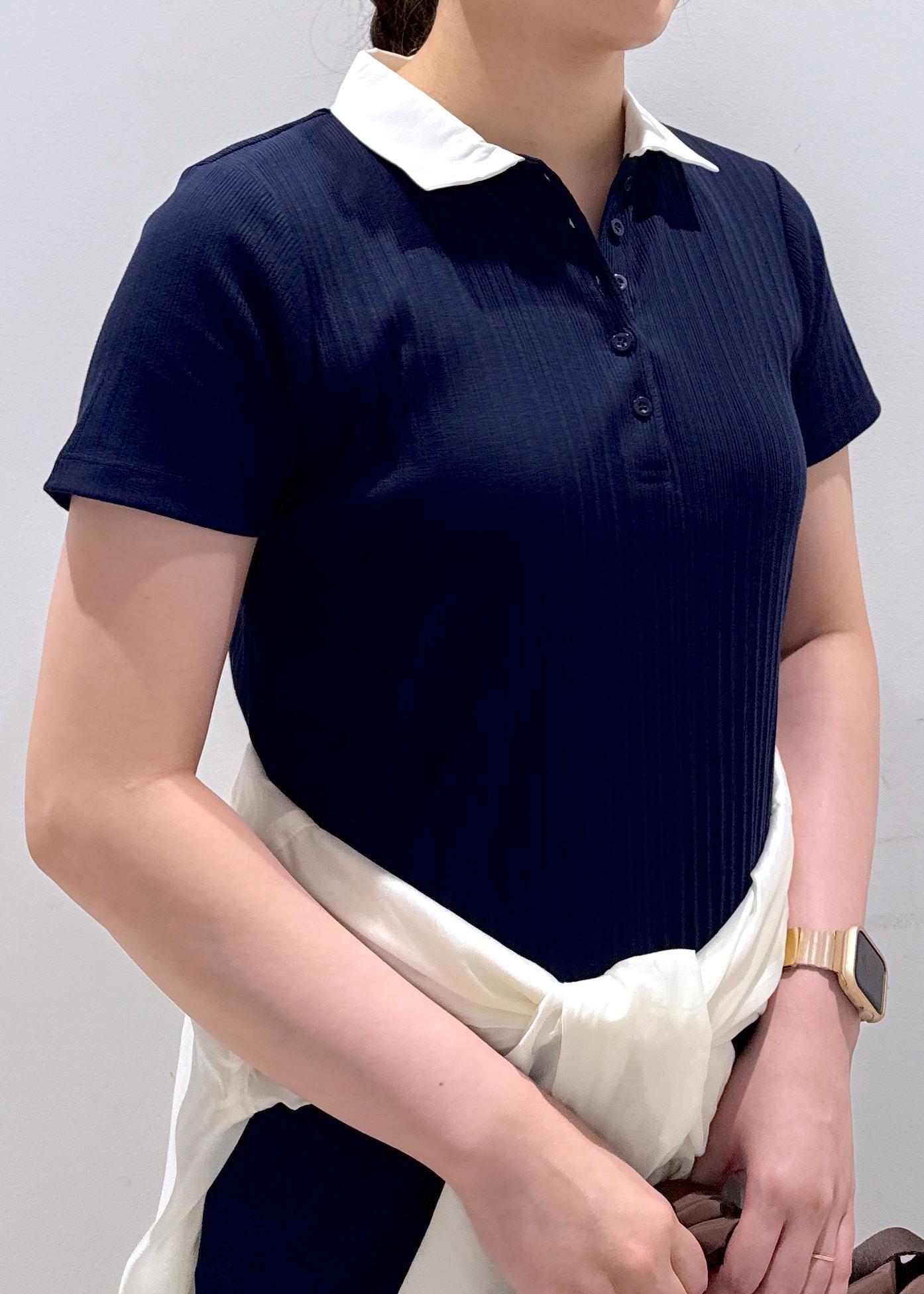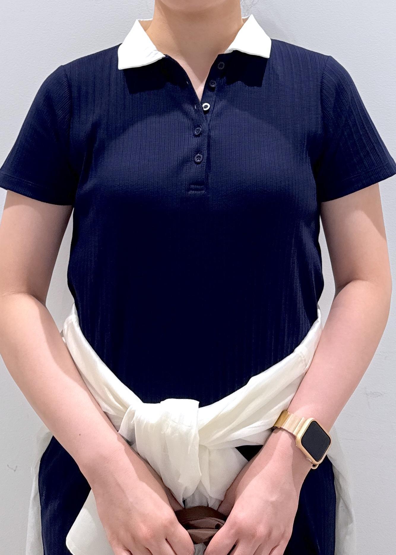 VISポロ衿ランダムリブワンピースネイビー系 / F¥4,612レビュー身長157cm/Fサイズ着用。襟付きのロングワンピースで長さが足首より5センチほど上ぐらいの着丈。スニーカーを履いて靴下の色物きちんと見えます。サラッとした素材感で裏地無しですが、ヒップ周りはゆとりがあり思った以上にピッタリしすぎないので下着のラインは気になりませんでした。2色の展開で色味が暗めなので今から秋まで着れそうです◎