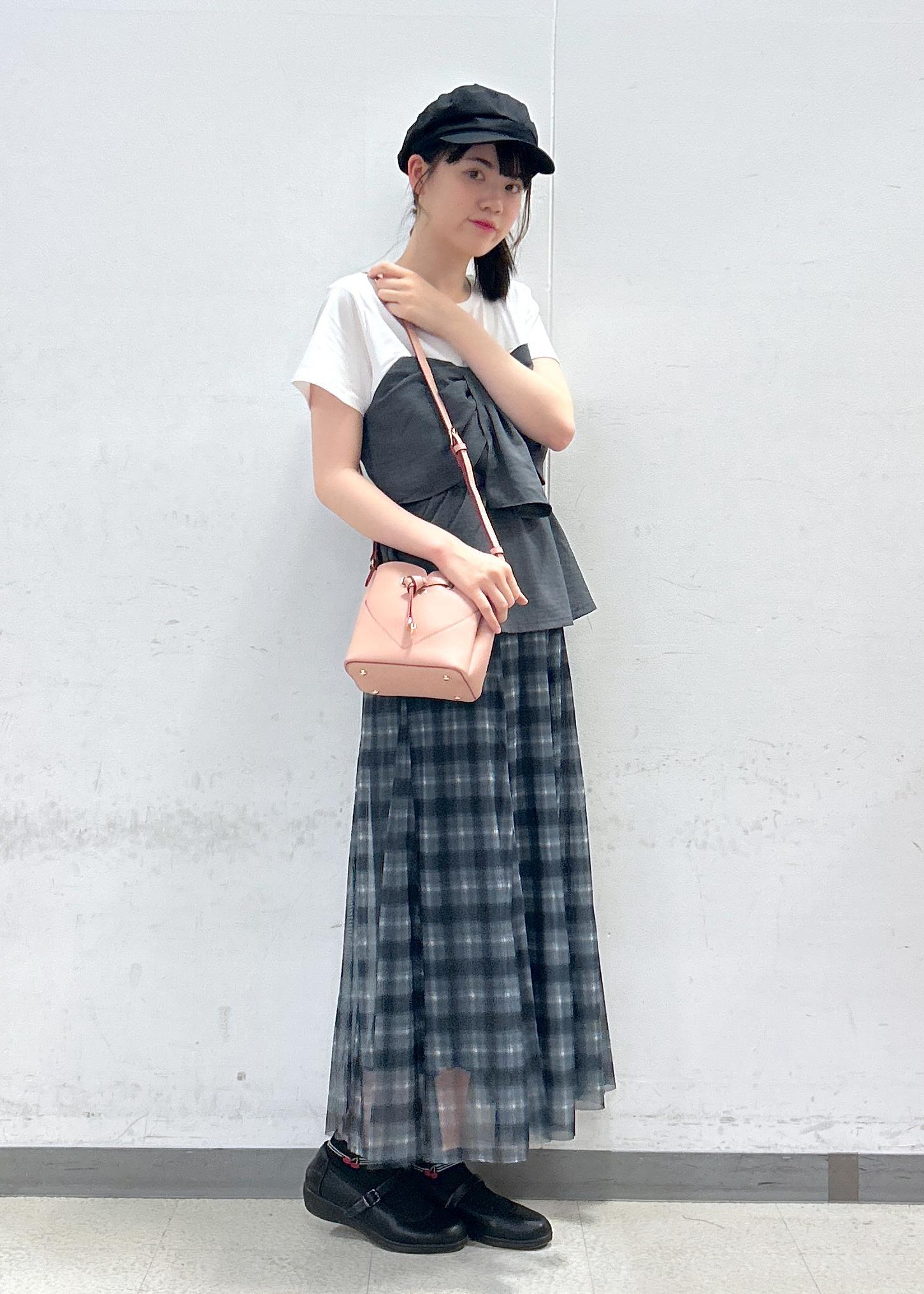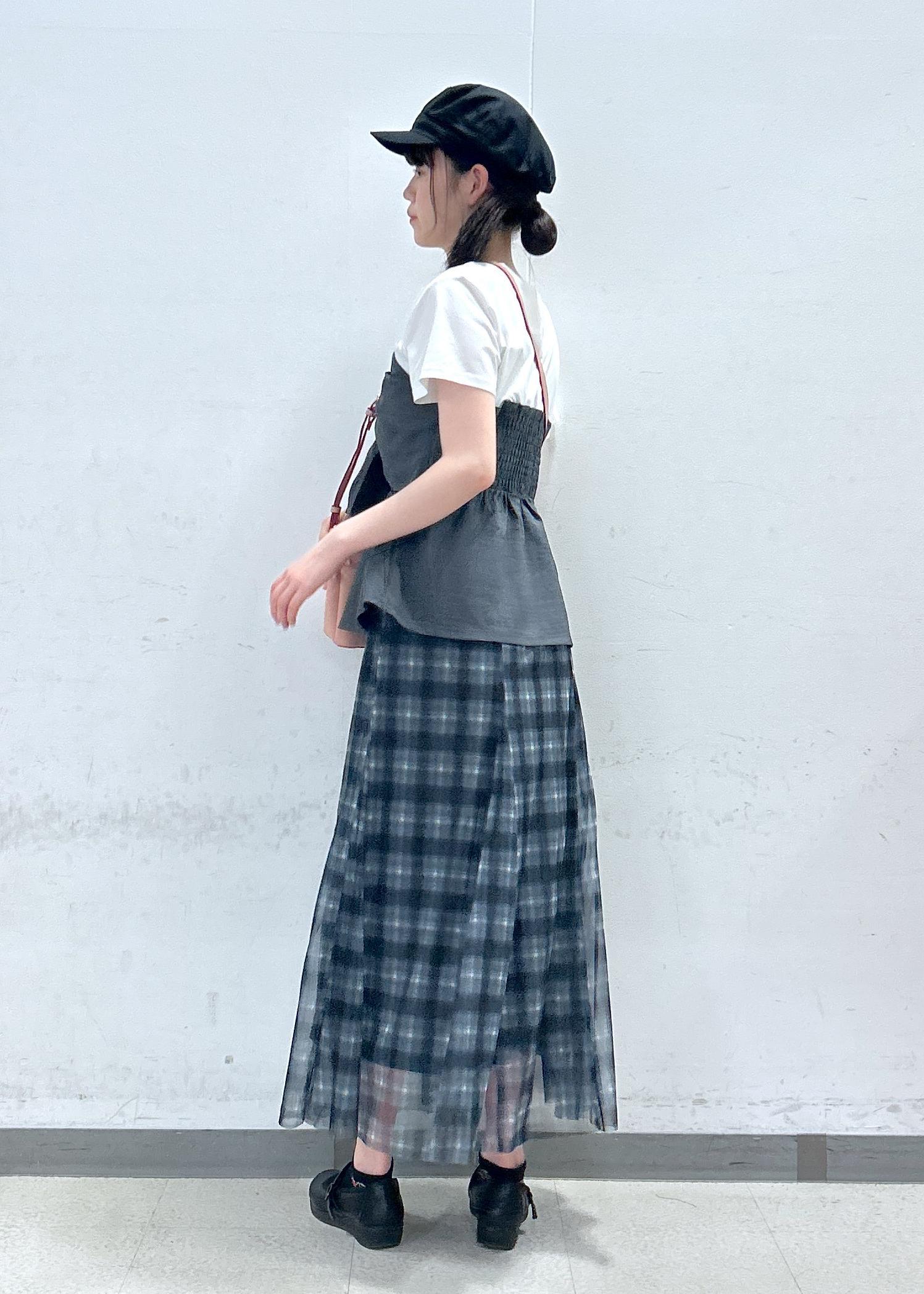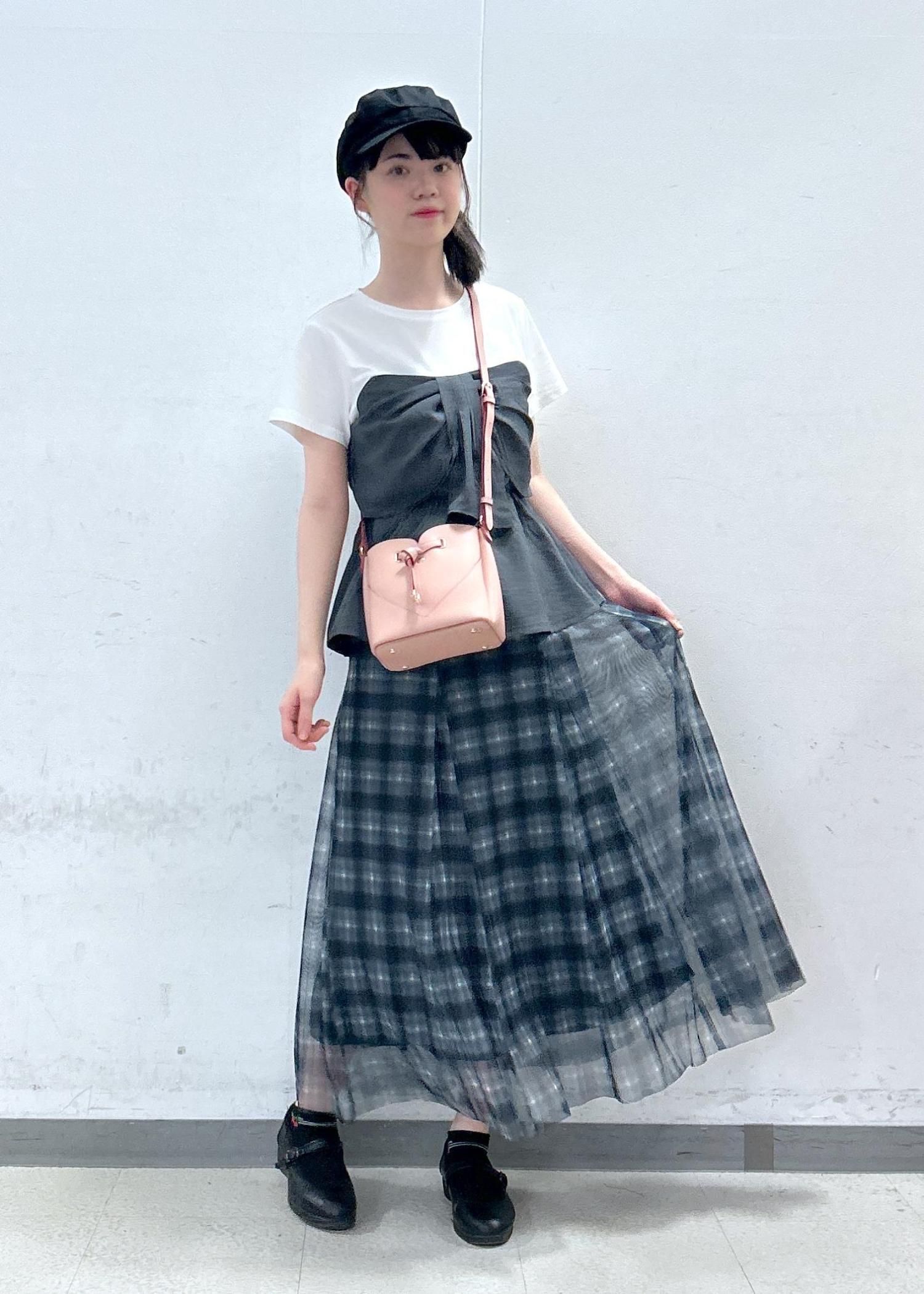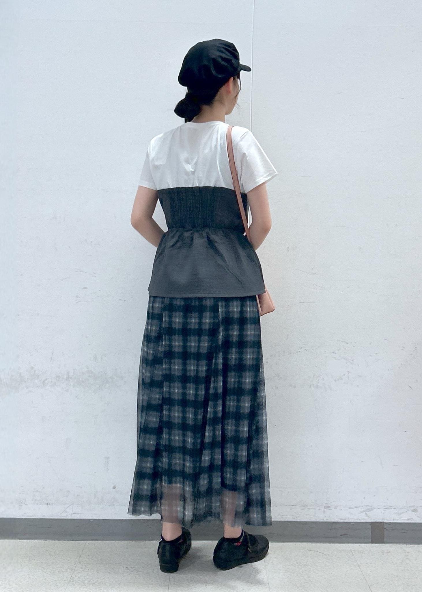 VIS【洗える】チュールプリントチェックスカートブラック系 / F¥4,612レビューチュールがふわっと風に揺れるフェミニンなスカート。裾に向かって3角のマチが入っているので腰周りはスッキリ、蹴回しは広めの女性らしいシルエットです♡柔らかい素材&ウエストがゴムなので窮屈感無く楽に着用していただけます。