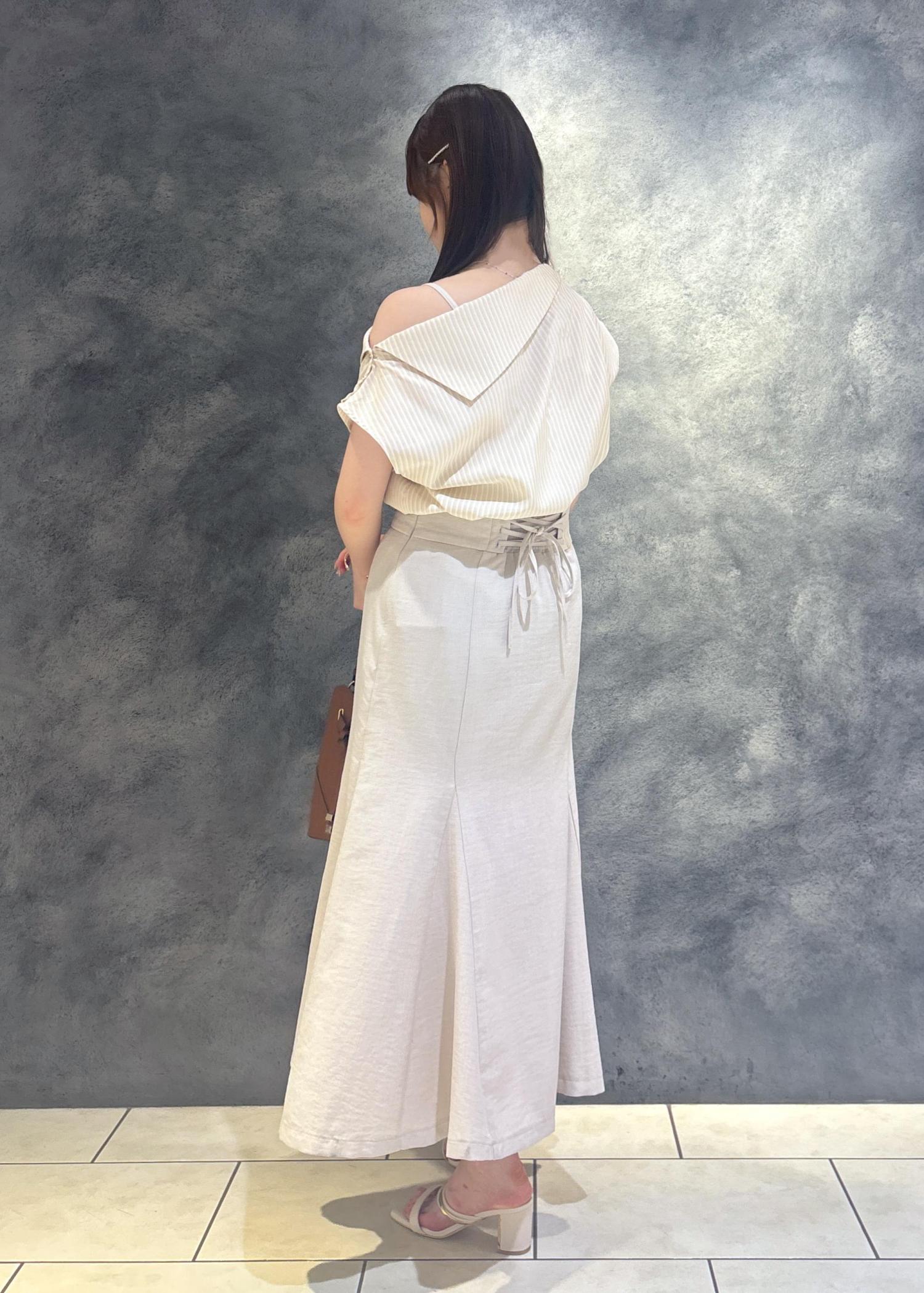 アイボリー系のスカートを合わせて、ワントーンコーデっぽくしました!