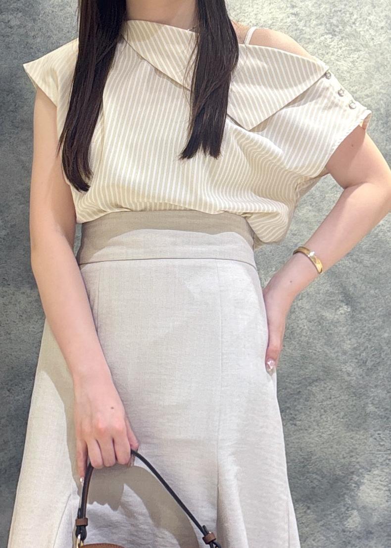 片方の肩を少し落としたデザインなので、オフショル初心者さんでも使いやすいです!