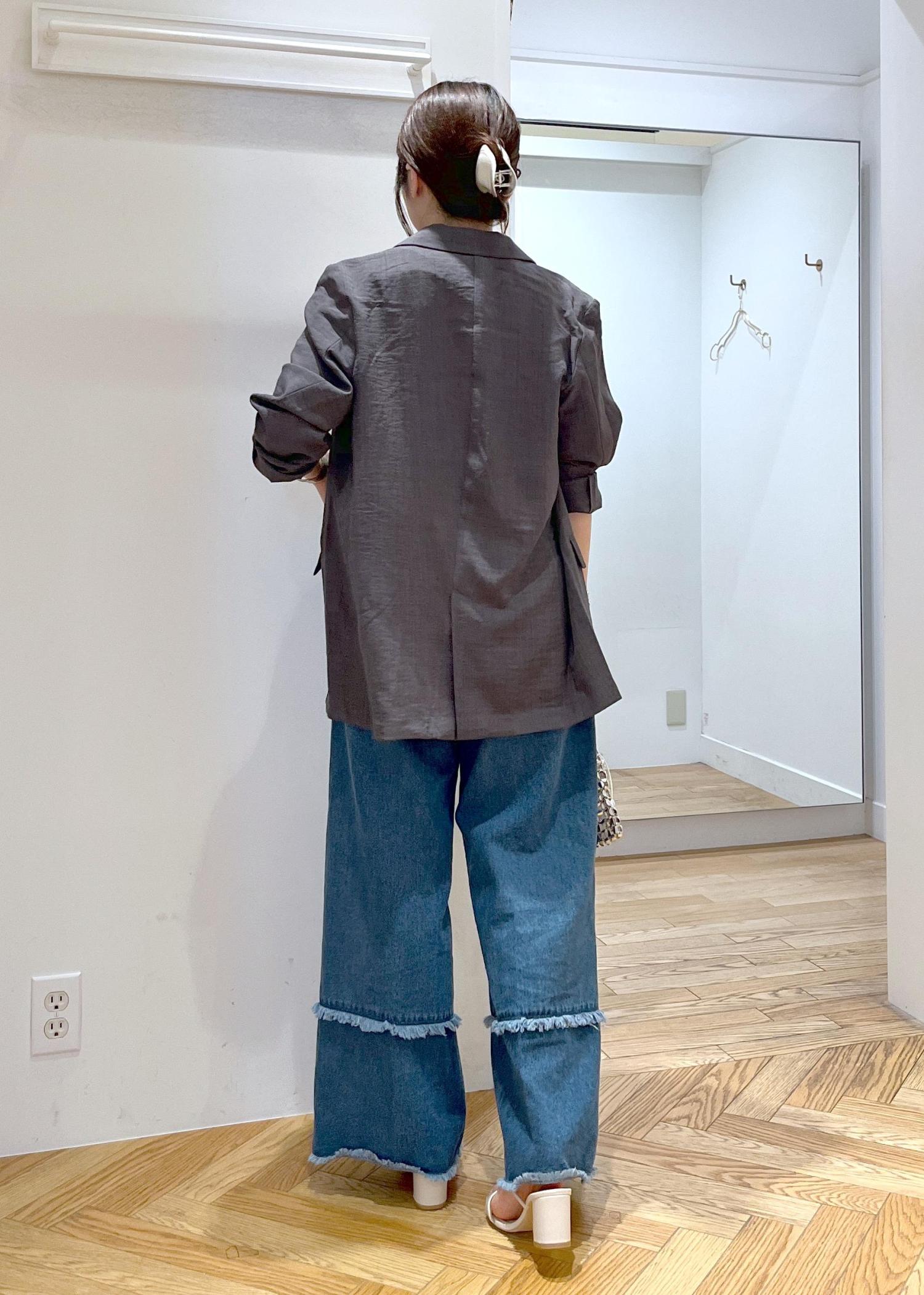 着丈はヒップ下の長めでカジュアルスタイルにもおすすめ。