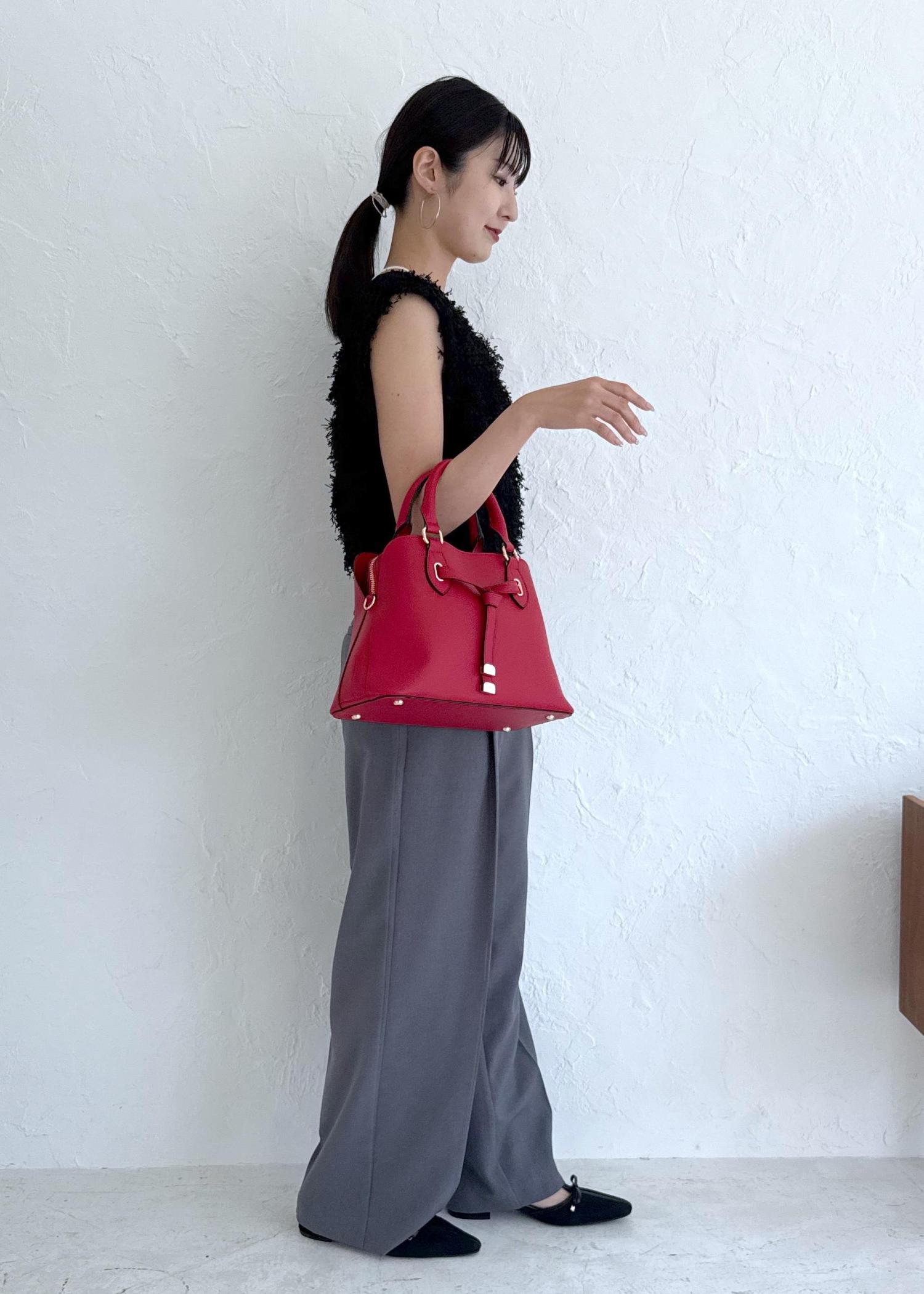 VISフロントタイ ブガッティ型ボストンバッグ/2WAYレッド / F¥7,909レビューフロントのリボンがさりげなく女性らしい印象。