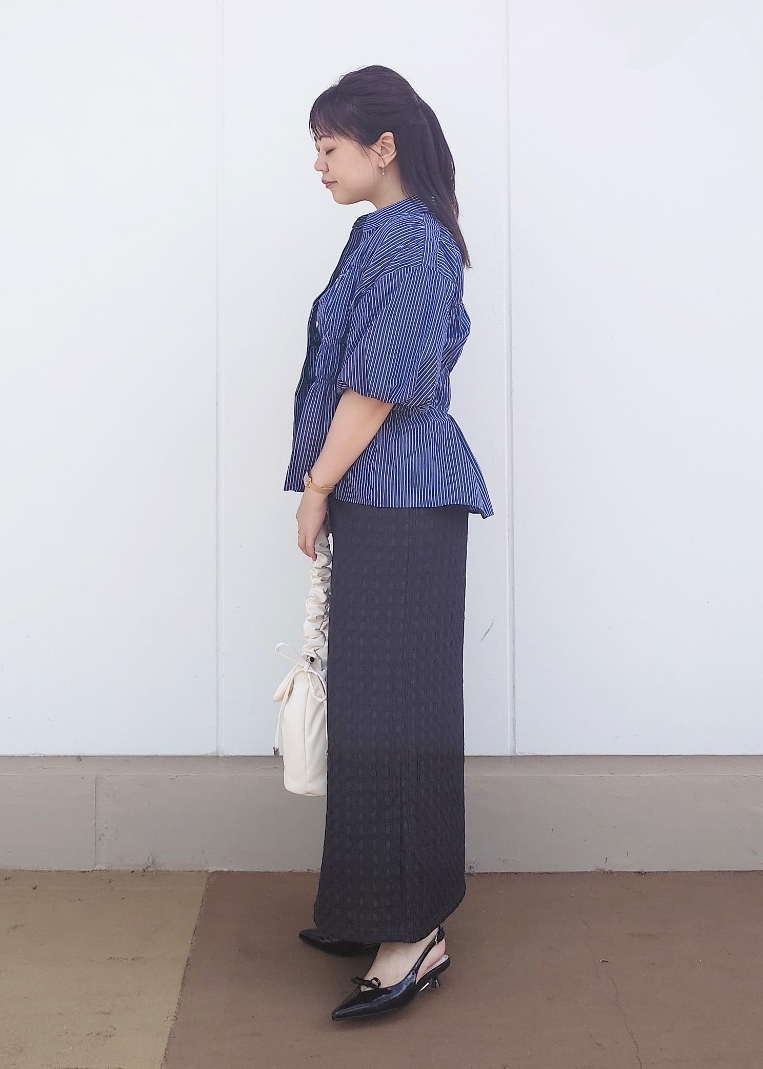 ポコポコとしたジャガード生地で、さらっとした肌触りなので着心地のいいスカートです。