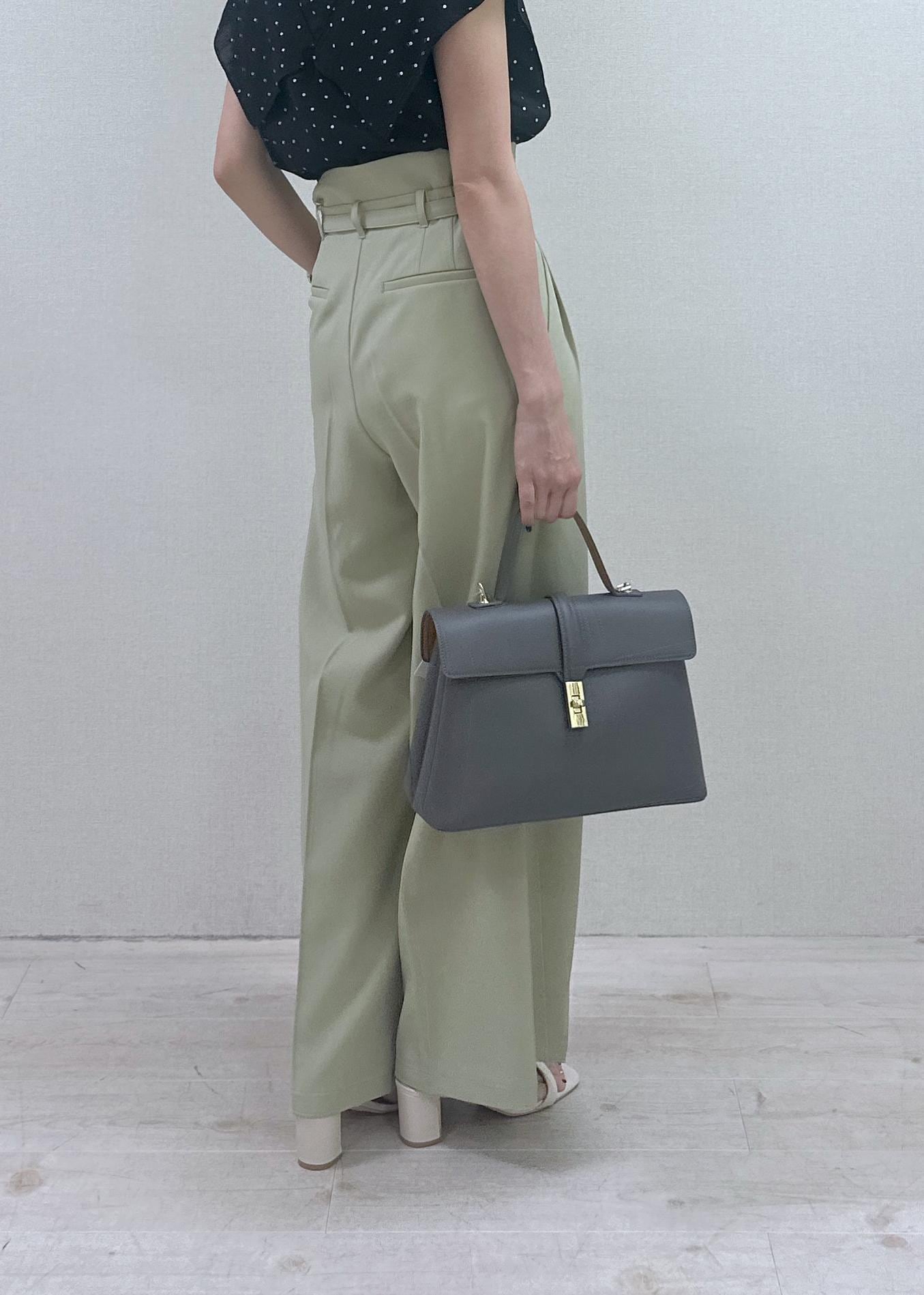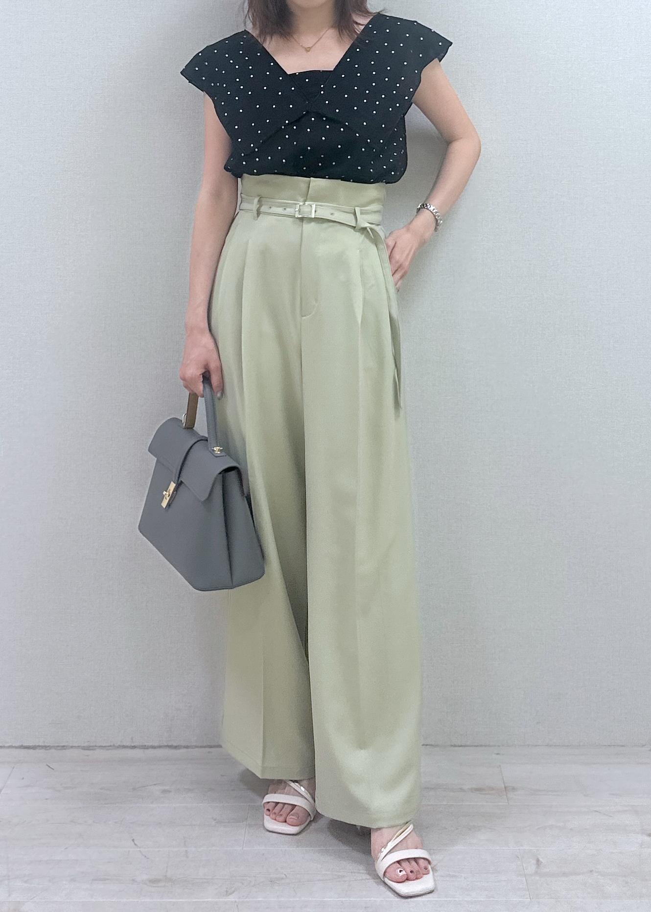 VIS【新色追加】【防シワ/接触冷感】ベルトディテールタックワイドスラックスパンツライトグリーン / M¥6,589レビュー162cmでMサイズを着用しております。