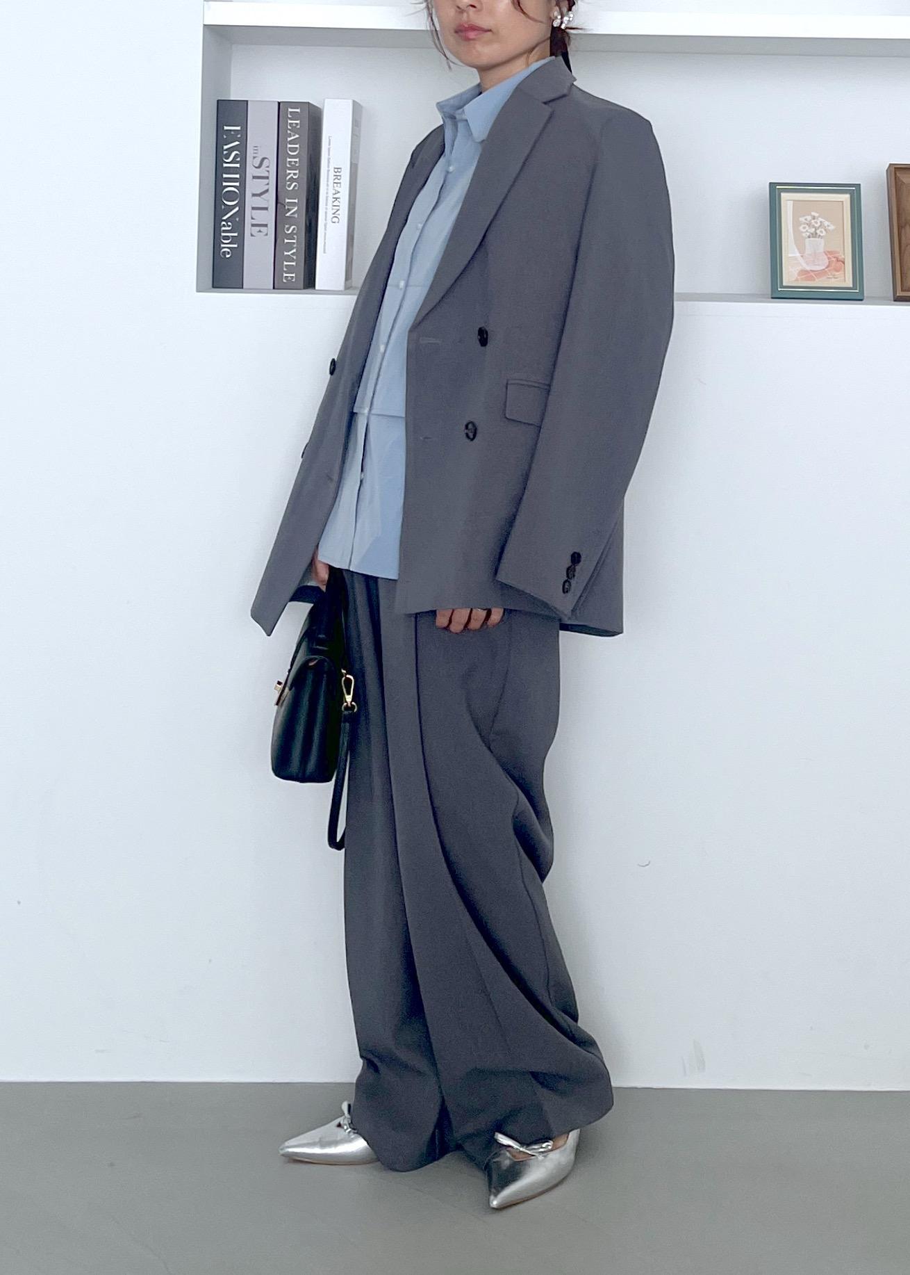 VIS【美easy】ウーリッシュダブルブレストテーラードジャケット【セットアップ対応/洗える】グレー / M¥8,899レビュー152cmでサンプルだったのでMサイズ着用しました。そこまで大きくは感じませんでしたが、肩が少し落ちたので通常のSサイズがピッタリだと思います。裏地付きの、きちんとジャケットはどんなスタイルにも使える万能アイテム。お尻が隠れる丈ですが、着られることなく小柄さんにも上手に着こなせます。