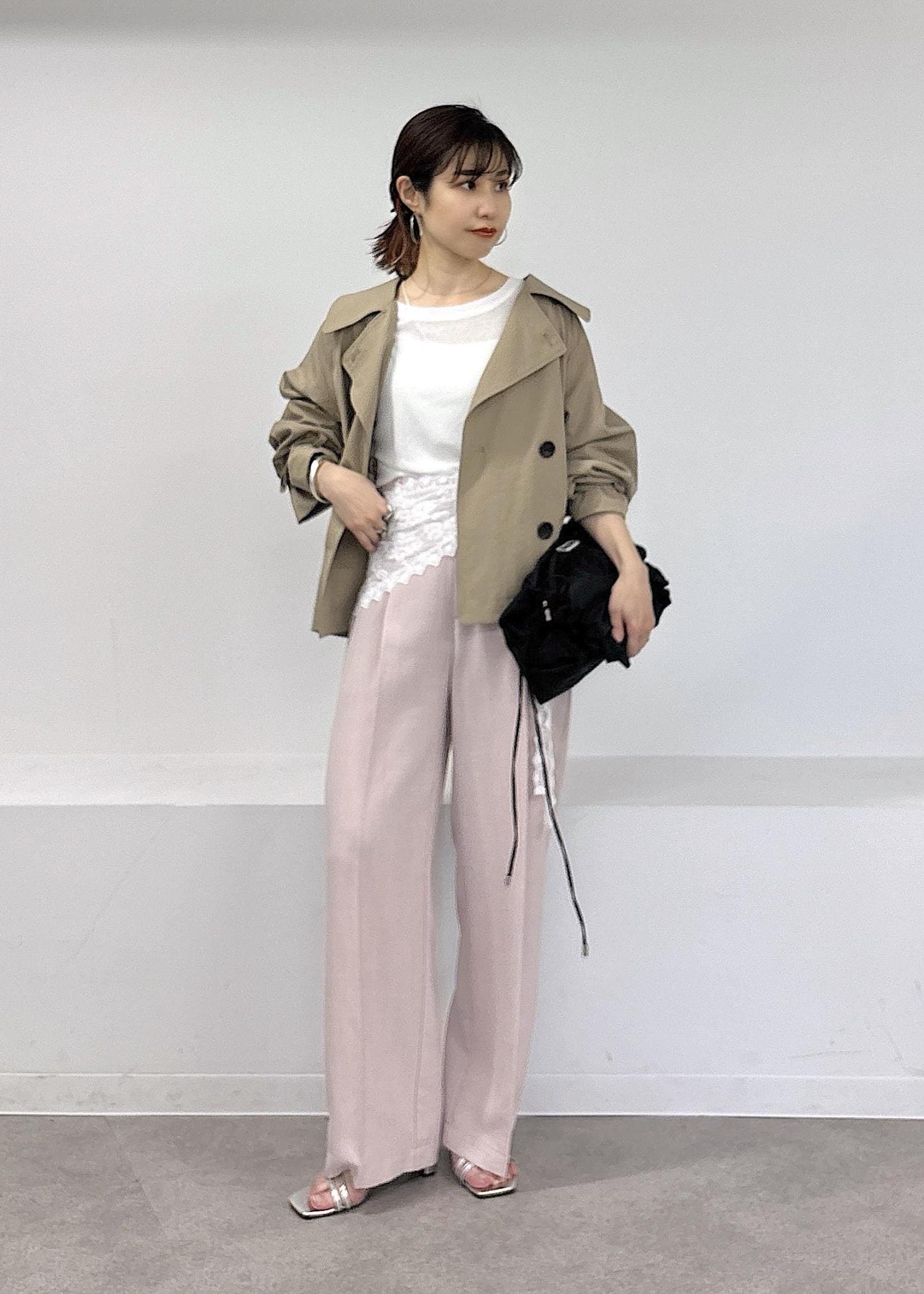 毎シーズン人気の割線ブラウスと美easyシリーズのワイドパンツで合わせたキレイめスタイル♪とろみ感のあるブラウスは袖がシャーリングになっているのでたくしあげて今時期から秋まで長く着れます◎秋はブラウンカラーがオススメ。キチンと見えたい方へオススメのオフィスカジュアルコーデ。