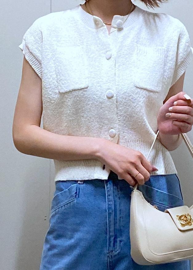 VISくるみ釦ニットトップスカーデ/洗えるオフホワイト / F¥4,939レビューお洗濯可能な、ニットトップスです!