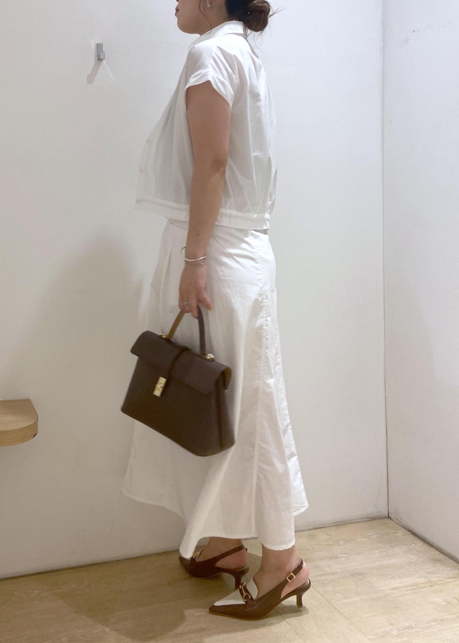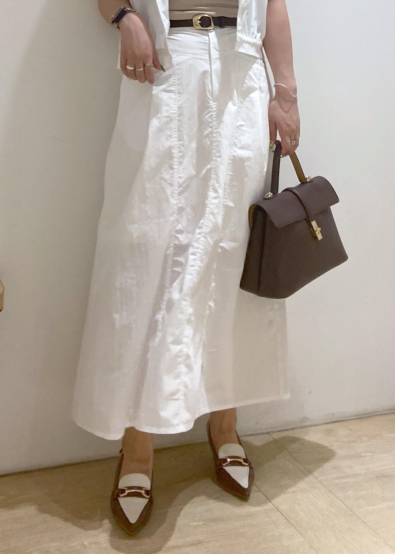 ウエストが少しキュッと内側に入るデザインなので、ボリュームが出過ぎずスッキリ見えしやすいです。