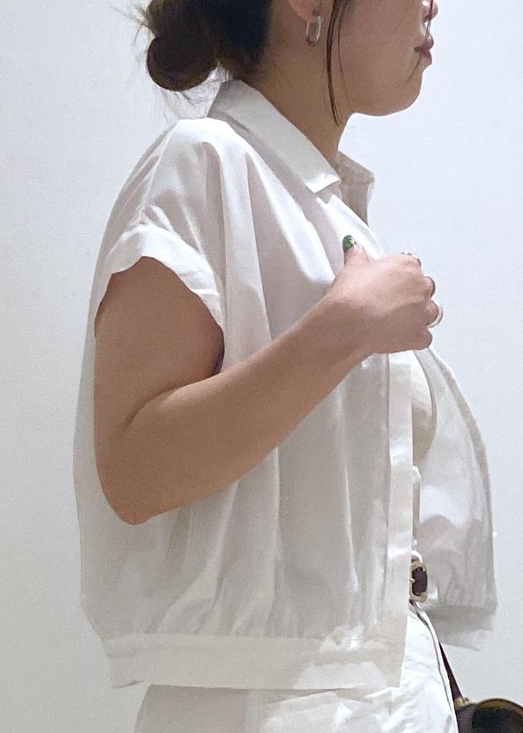おへそが隠れるくらいの丈感なので、ワイドパンツなど広めなシルエットのボトムとの合わせもgoodです!