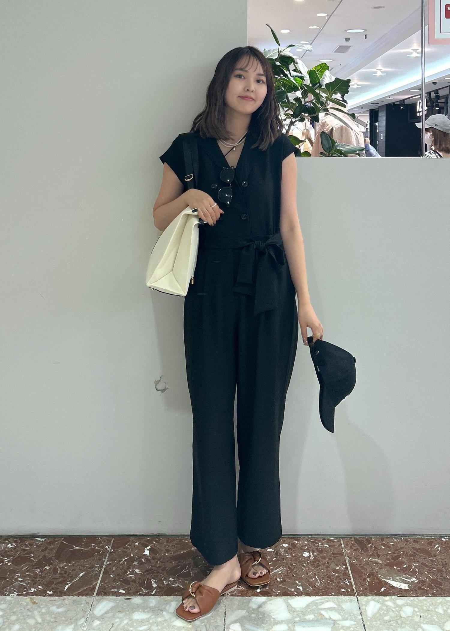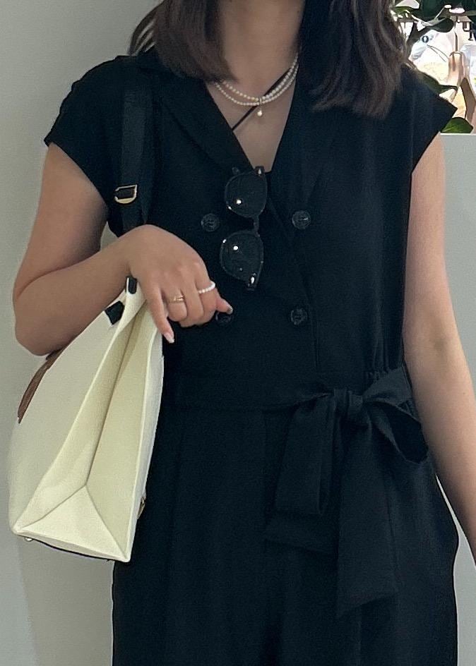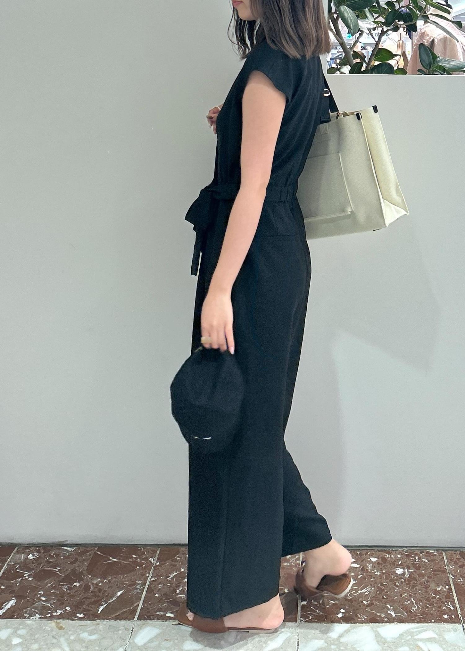 VISエアタン加工リラックスロンパースブラック / F¥5,339レビュー一枚で楽に着れてシルエットも女性らしいロンパース!