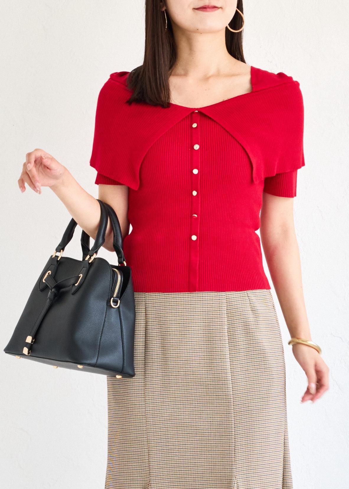 VISビックカラーオフショルハーフスリーブニットレッド / F¥2,963レビュー164cmで腰にかかるくらいの丈感です。