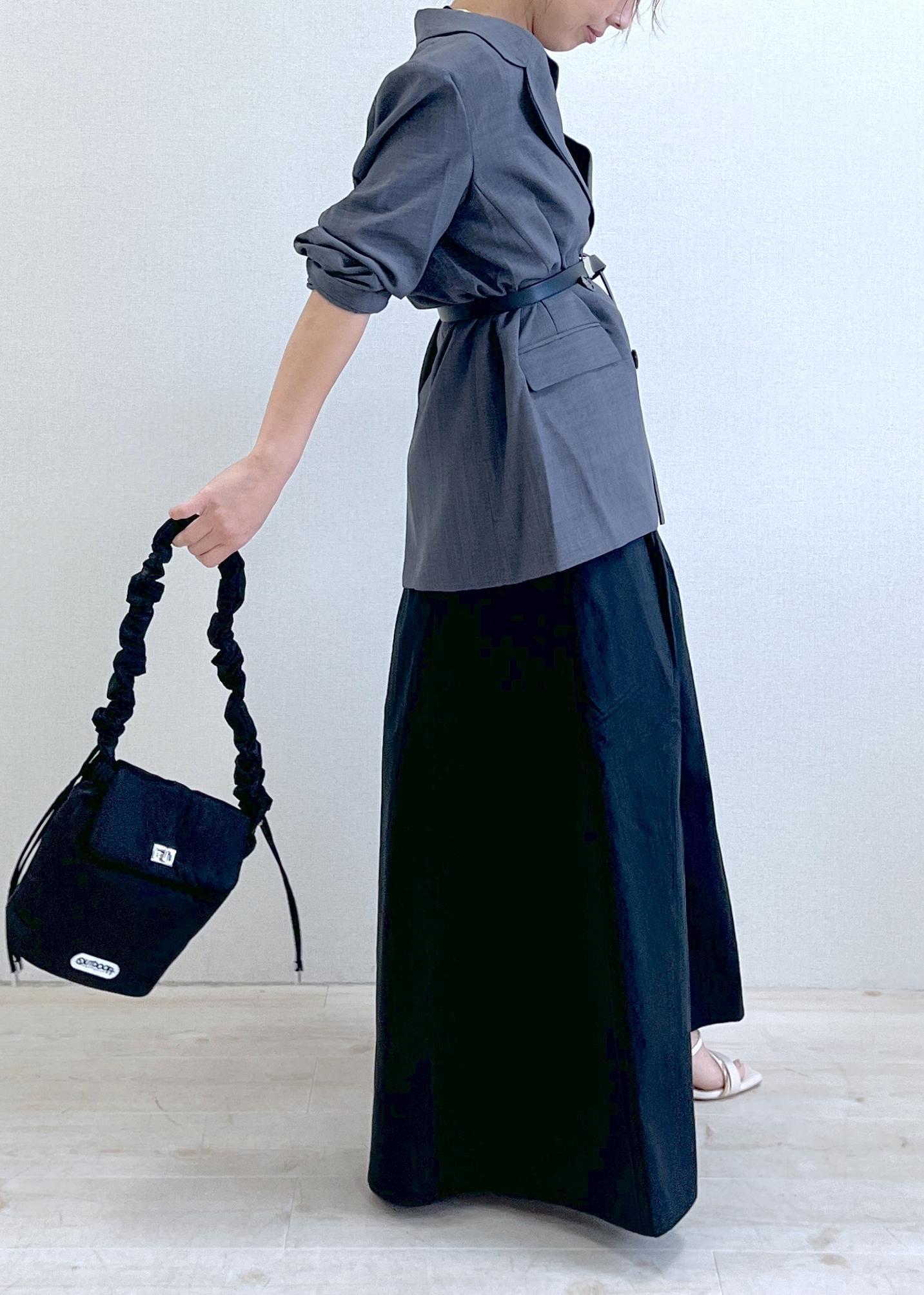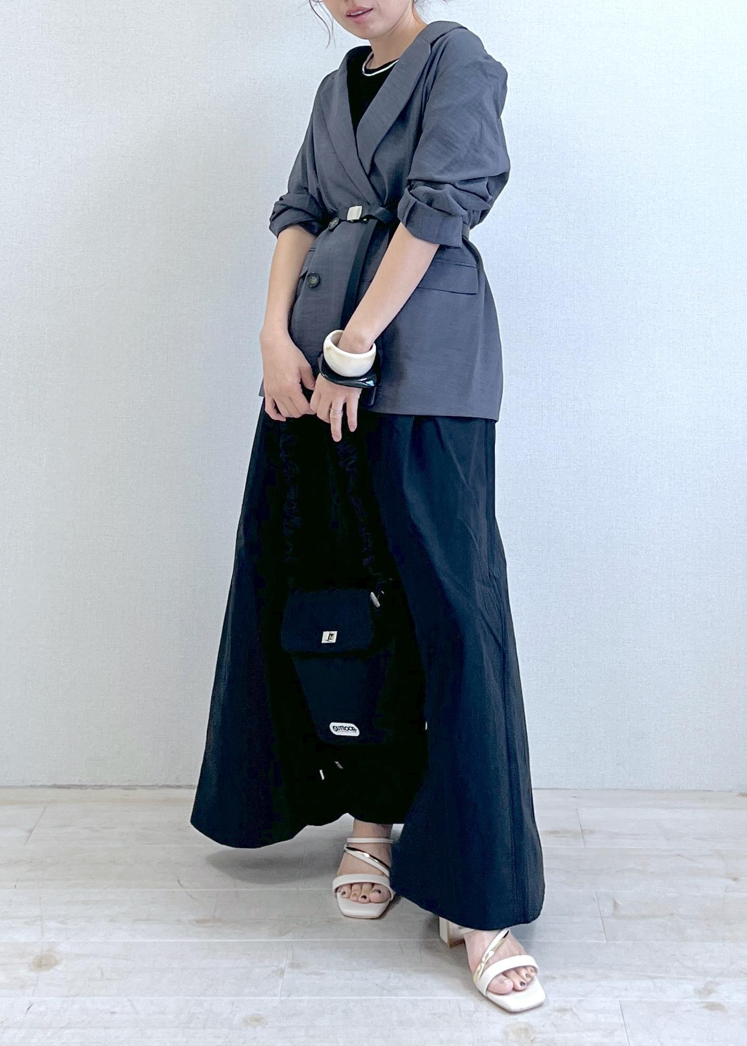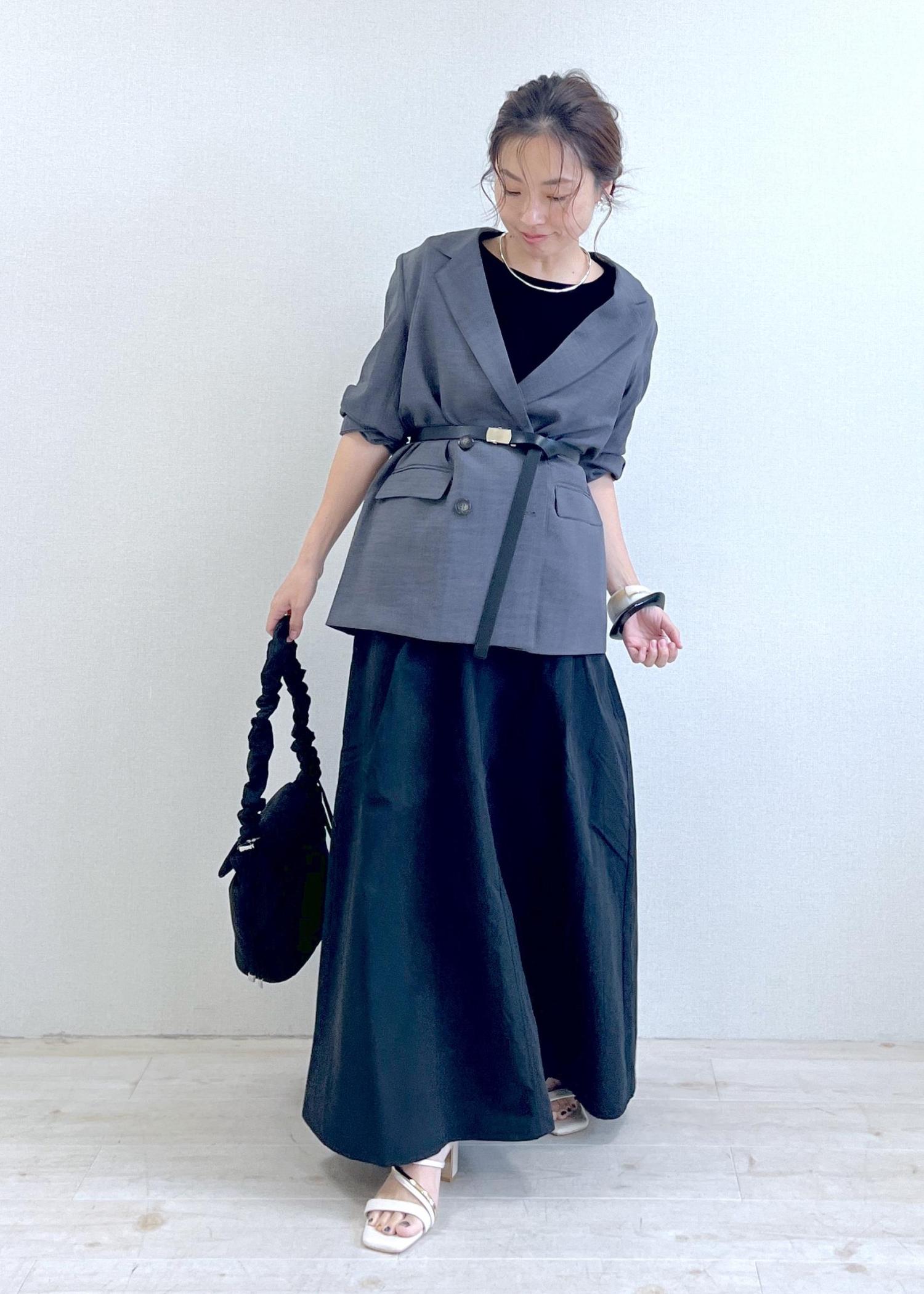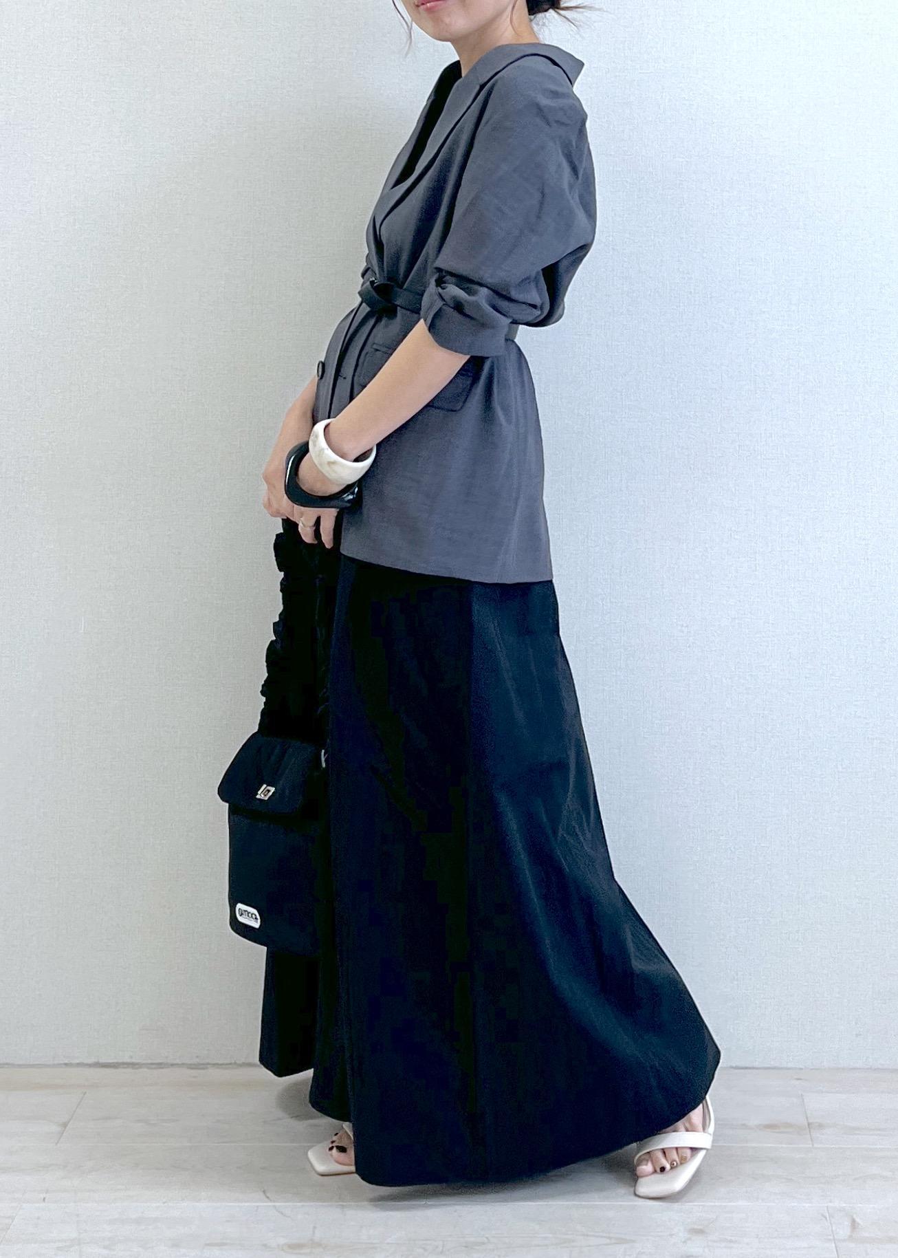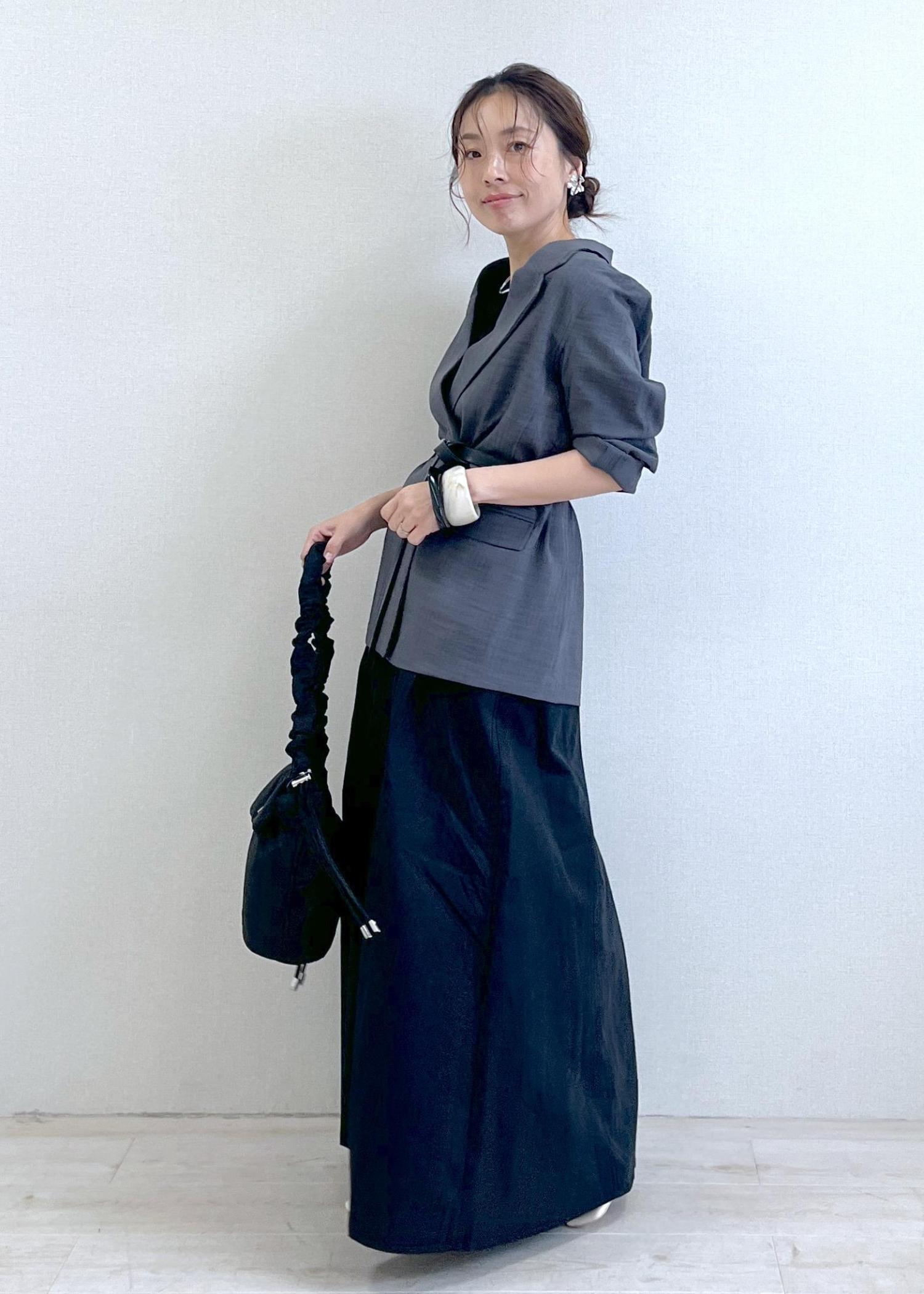 ジャケット×ロングスカートのワンツーコーデで、簡単に“きちんと感”がつくれる万能スタイル!