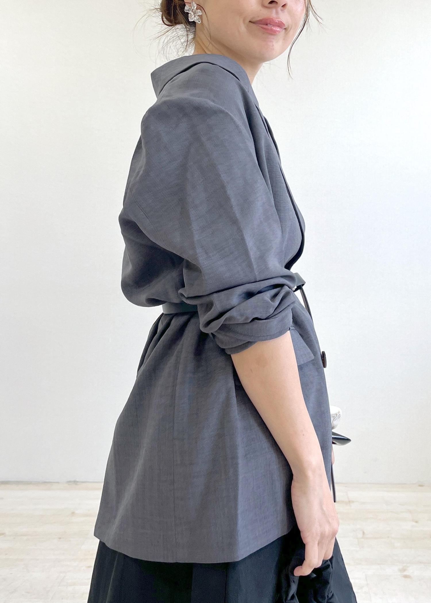 VIS【美easy】リラックスジャケット/セットアップ対応・洗えるチャコール / S¥7,909レビュー152cmでSサイズ着用し、着丈はお尻が隠れるくらいの長め丈。ややオーバーサイズでゆるっとリラックス感のあるシルエット。リネンライク素材で、サラッと着られて夏の冷房対策にも◎長い時期お召しいただけるので、これからの羽織りとしてお勧めです。