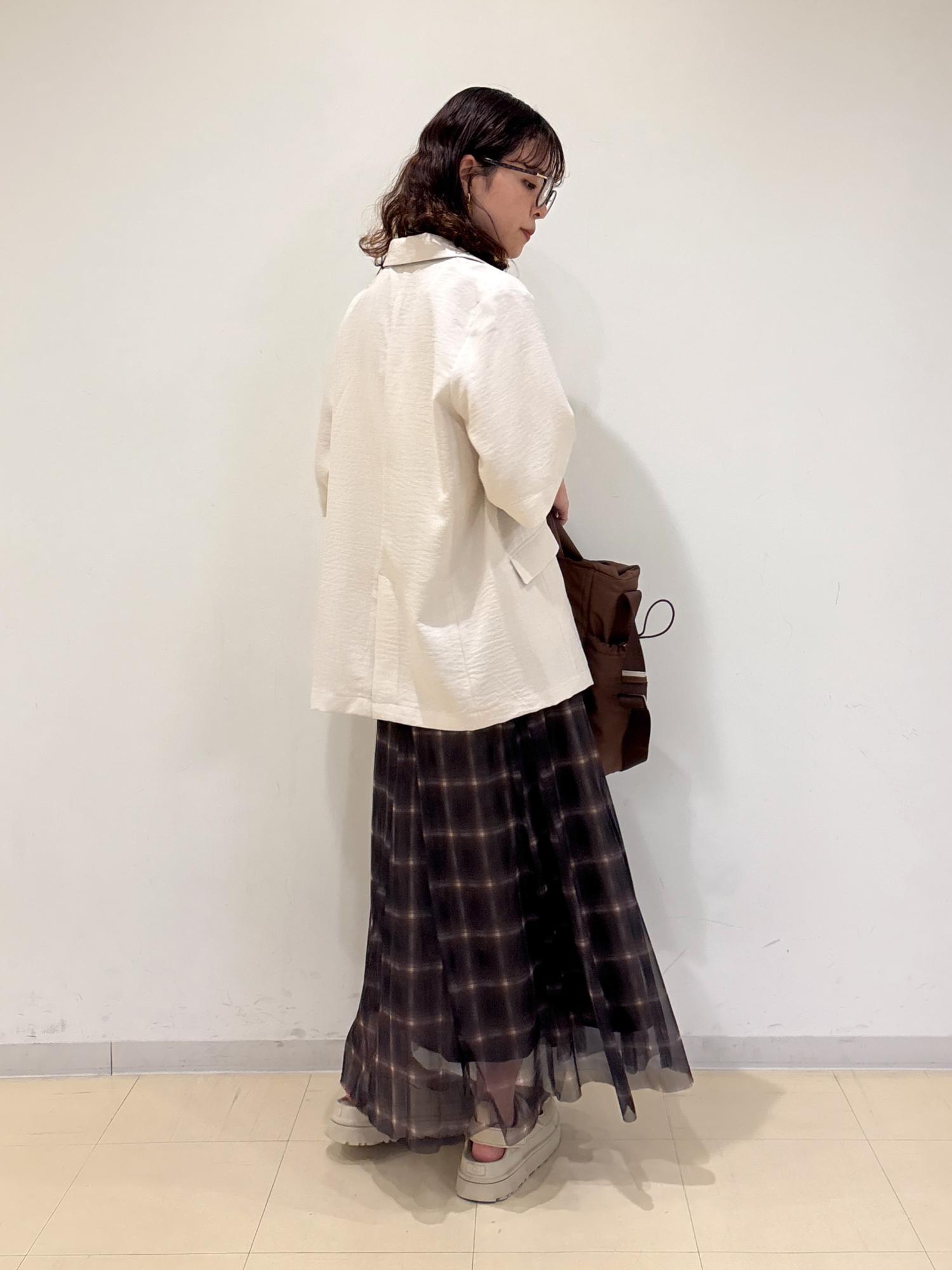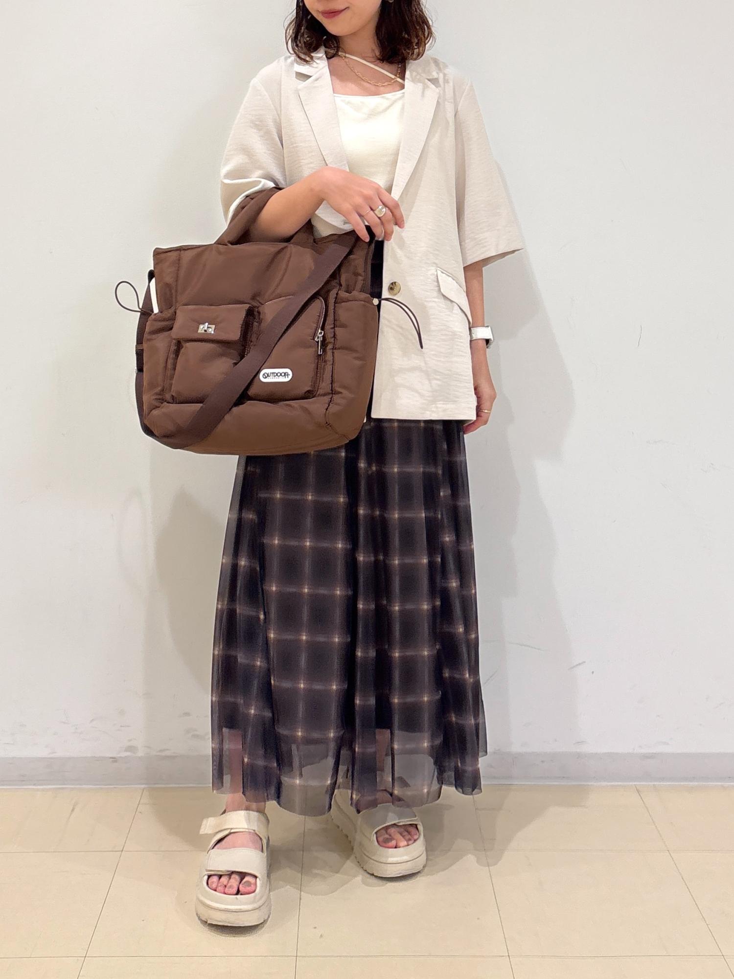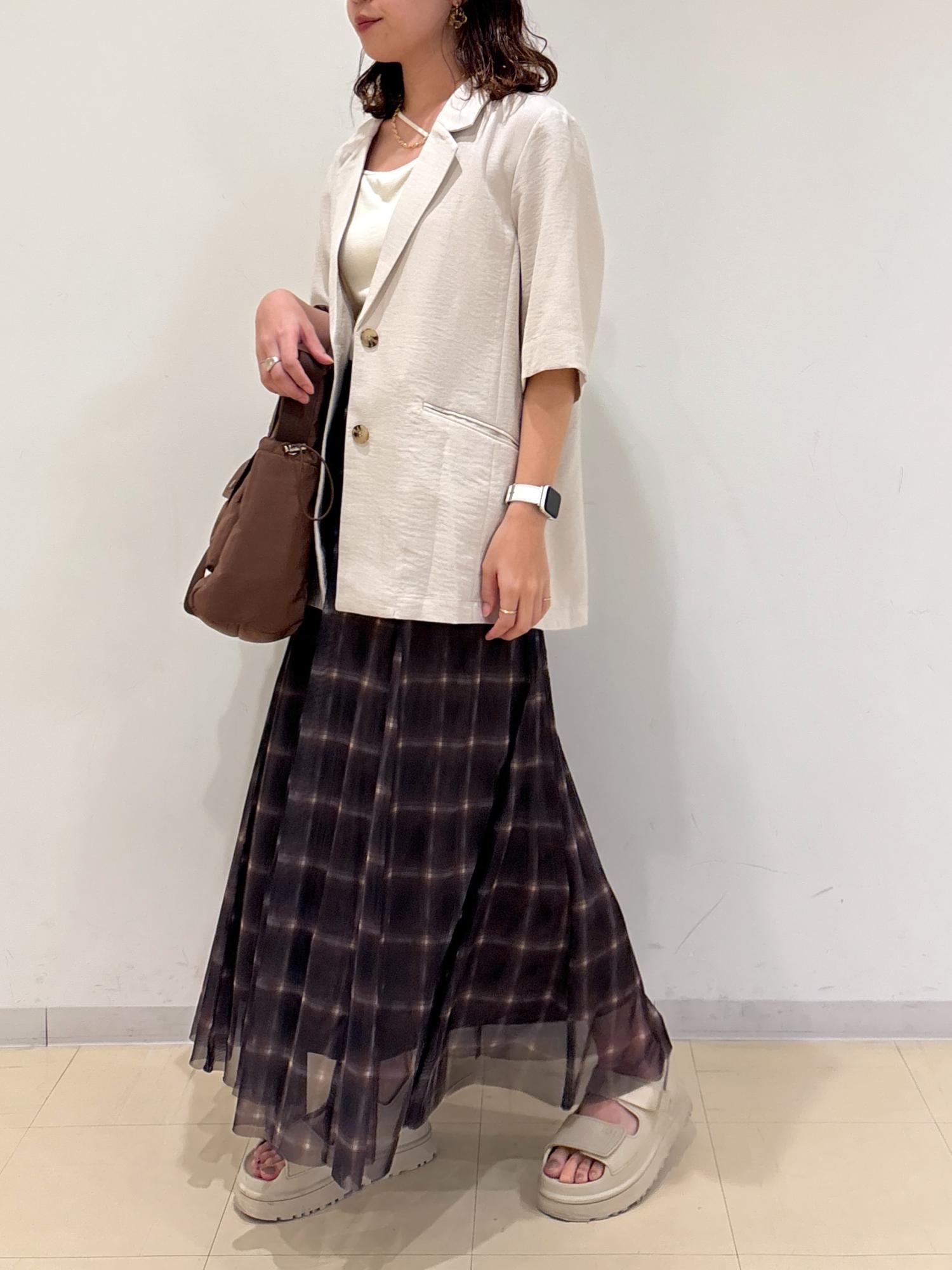 VIS【洗える】チュールプリントチェックスカートダークブラウン系 / F¥4,612レビュー160センチ着用で足首にかかる程の丈感です。