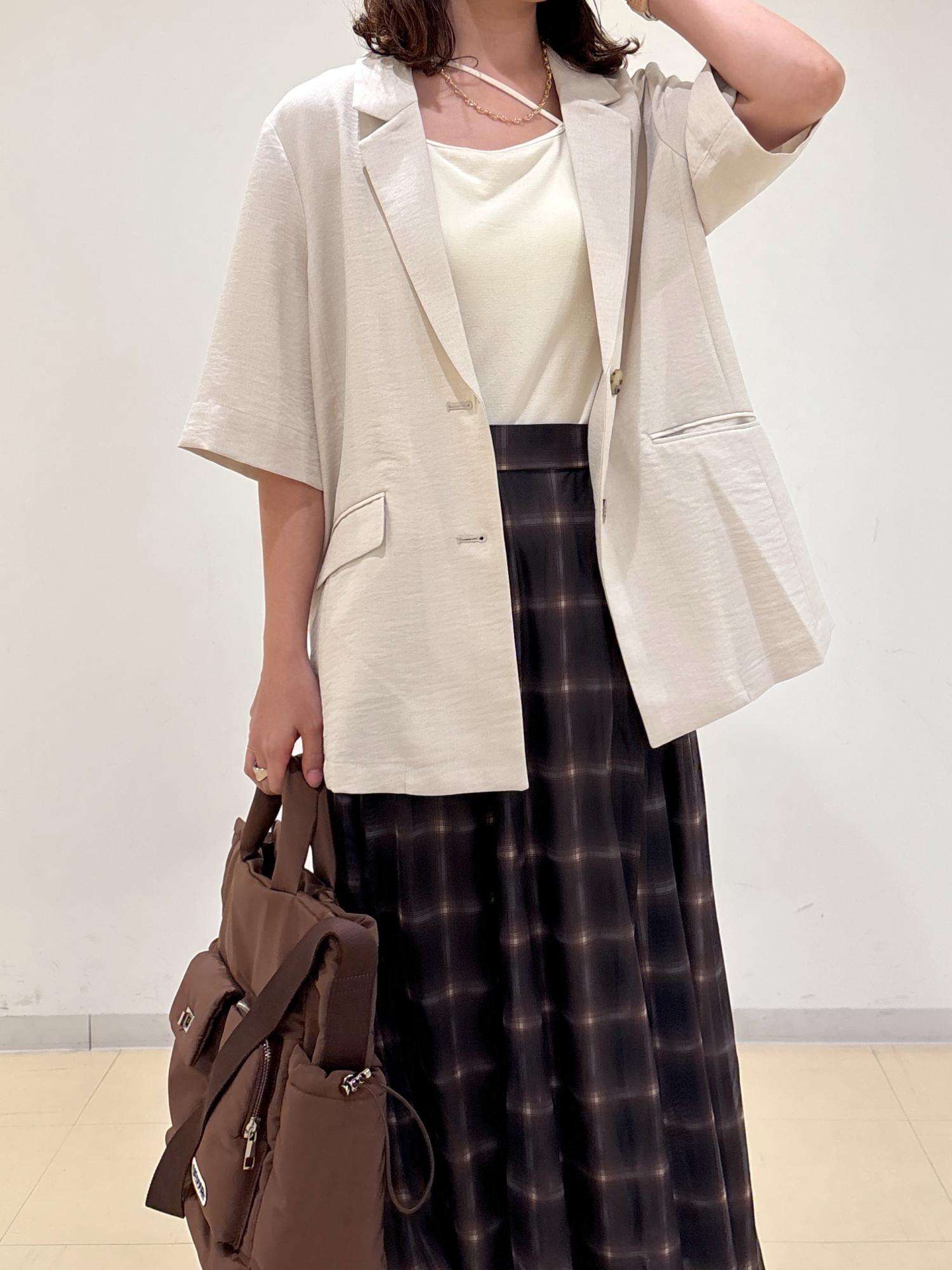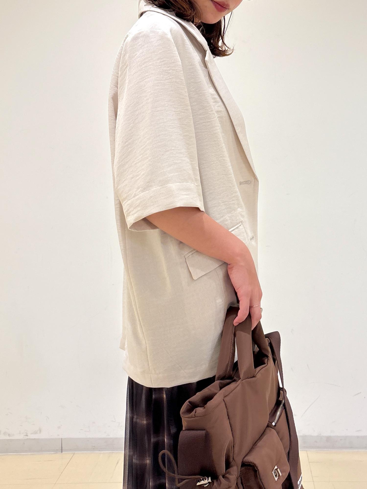VIS【美easy】ハーフスリーブジャケット/セットアップ対応・洗えるキナリ / M¥7,909レビュー160cm、Mサイズ着用でヒップがしっかり隠れる丈感と肩周りにも余裕があります◎