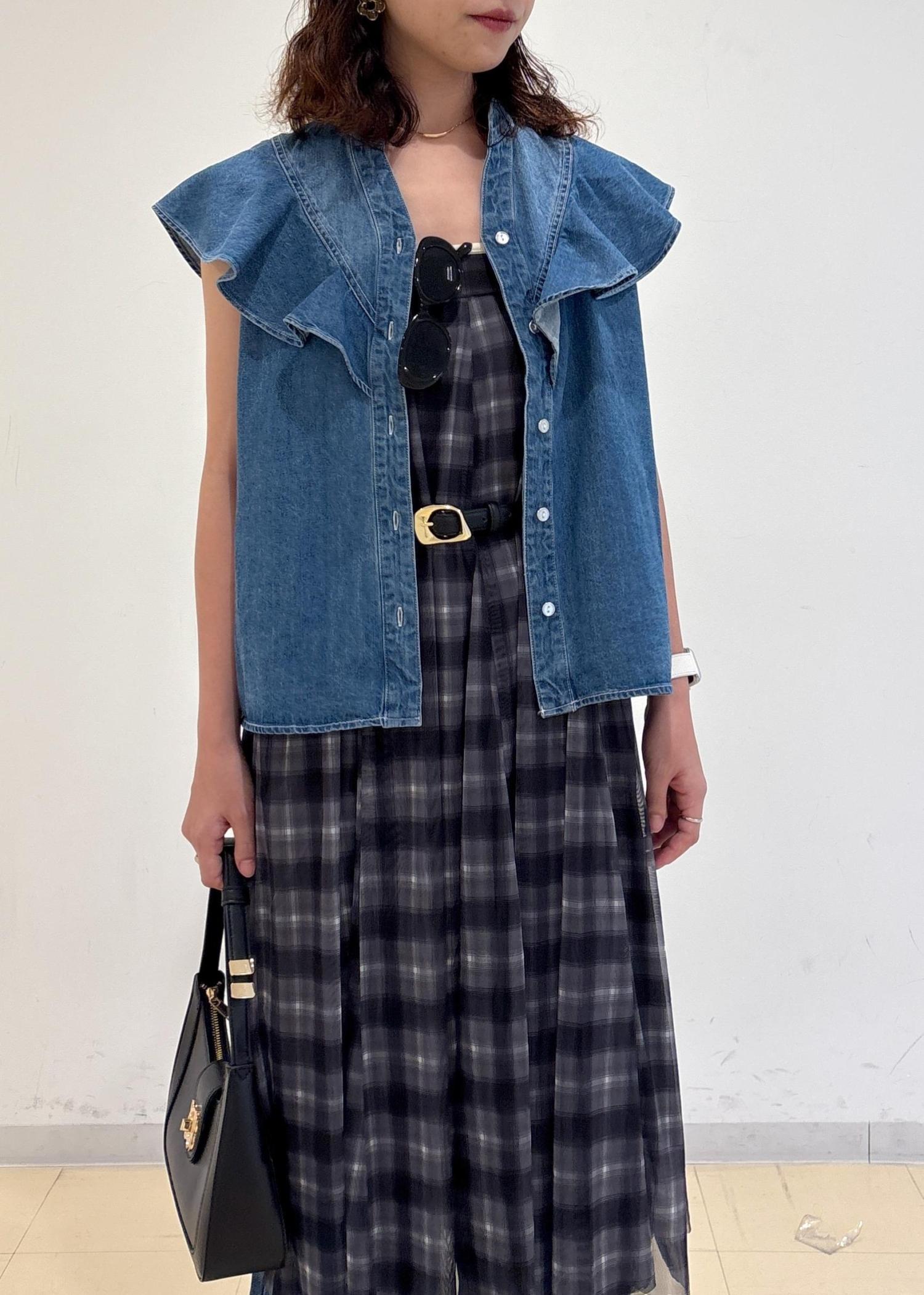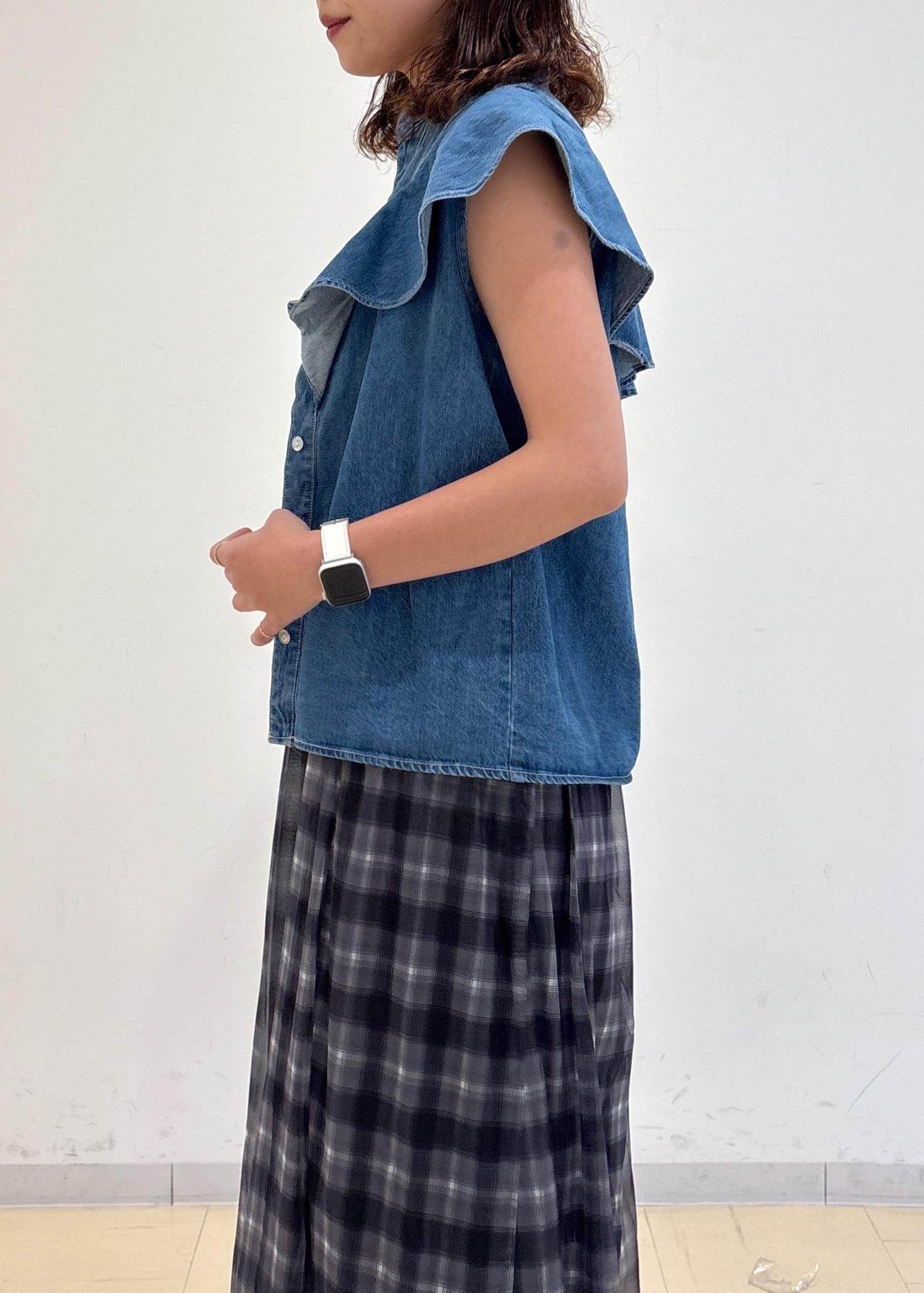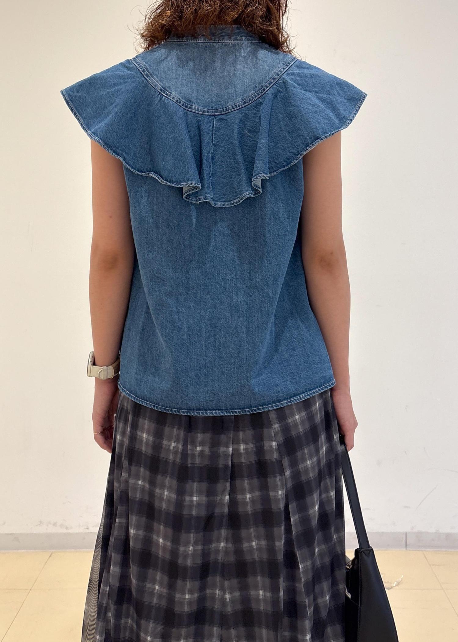 VIS【UVケア/洗える】ラッフルデザインデニムブラウスブルー系 / F¥3,953レビュー大きめなフリルが肩幅をカバーしてくれ、デニム生地も柔らかいのでいかつく見えませんでした◎