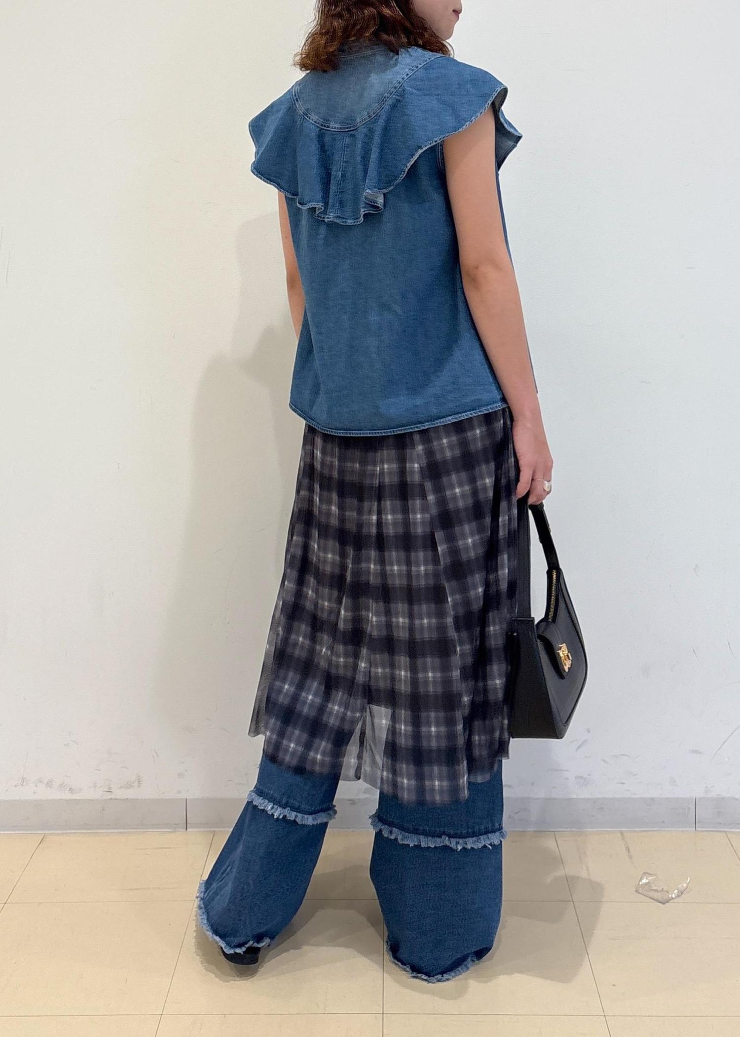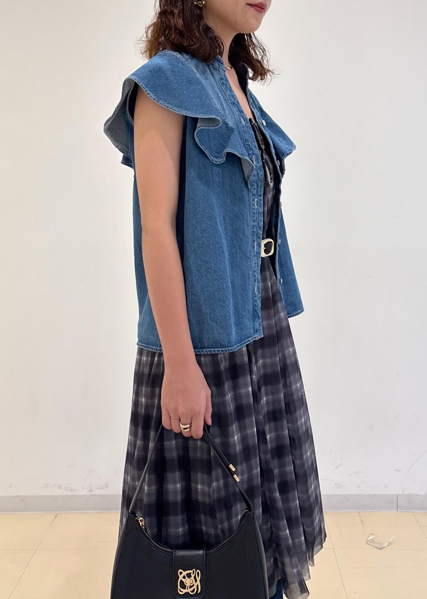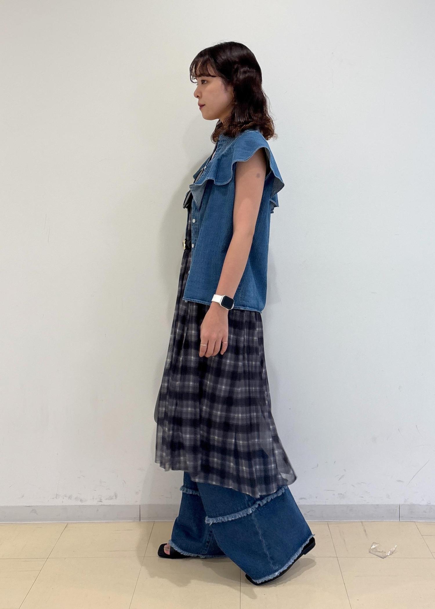 VIS【UVケア/洗える】ラッフルデザインデニムブラウスブルー系 / F¥3,953レビュー大きめなフリルが肩幅をカバーしてくれ、デニム生地も柔らかいのでいかつく見えませんでした◎