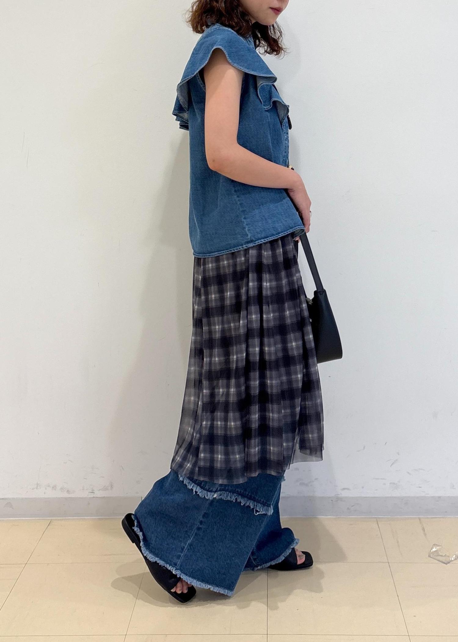 VIS【洗える】チュールプリントチェックスカートブラック系 / F¥4,612レビュー160センチ着用で足首にかかる程の丈感です。
