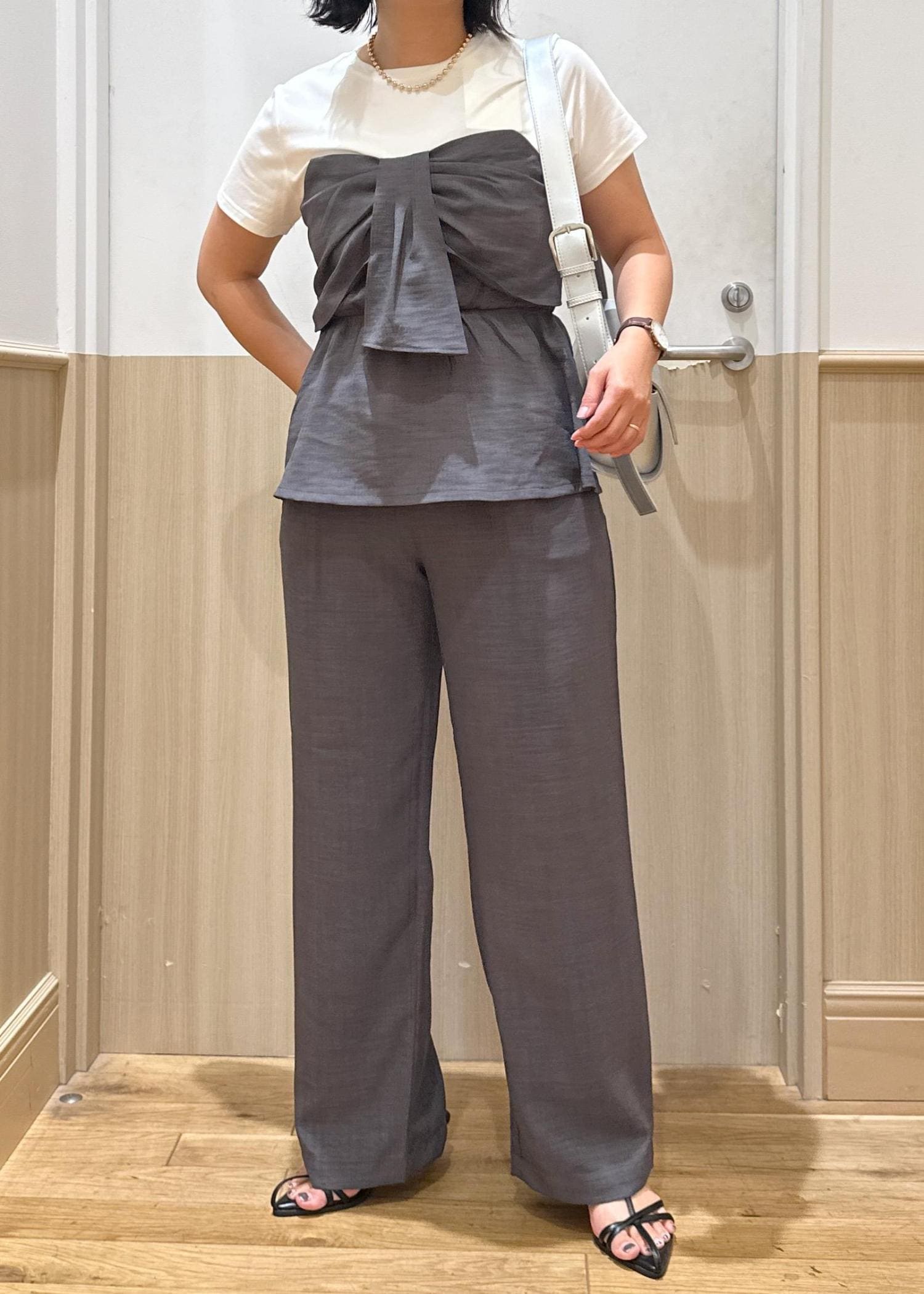VIS【美easy】ワンタックワイドスラックスパンツ/洗えるチャコール / M¥5,489レビュー157センチ、Mサイズ、ヒールかスニーカーで丈感ぴったりでした。