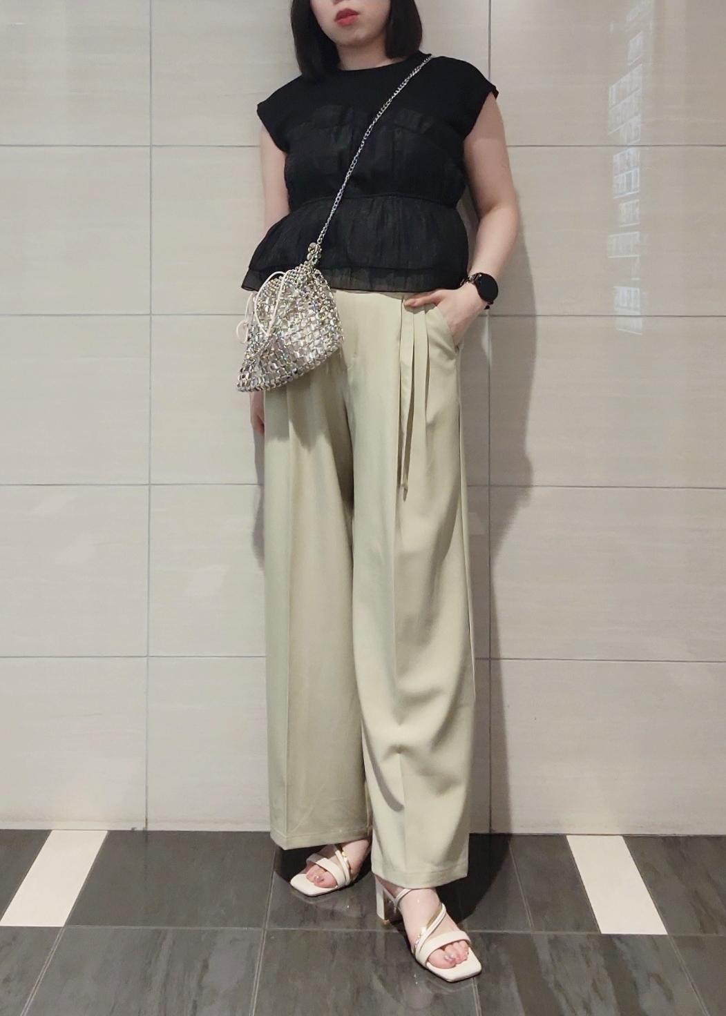 VIS【新色追加】【防シワ/接触冷感】ベルトディテールタックワイドスラックスパンツライトグリーン / S¥6,589レビューハイウエストでスタイルUP見え◎!