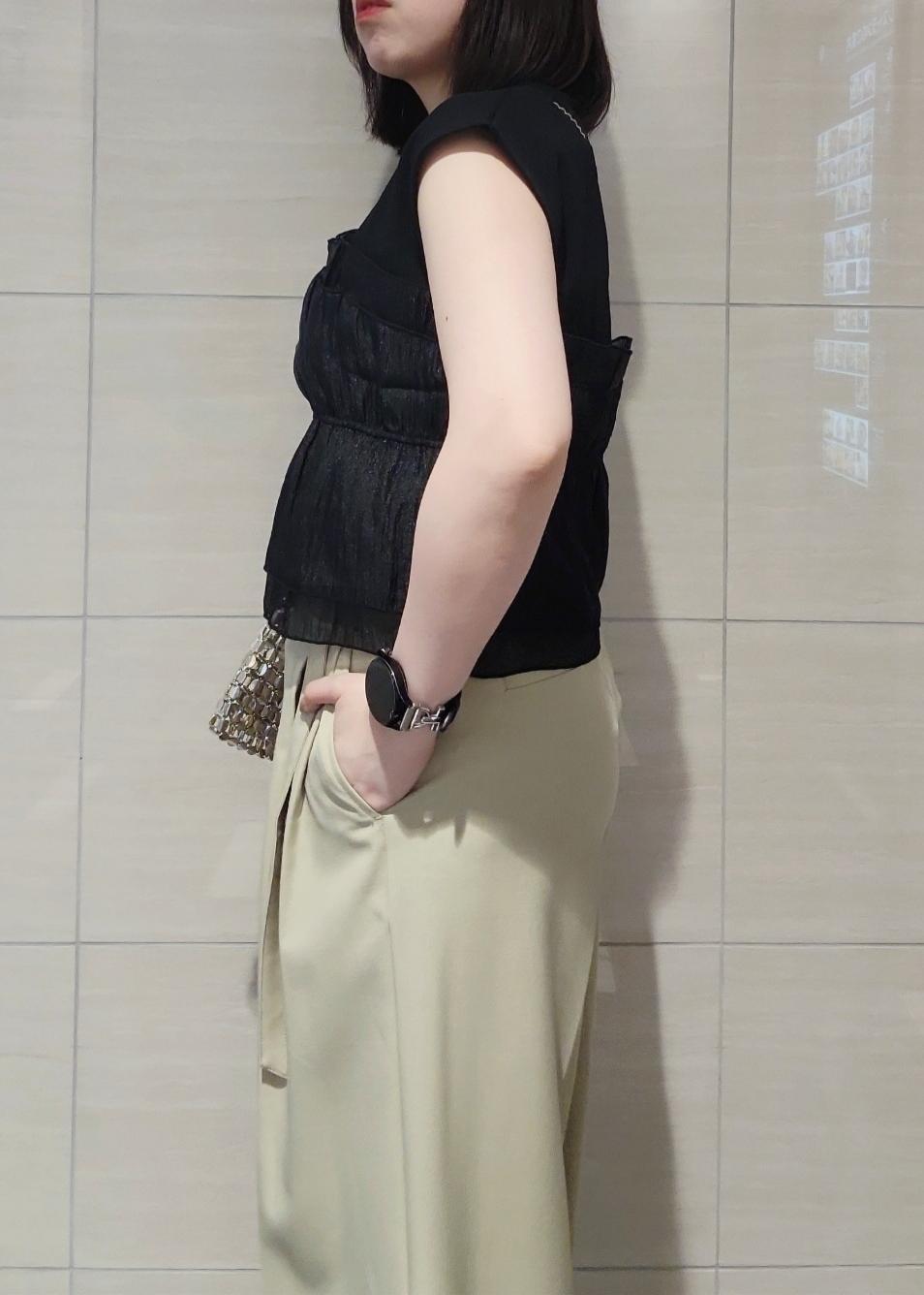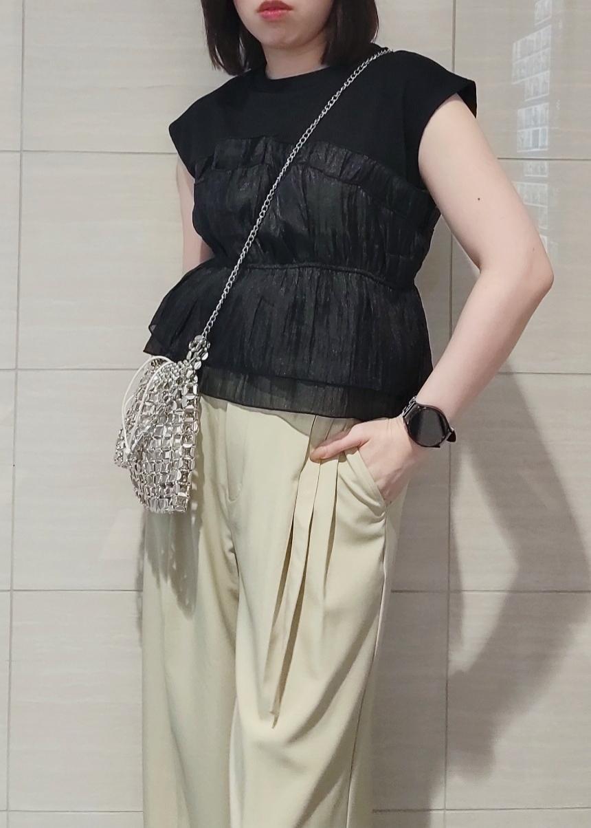 VIS旬なレイヤードスタイルが叶う!ビスチェドッキングフレンチスリーブプルオーバー【洗える】ブラック系 / F¥5,489レビュービスチェとのドッキングトップスで、1枚着で映えるデザインになっています!