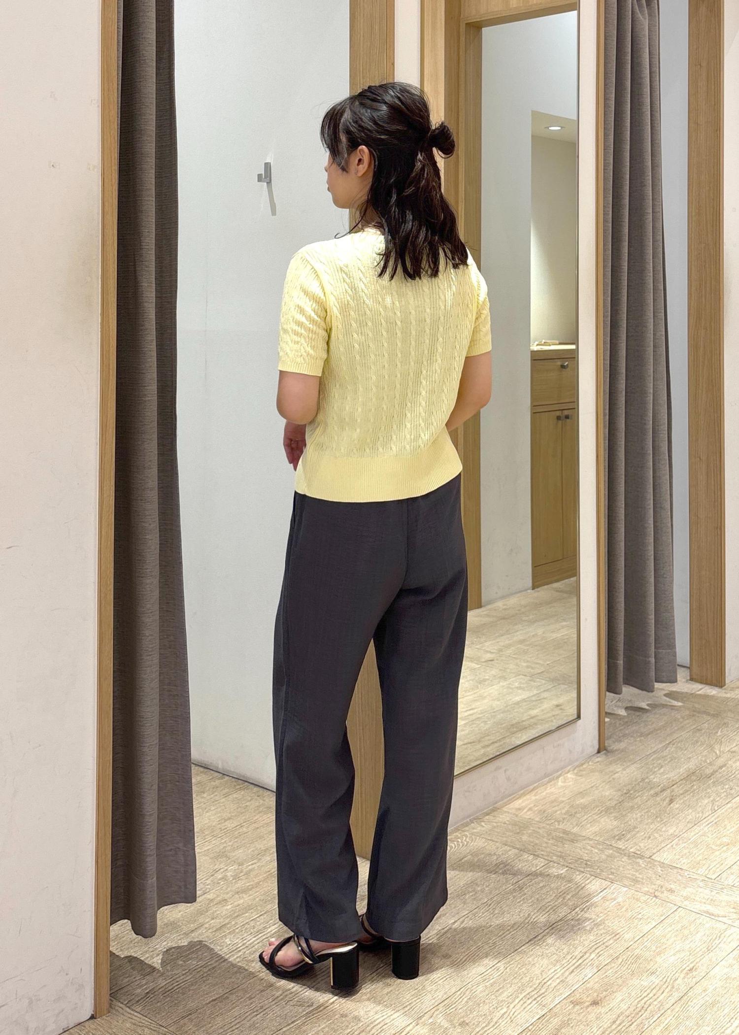 パンツも1枚で綺麗見えするスラックスデザインなので、トップスはTシャツなどカジュアルなものでもバランスがとりやすいです☺︎