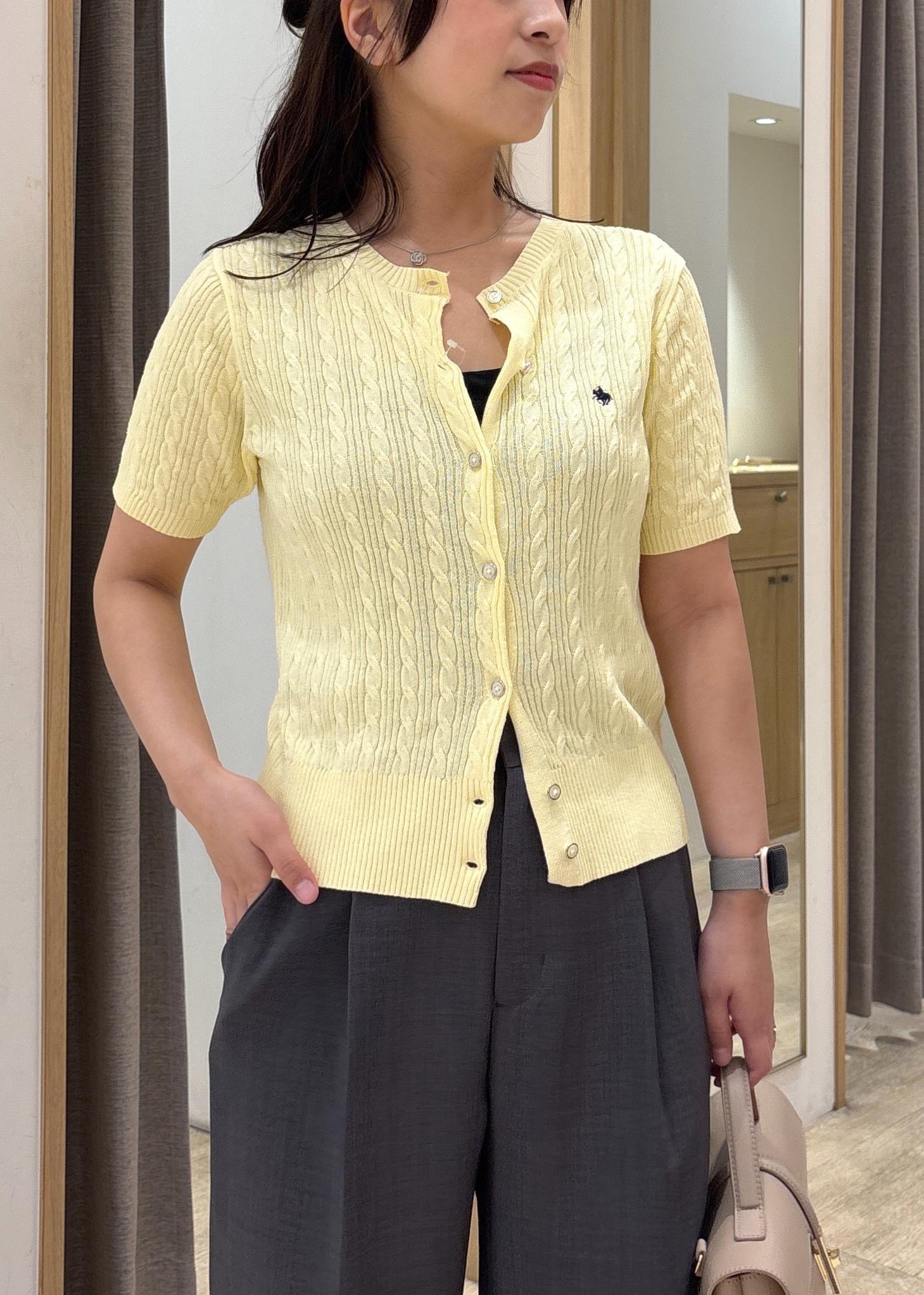 VIS【POLO BCS】VIS別注ハーフスリーブミニケーブルカーディガンイエロー / F¥6,600レビュー二の腕と腰回りをしっかりカバー!
