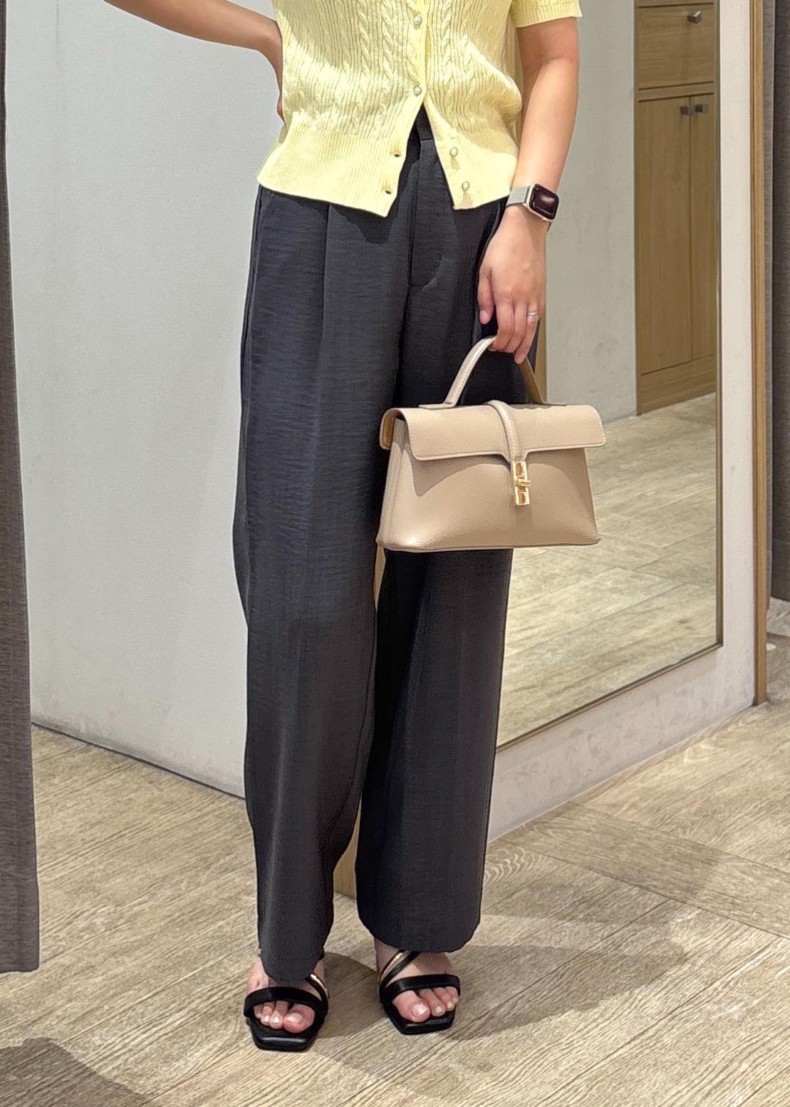 テロンとした落ち間のある素材で広がりすぎず、低身長さんもワイドパンツをスッキリ着られるアイテムです☺︎