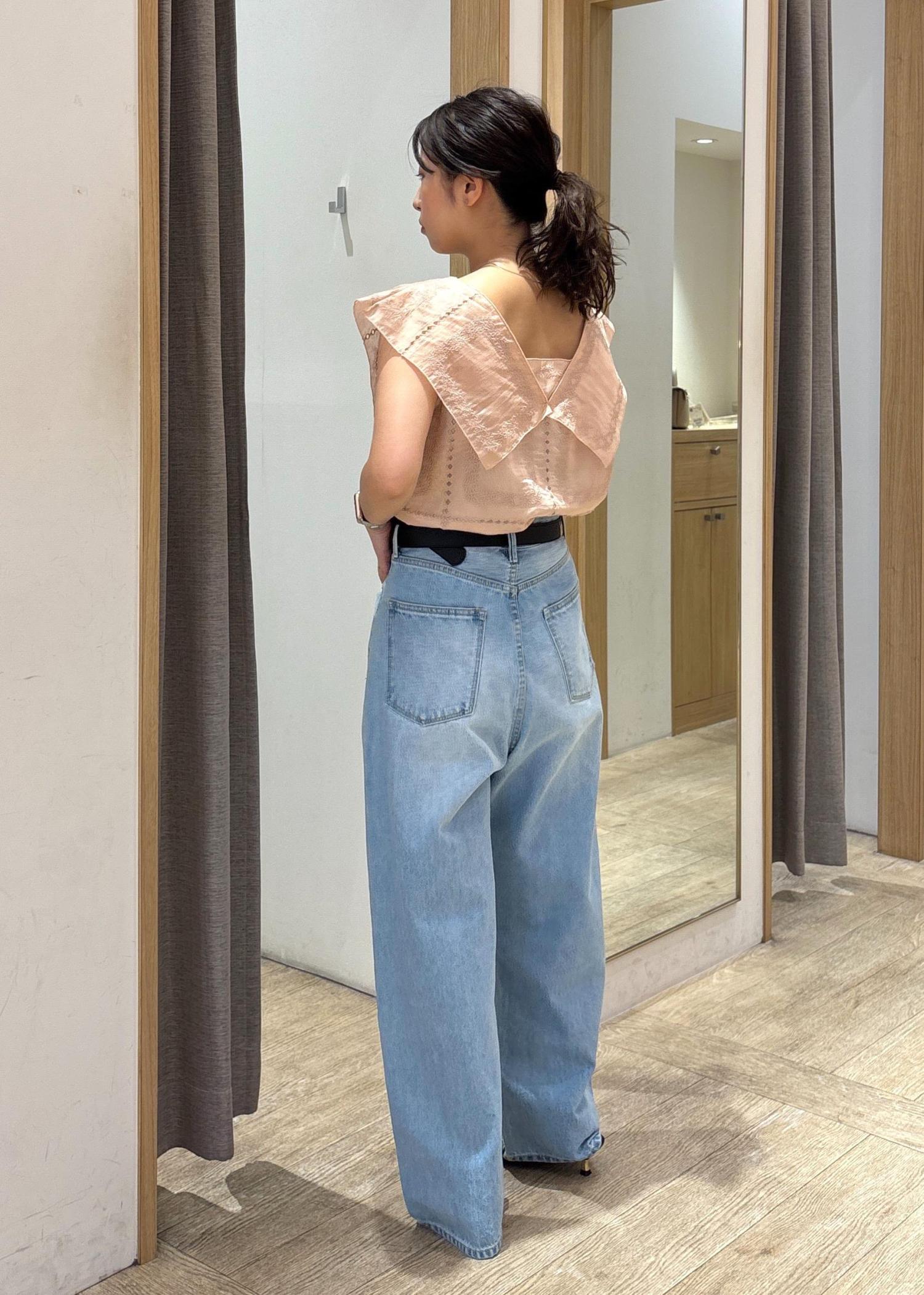 デニムはボリュームがあるので、トップスはコンパクトめなものと合わせると低身長もバランスがとりやすいです☺︎