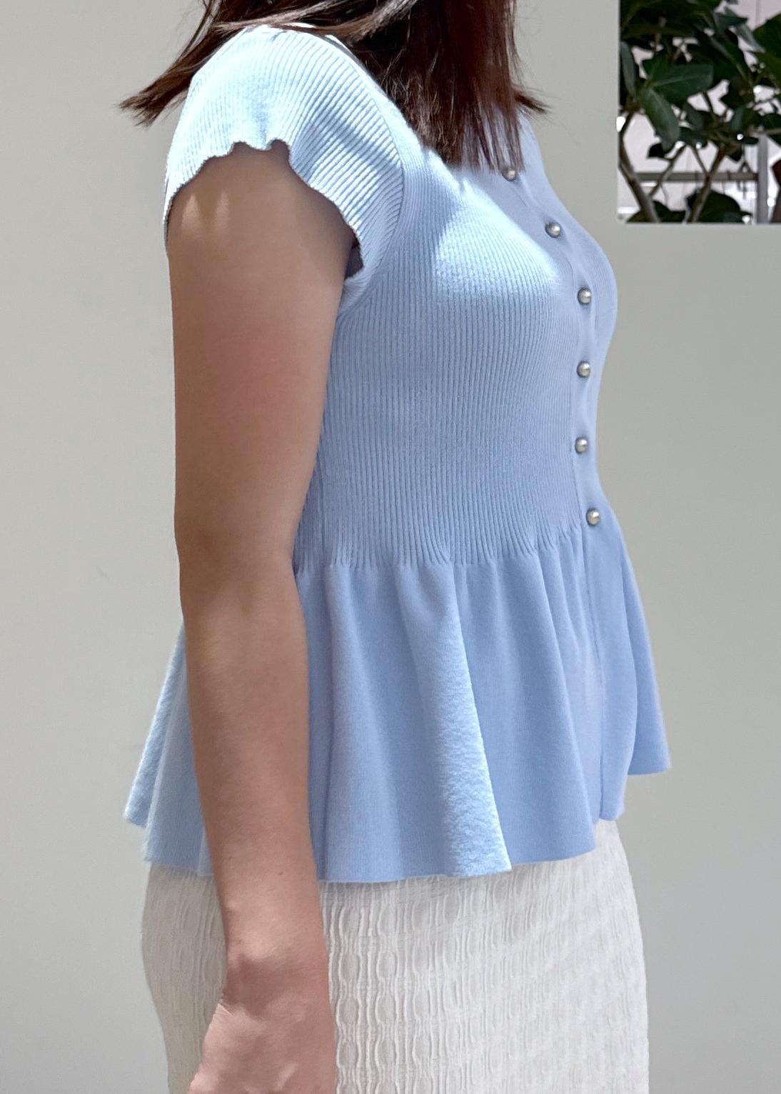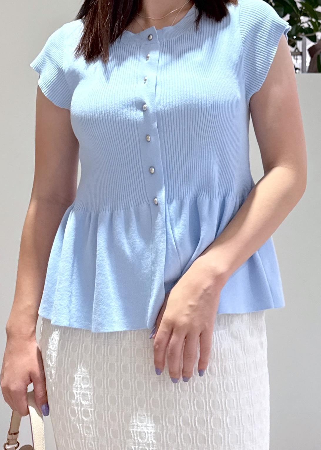 VIS【アンチピリング/洗える】美SMARTショートスリーブペプラムニットサックス / F¥5,489レビューもちっと着やすく着心地のいいトップスです!
