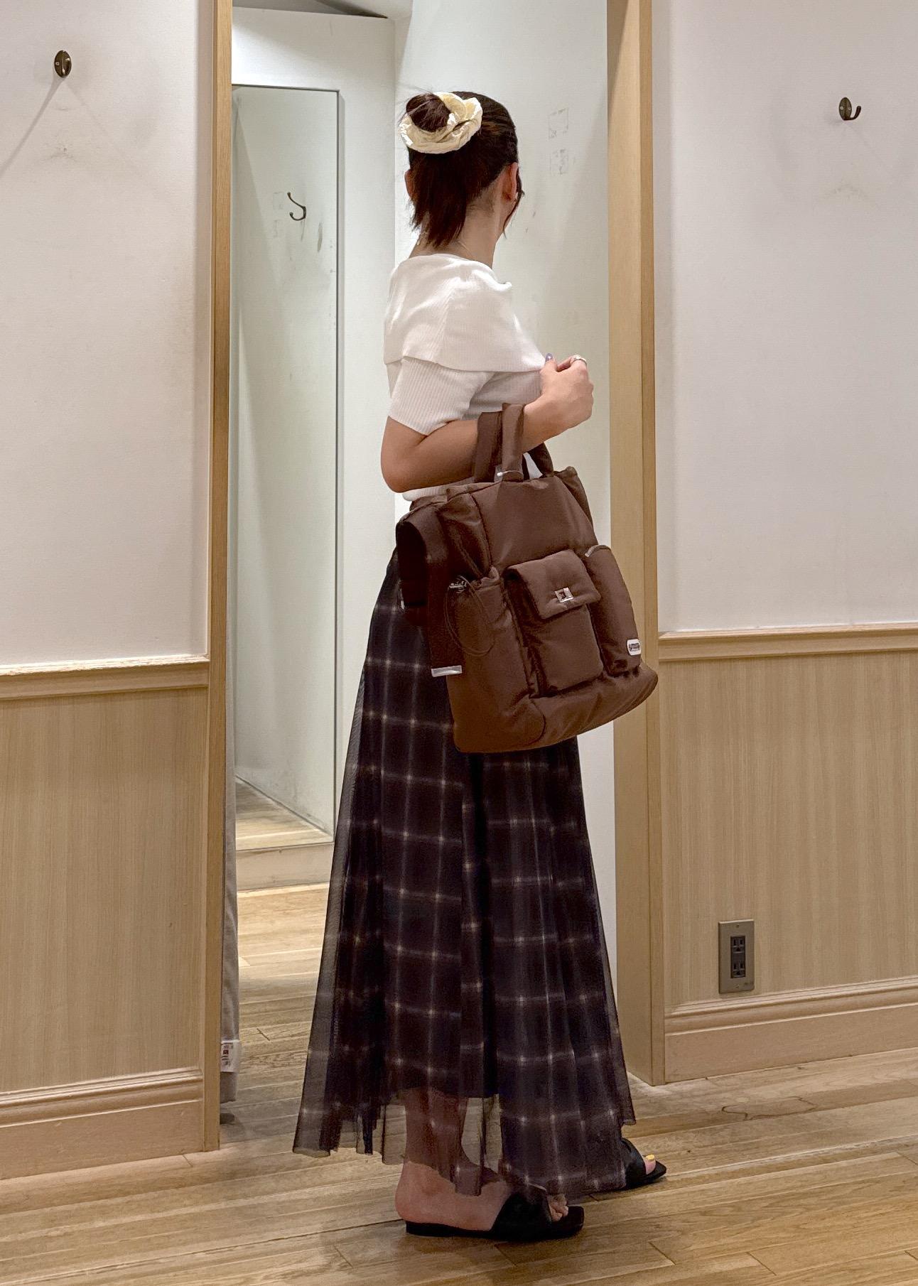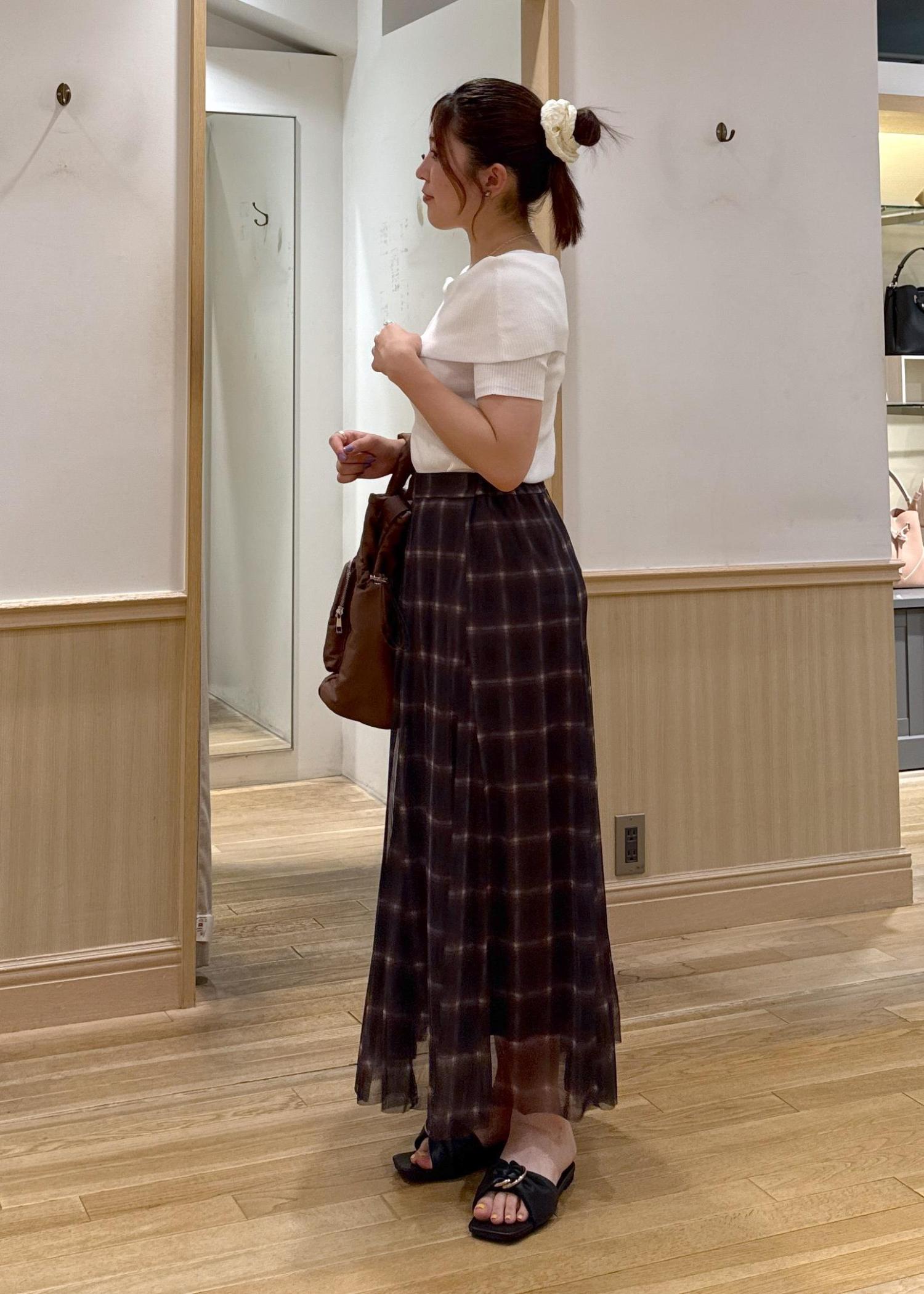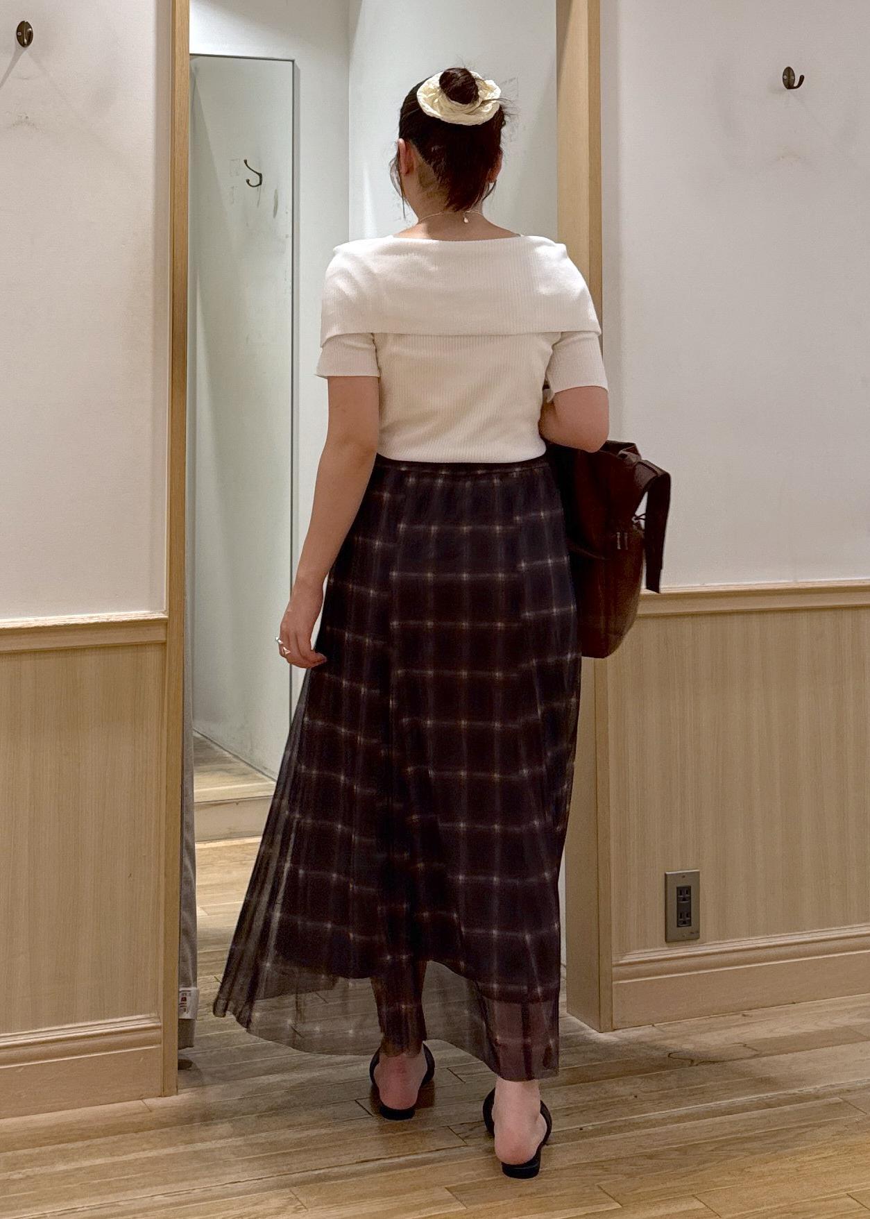 VIS【洗える】チュールプリントチェックスカートダークブラウン系 / F¥4,612レビューチュール素材が女性らしいのと、程よい広がりで着やすいです!