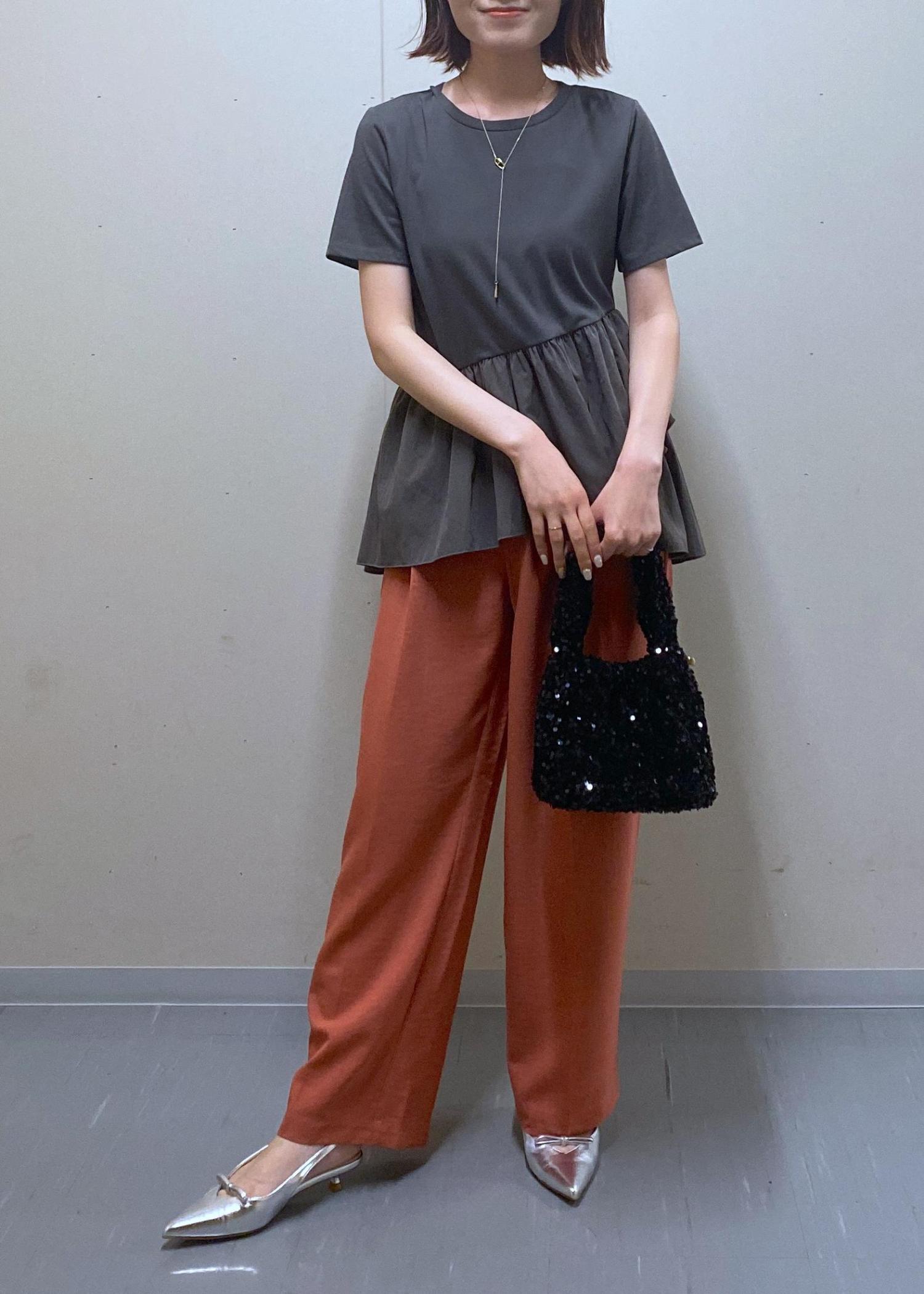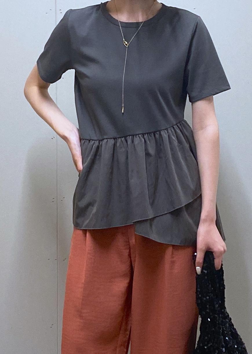 裾が切り返しのあるデザインになっており、Tシャツとしてリラックス感がありながらも1枚で女性らしさをプラスしてくれます! -