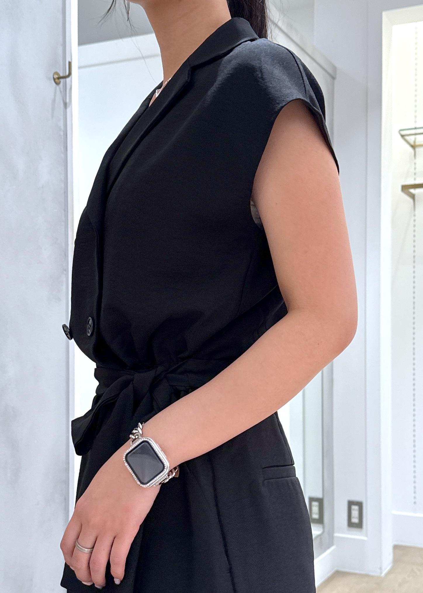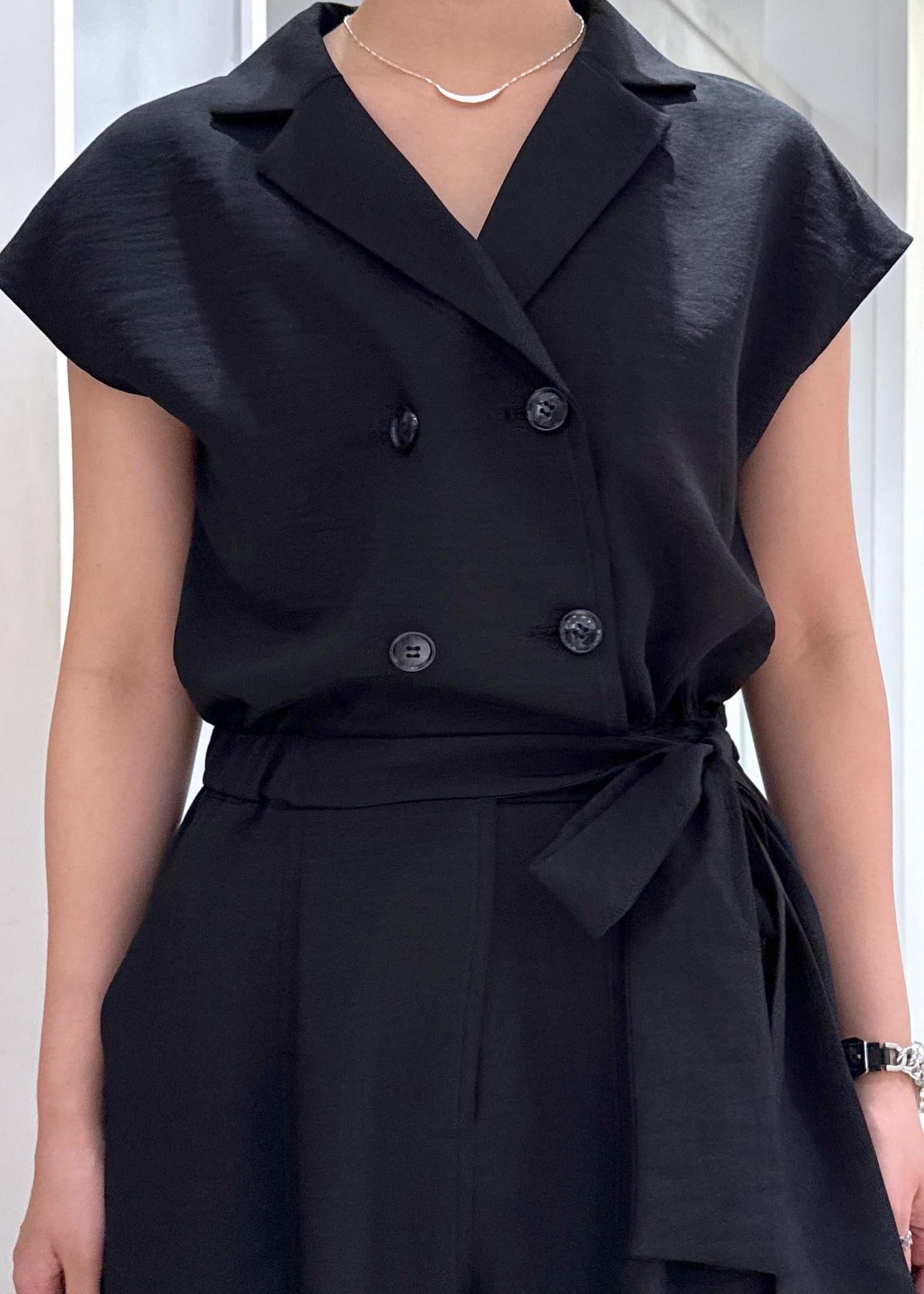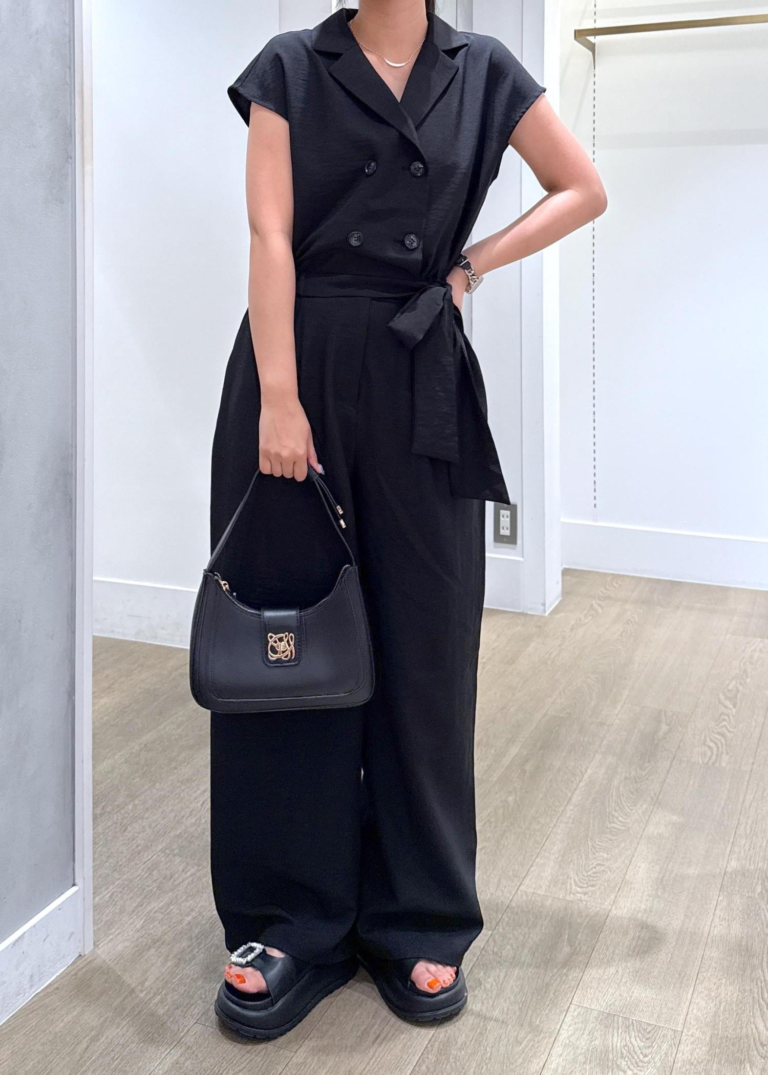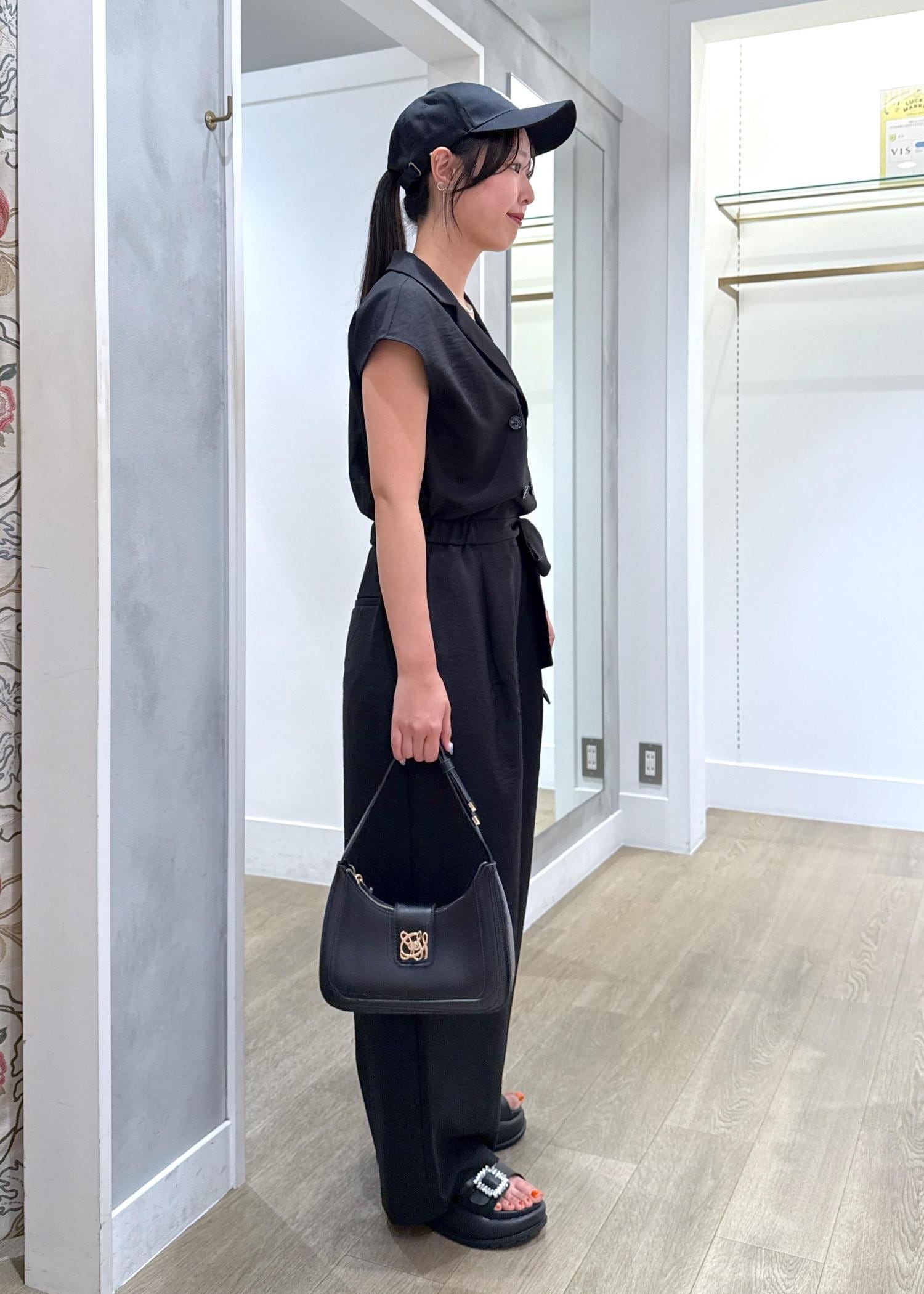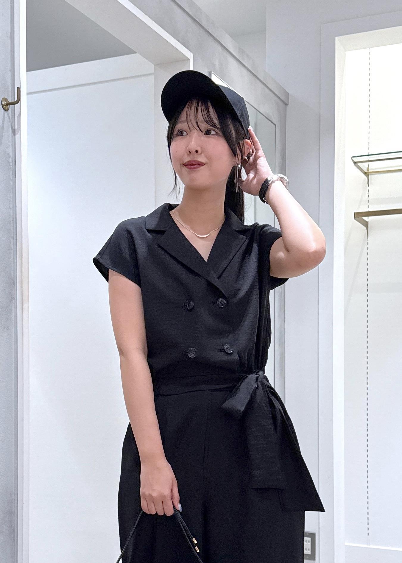 お呼ばれごとなどでも使えそうな雰囲気のロンパースですが、キャップを合わせればカジュアル使いも◎