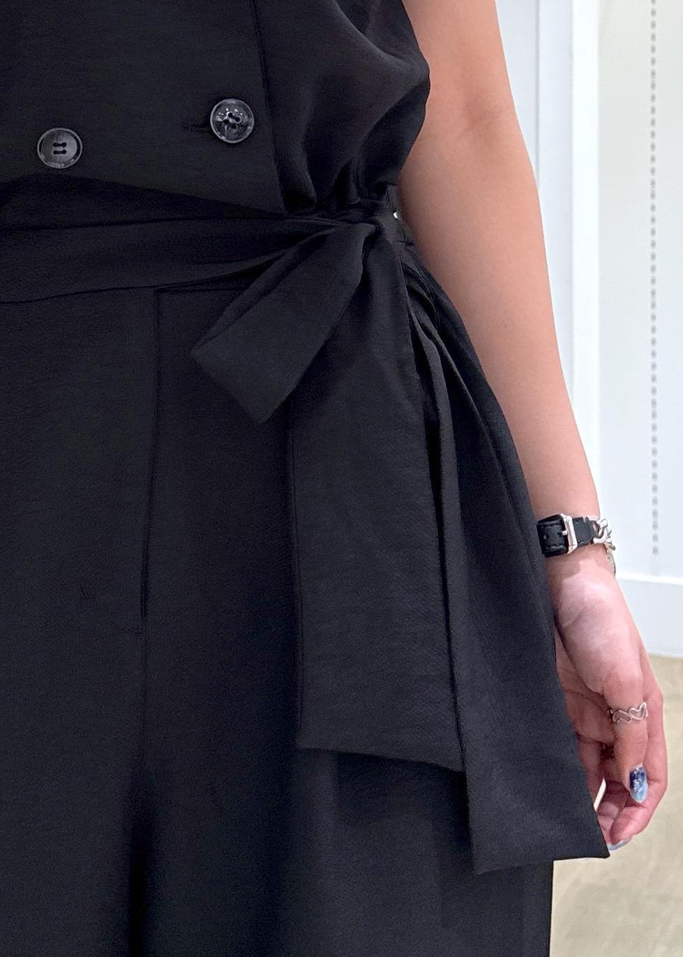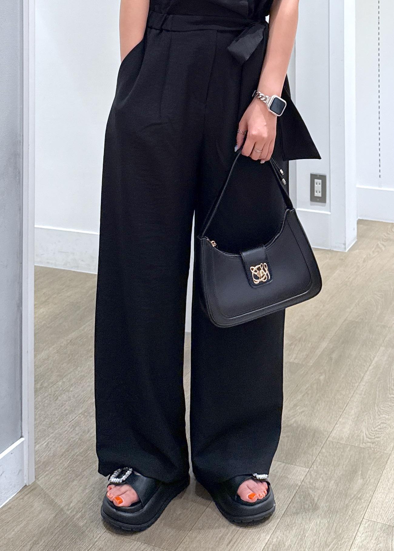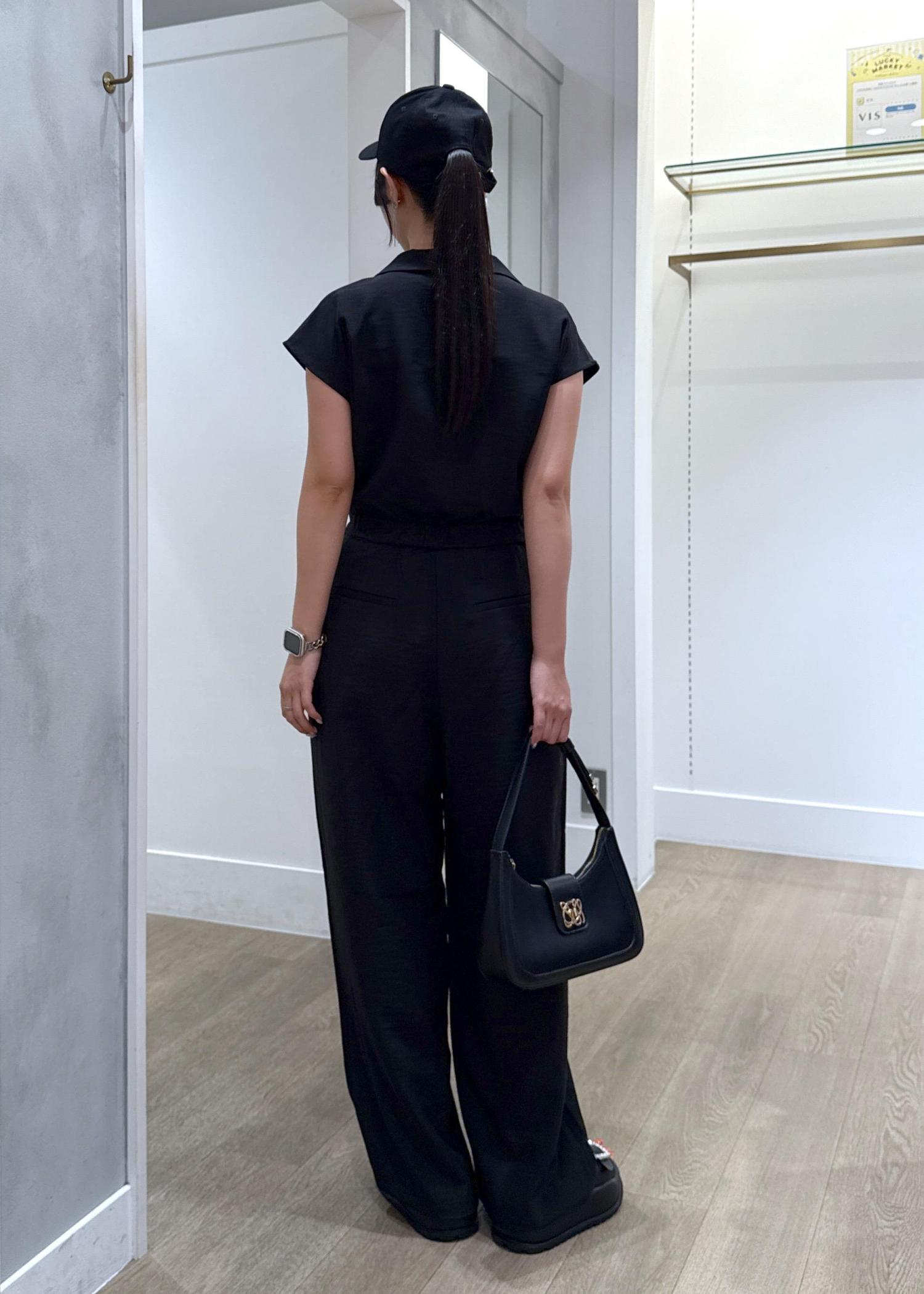VISエアタン加工リラックスロンパースブラック / F¥5,339レビュー158cmで、くるぶしくらいの感でした。少し長めではありますが、158cmでも床につかずに着れました